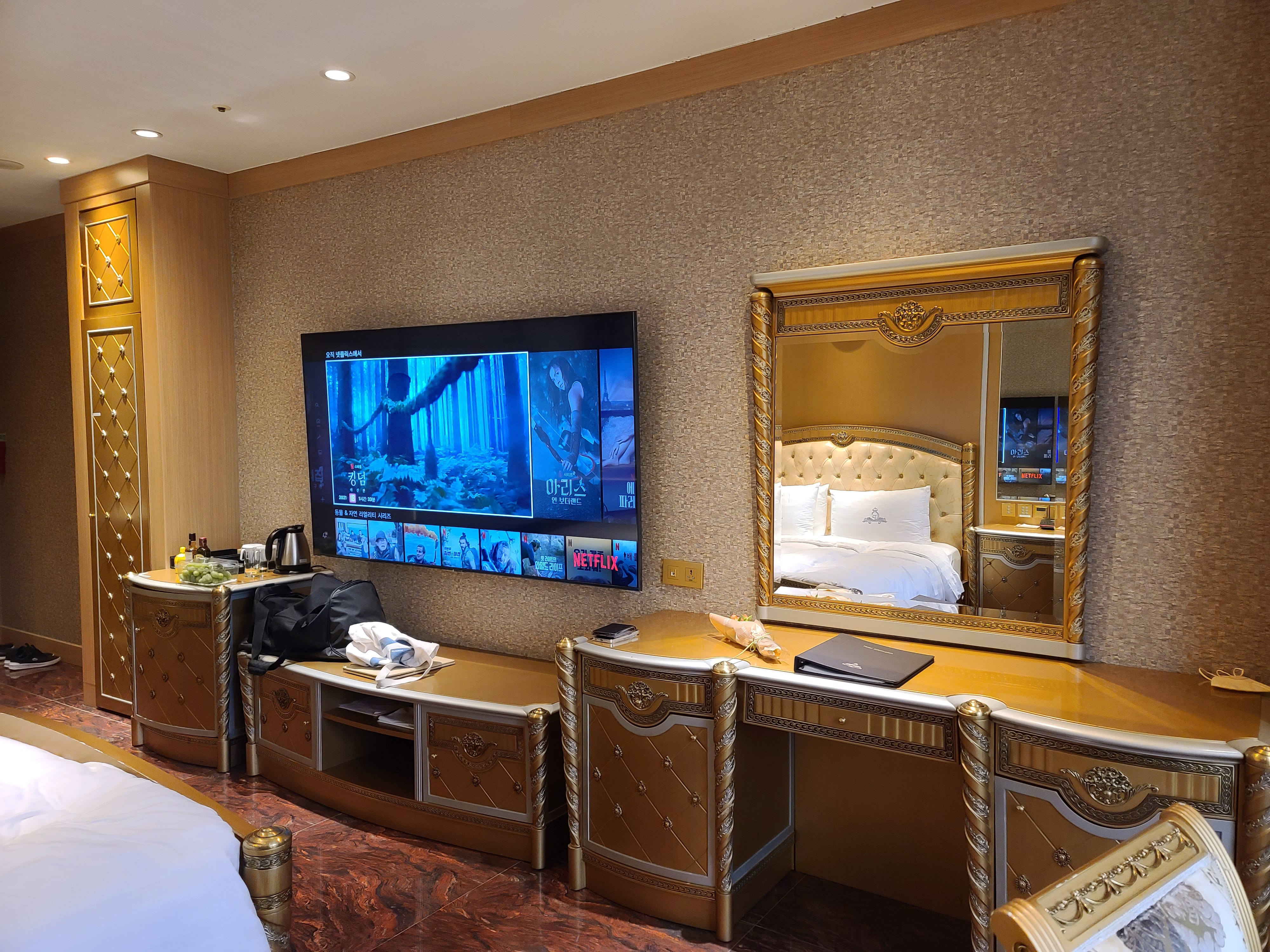 티비도 크고, 화장대도 넓고 호캉스 하기 좋다.