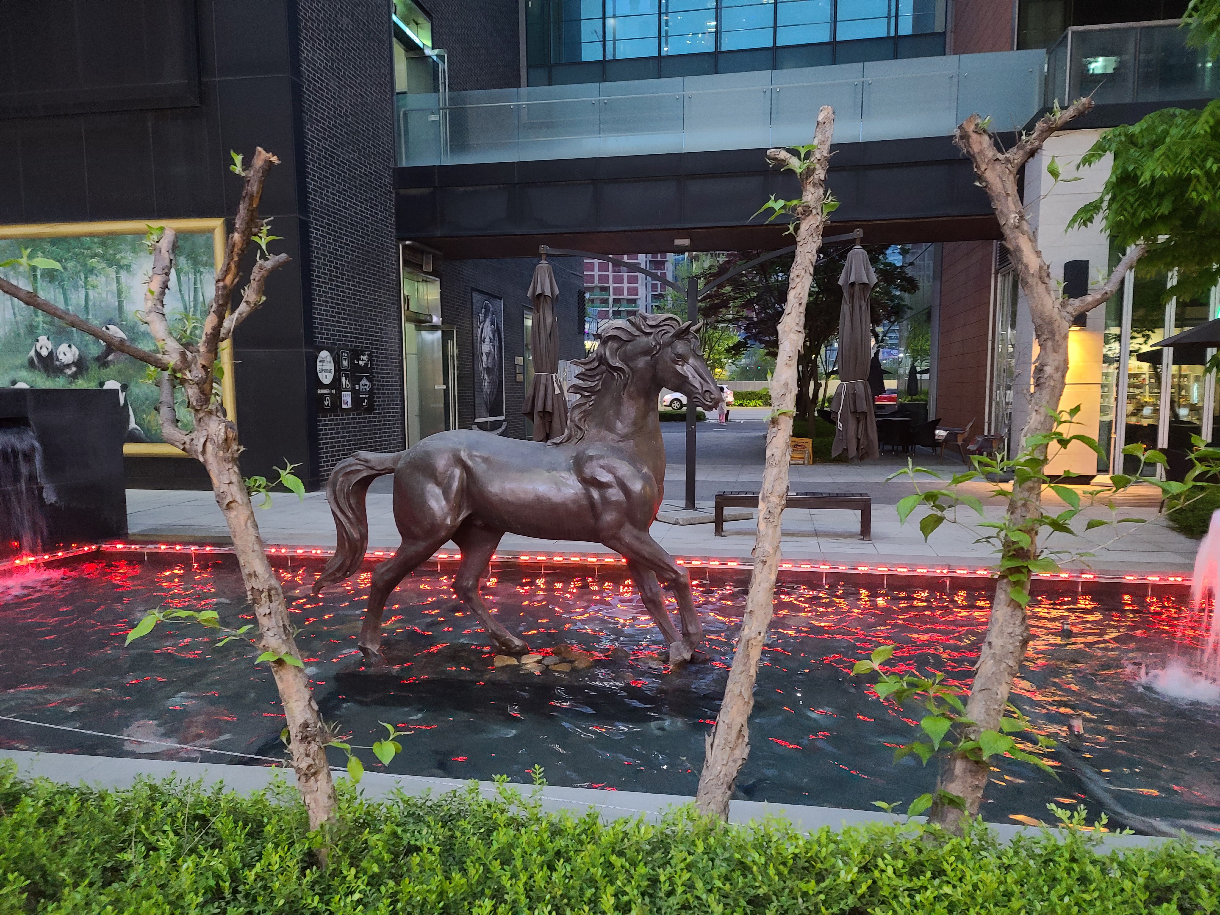 앞에 말동상이랑 분수가 있어서 사진찍으면서 구경했다.