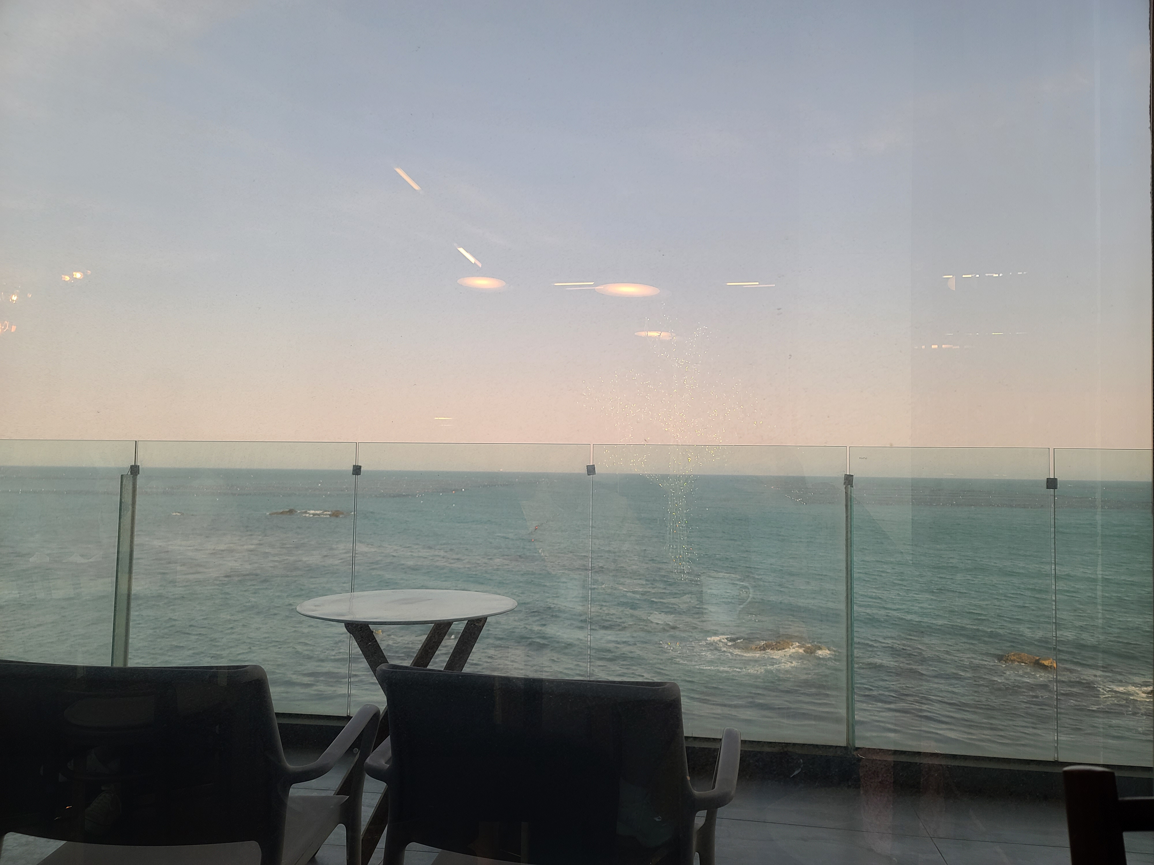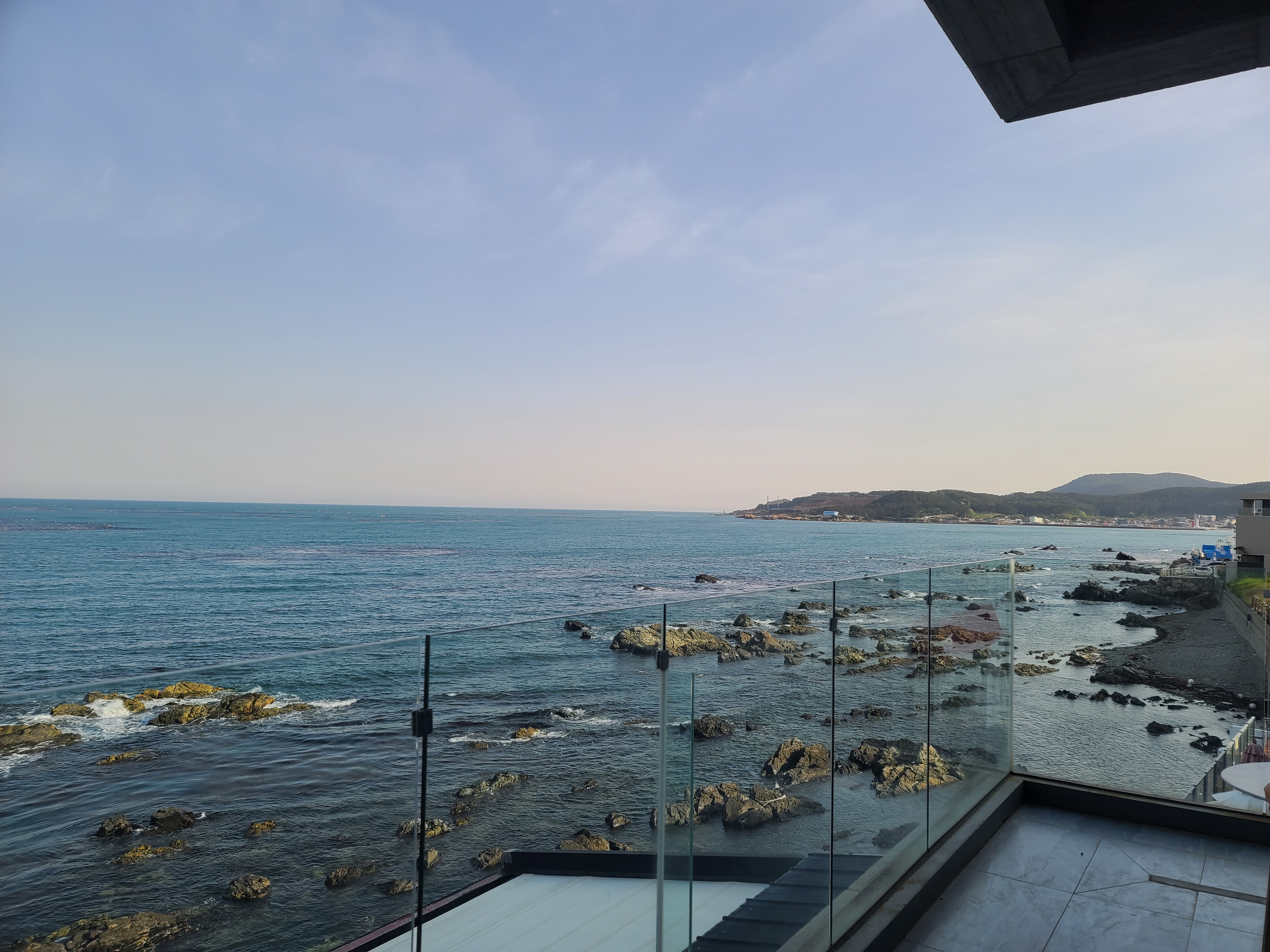 바다 바로 앞에 있고, 유리로 막혀있어서 바닷바람이 춥진 않은곳