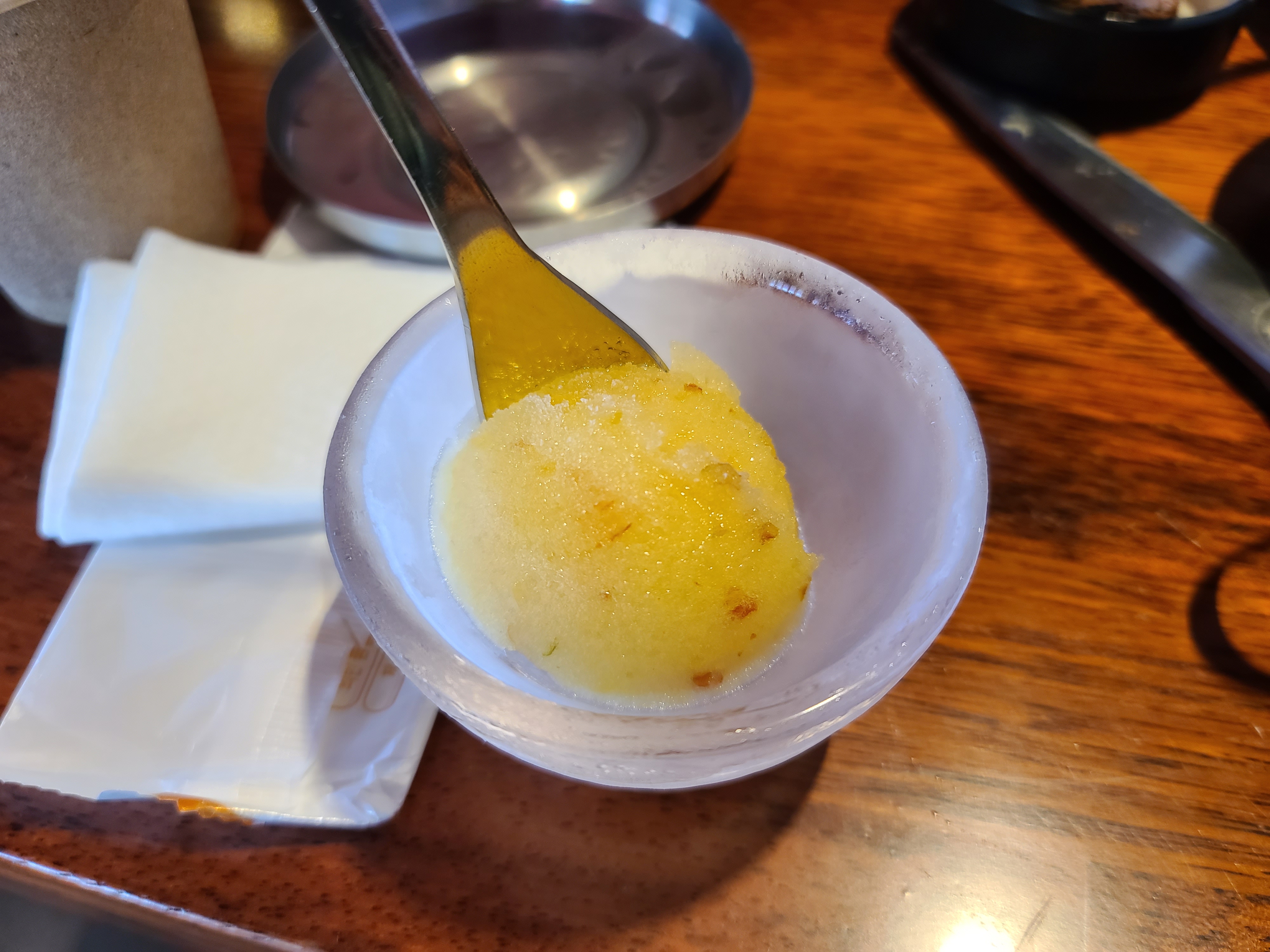 마지막 티저트는 유자맛 샤베트로 아주 완벽한 식사였습니다.