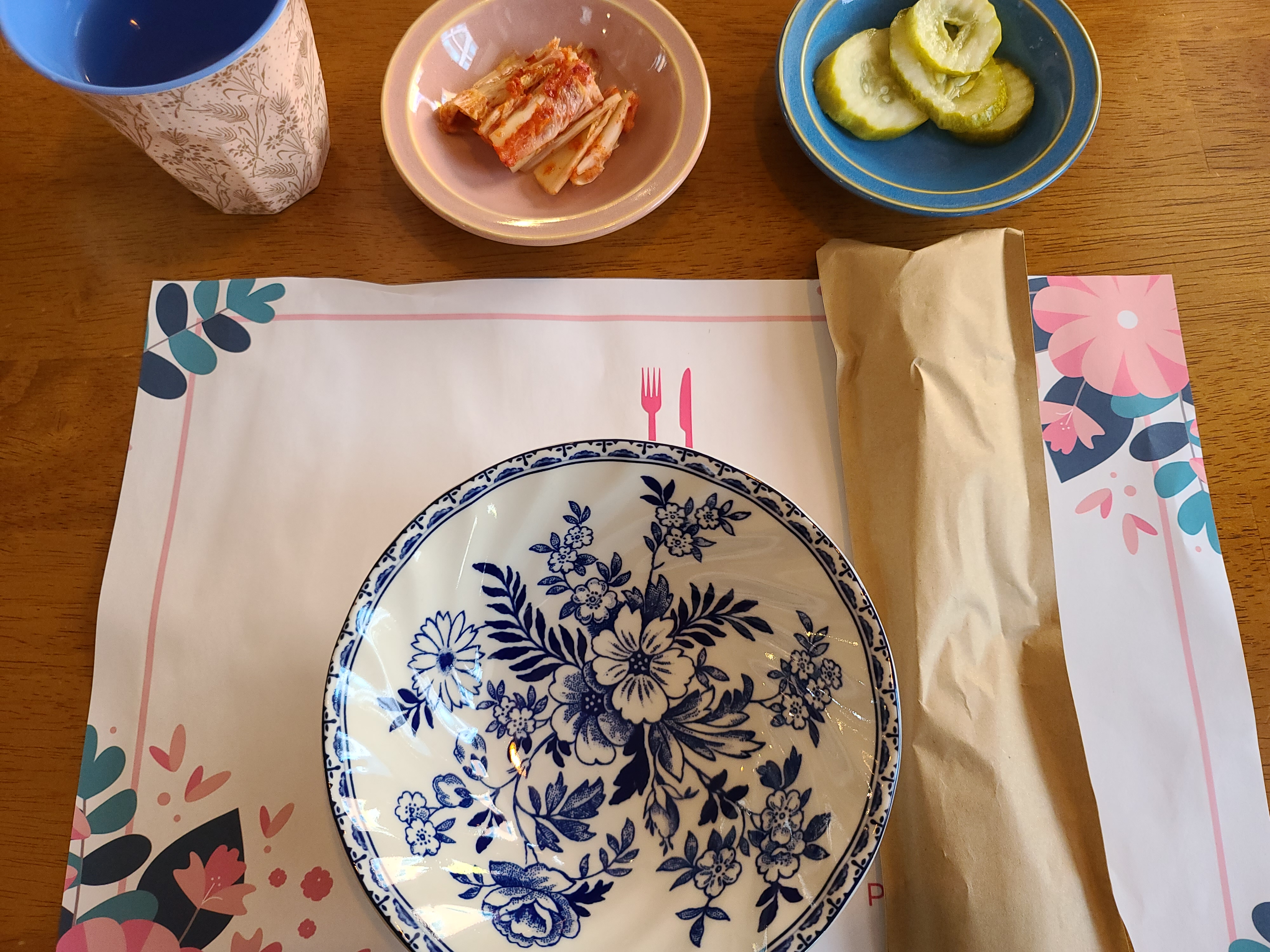 앞접시랑 피클 담는 그릇도 귀엽다.