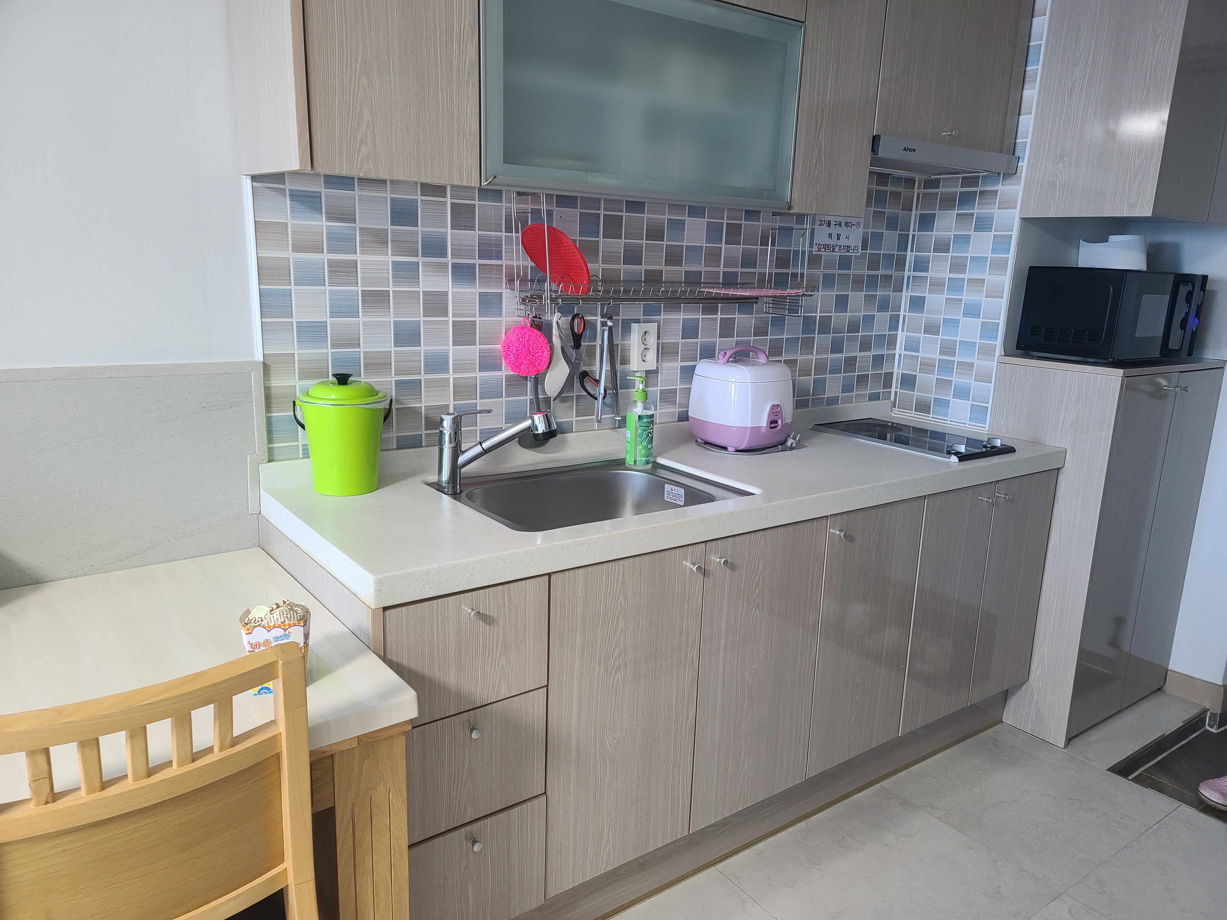 주방도 4인가족이 쓸 수 있을 정도의 식기구와 2인용 식탁이 있었다.
