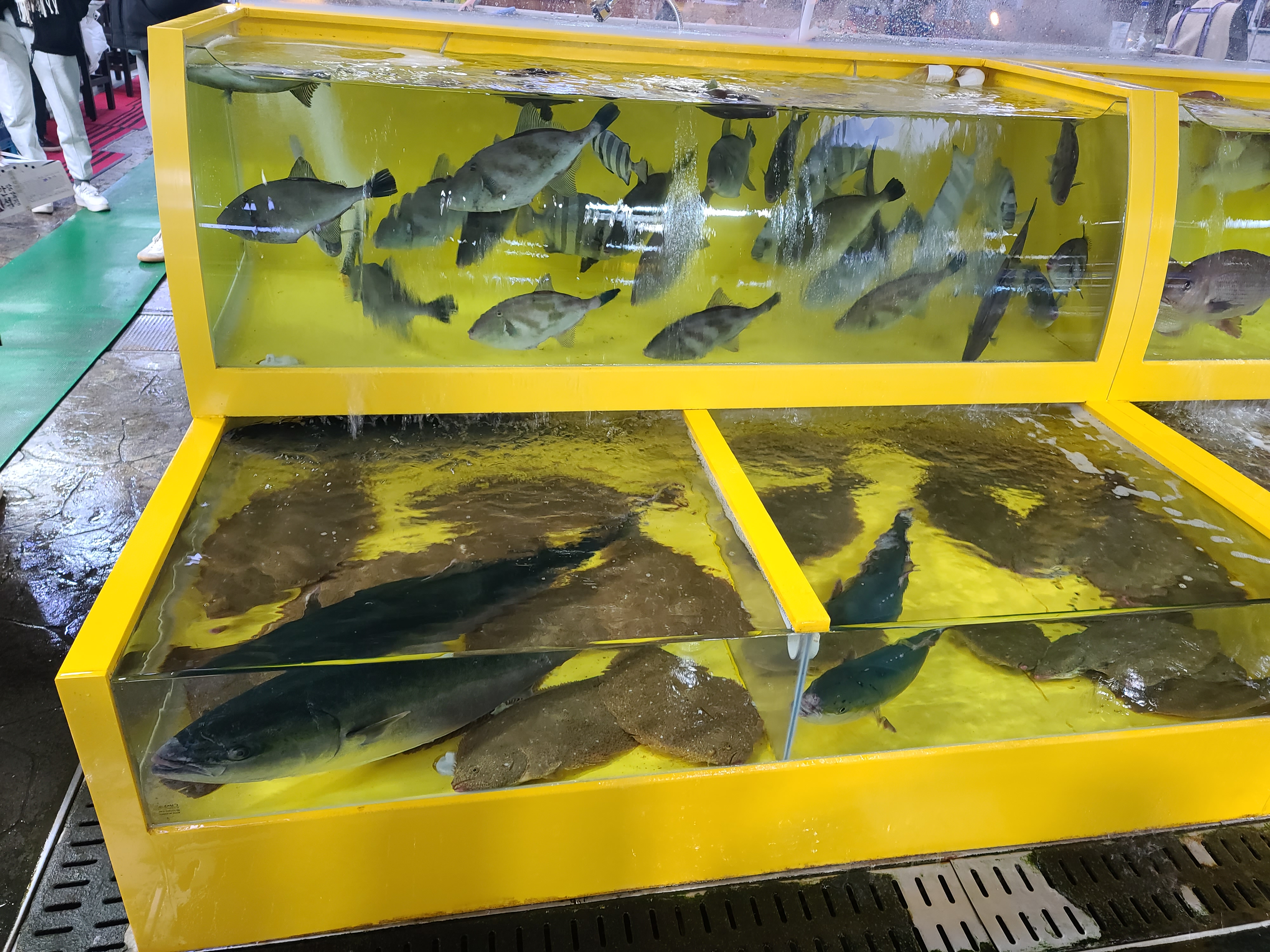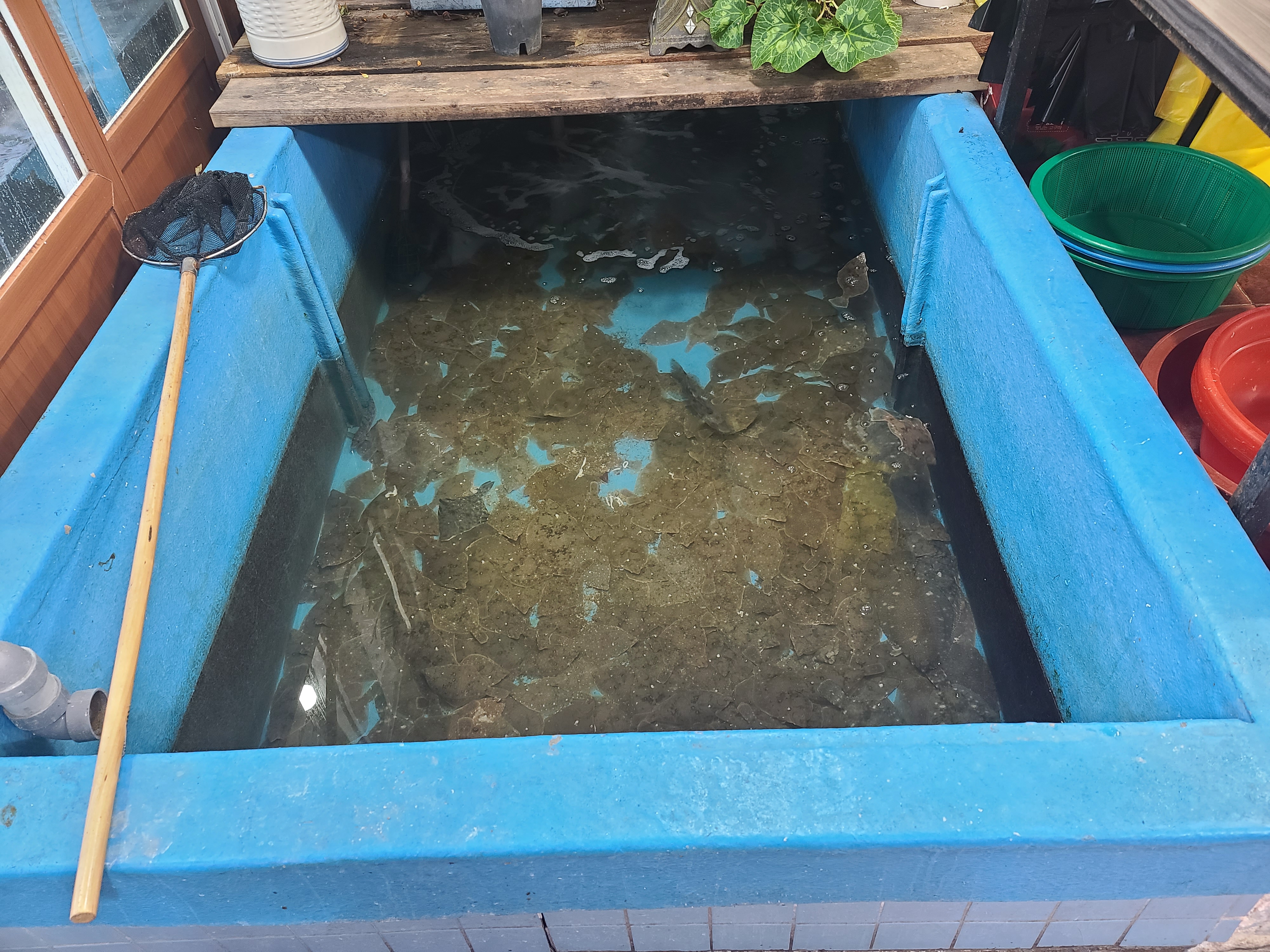 입구에서 파닥파닥 거리고 있는 가자미들.