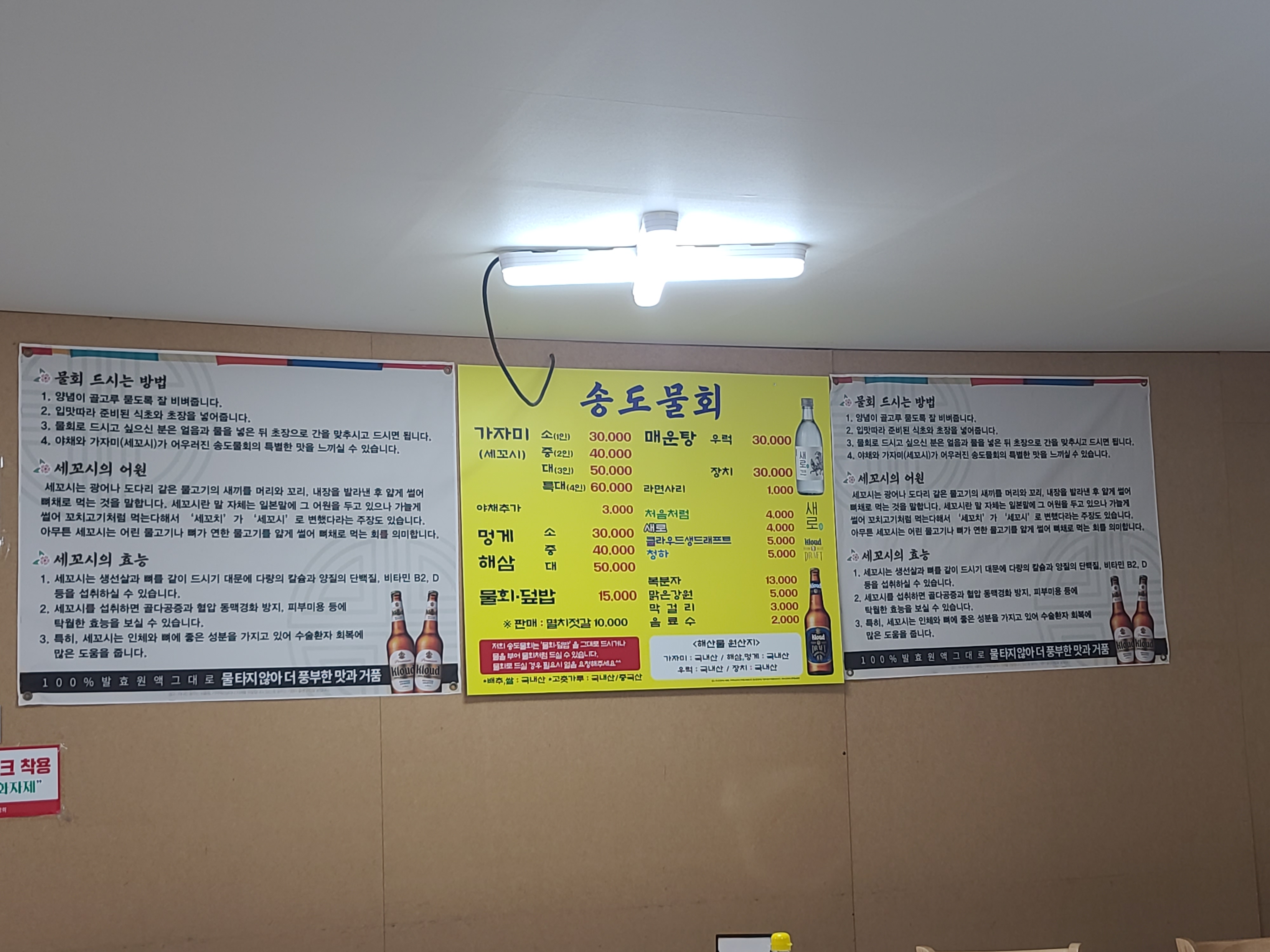 전형적인 횟집 모습이었고, 브레이크 타임이 끝나자마자 들어가서 손님이 별로 없었는데 우리가 먹고 있으니까 술 손님들이 많아져서 시끄러워짐 ㅋㅋㅋ