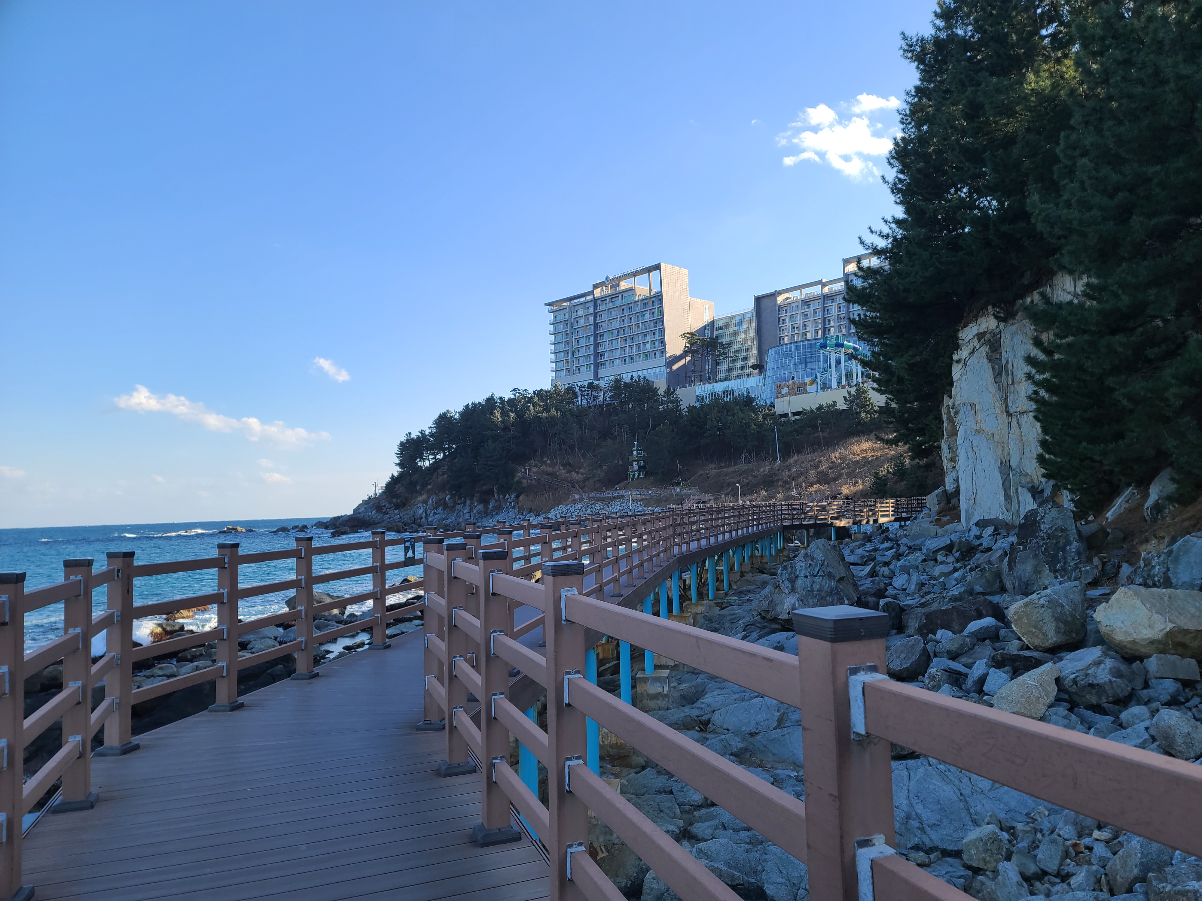바다를 따라서 데크길을 걸으면 편도로 15~20분정도 소요된다.
