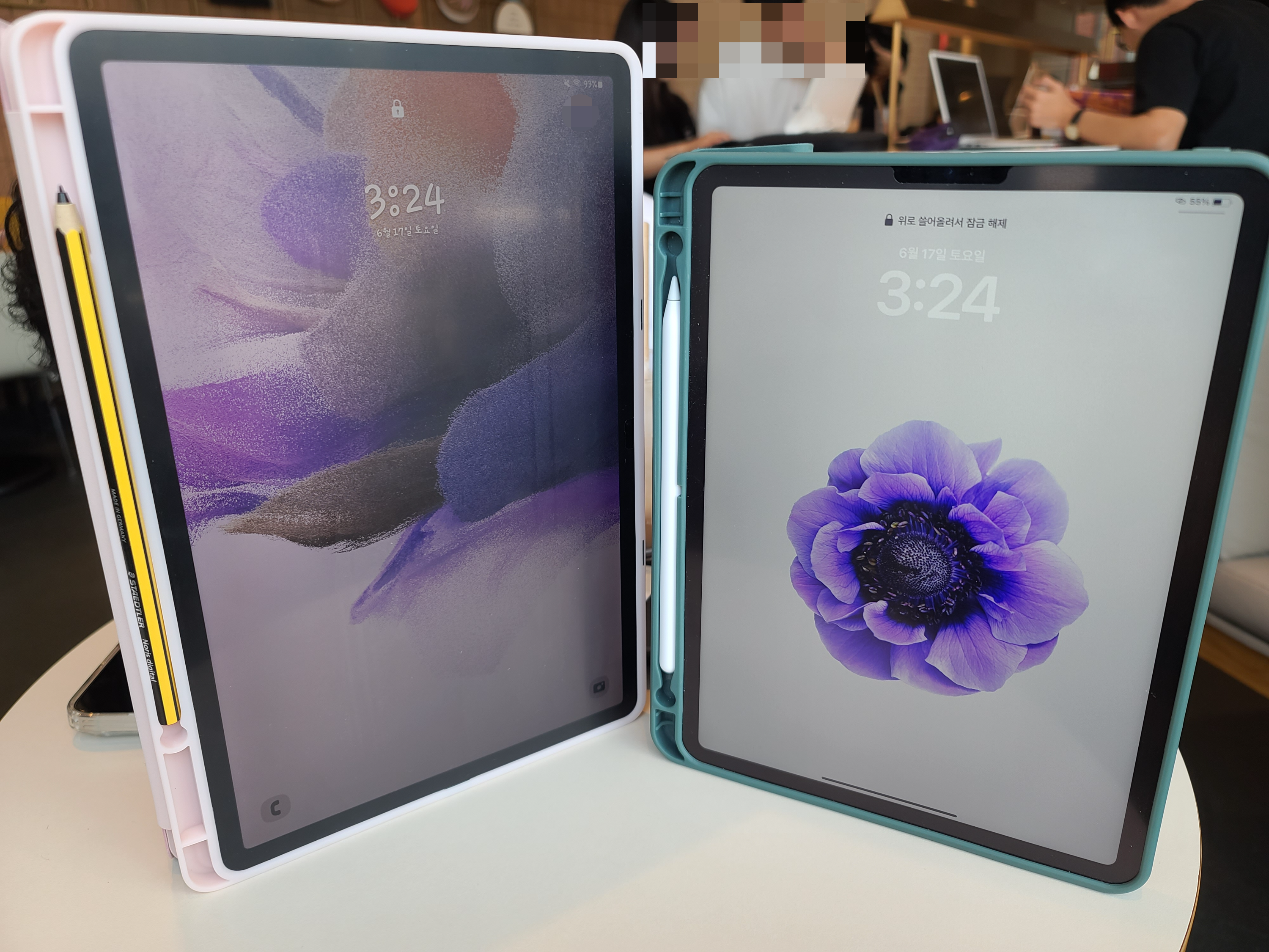 5. 그리고 널찍한 화면 : 무려 12.4인치!! 아이패드 프로 11인치와 비교하니 확실히 큰게 보인다.