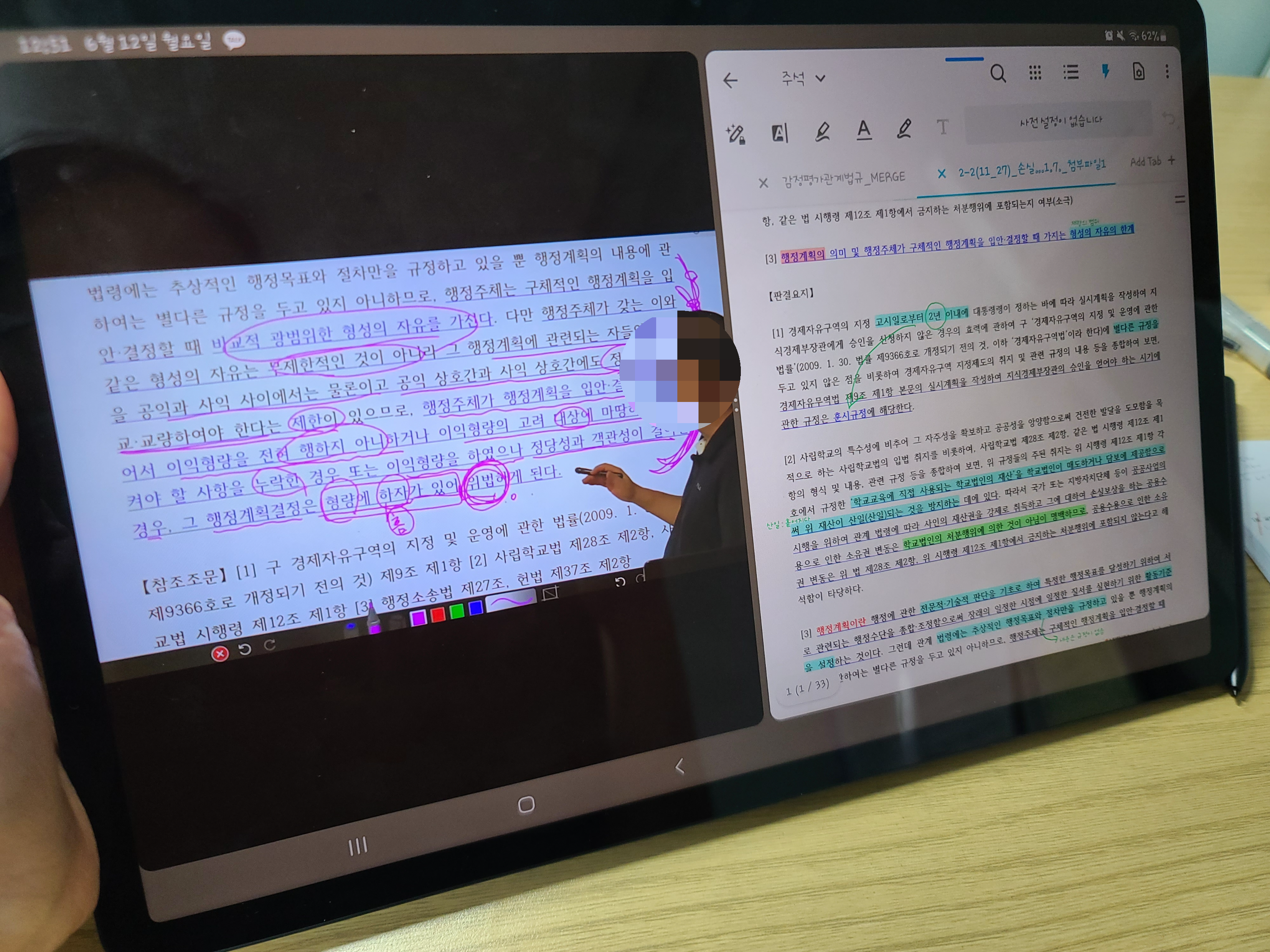 3. 필기에 적합하다 : 아이패드는 펜슬에 갈고리 현상이 있어서 힘줘서 또박또박 써야하는데, 약간 필기 강박증이 있는 나에게는 S펜의 필기감이 적당했다. 필기가 깔끔하게 되는 기쁨!! ㅋㅋㅋ