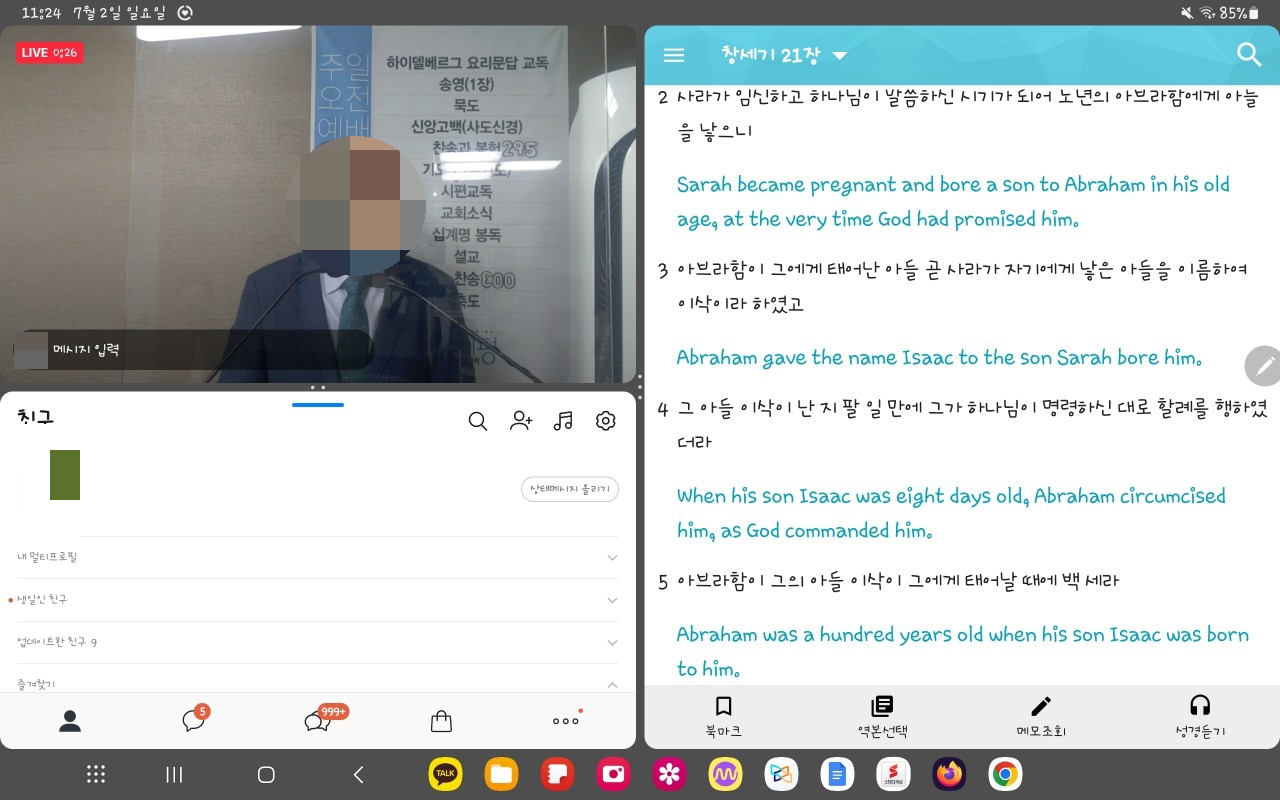 4. 화면분할 3개까지 지원 : 공부하다 보면 영상어플 1개, 필기어플 1개, 그리고 인터넷으로 급히 찾아볼수 있게 1개 정도 화면 분할 더 되면 좋겠다 했는데, S7 FE가 화면 분할 3개까지 지원해주더라 ㅋㅋㅋ