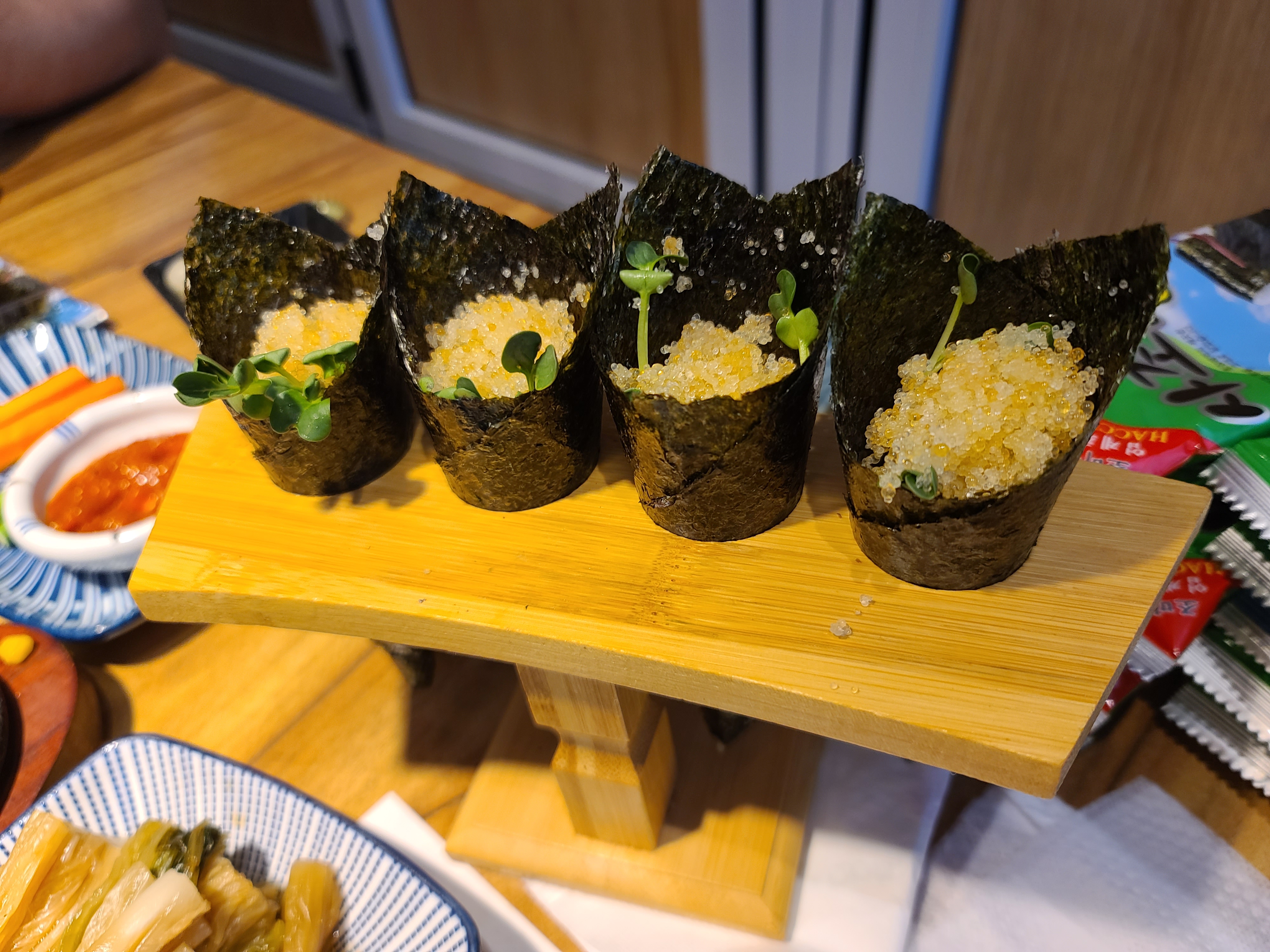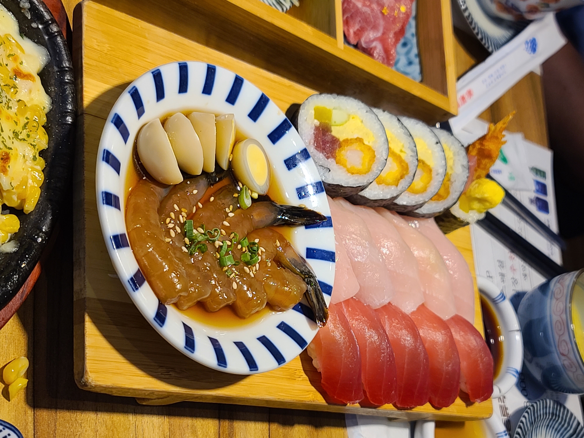 참치초밥 새우장 참치롤 메추리알도 나왔다.