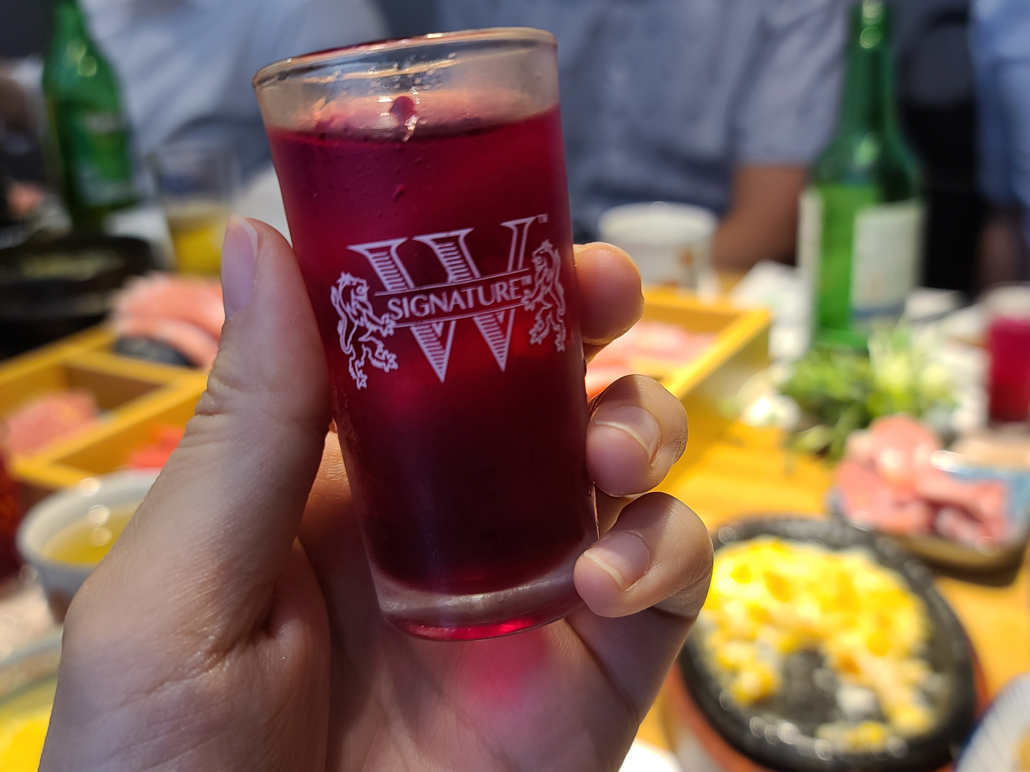 백년초가 아래에 가라앉아 있어서 한입에 다 마시라고. 무알콜!! ㅋㅋ
