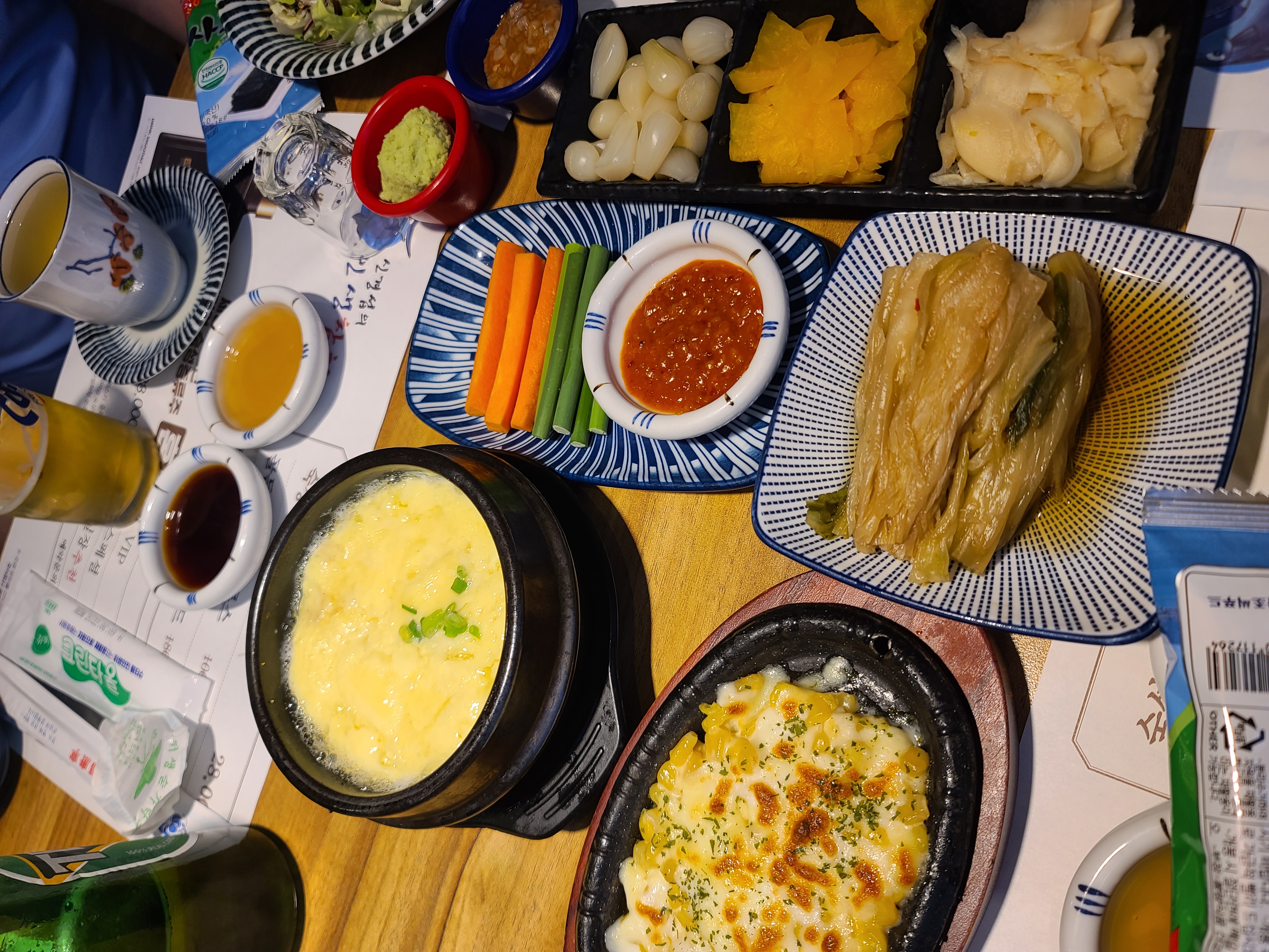 전복죽 콘치즈 계란찜 그리고 김치가 적당히 간이 되어 있어서 참치랑 잘 어울려요! ㅋㅋ