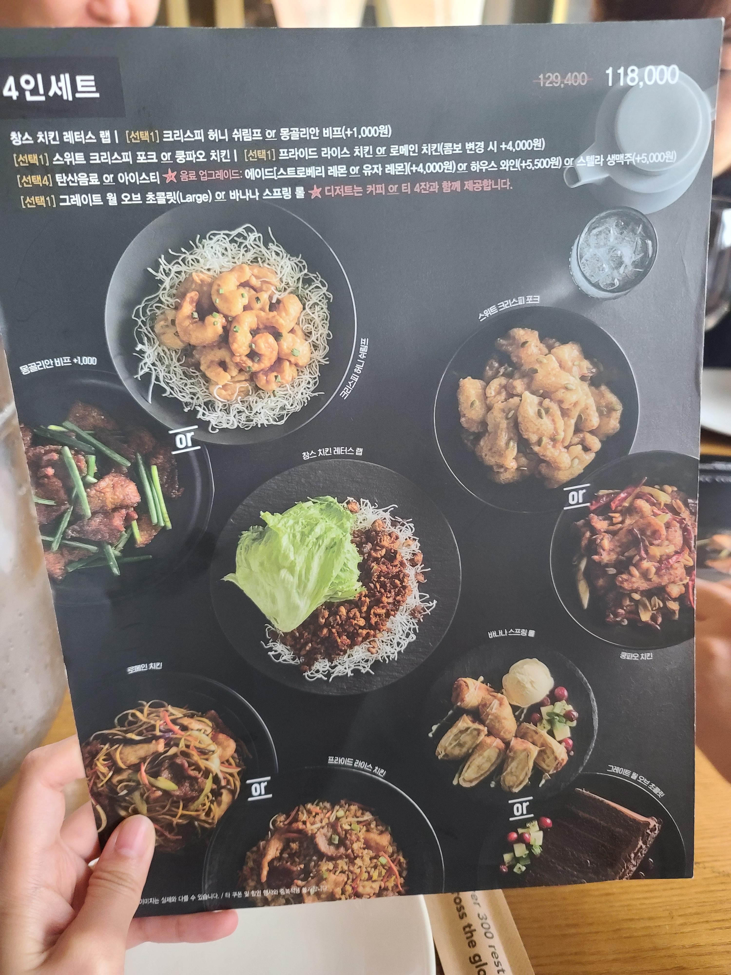 다른 메뉴를 한참 봤는데, 각자 먹고 싶은걸 하나씩 모으다보니까 은근 4인세트가 괜찮길래 4인세트를 주문했다 ㅋㅋㅋ