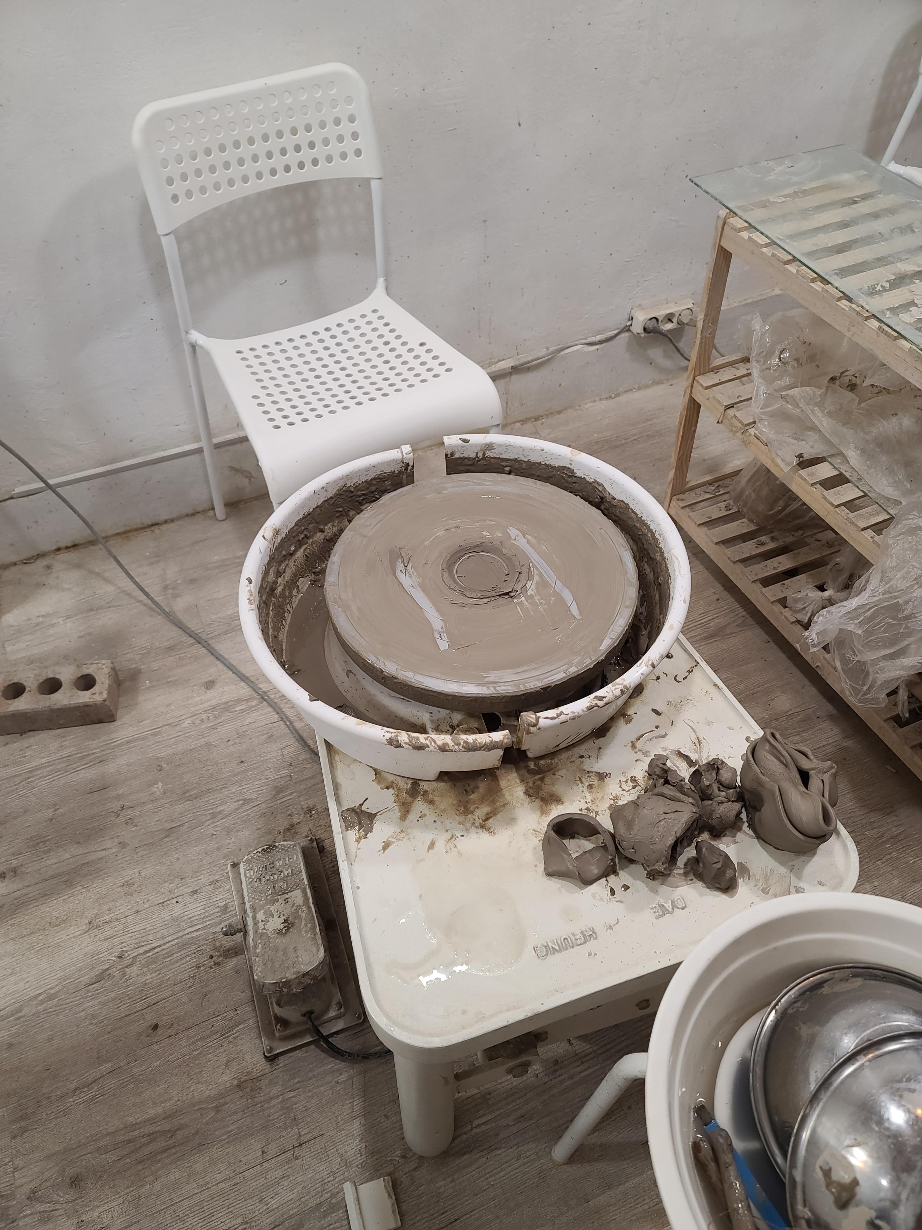 먼저 물레에 찰흙을 올리고 공기가 안들어가게 내리쳐준다.