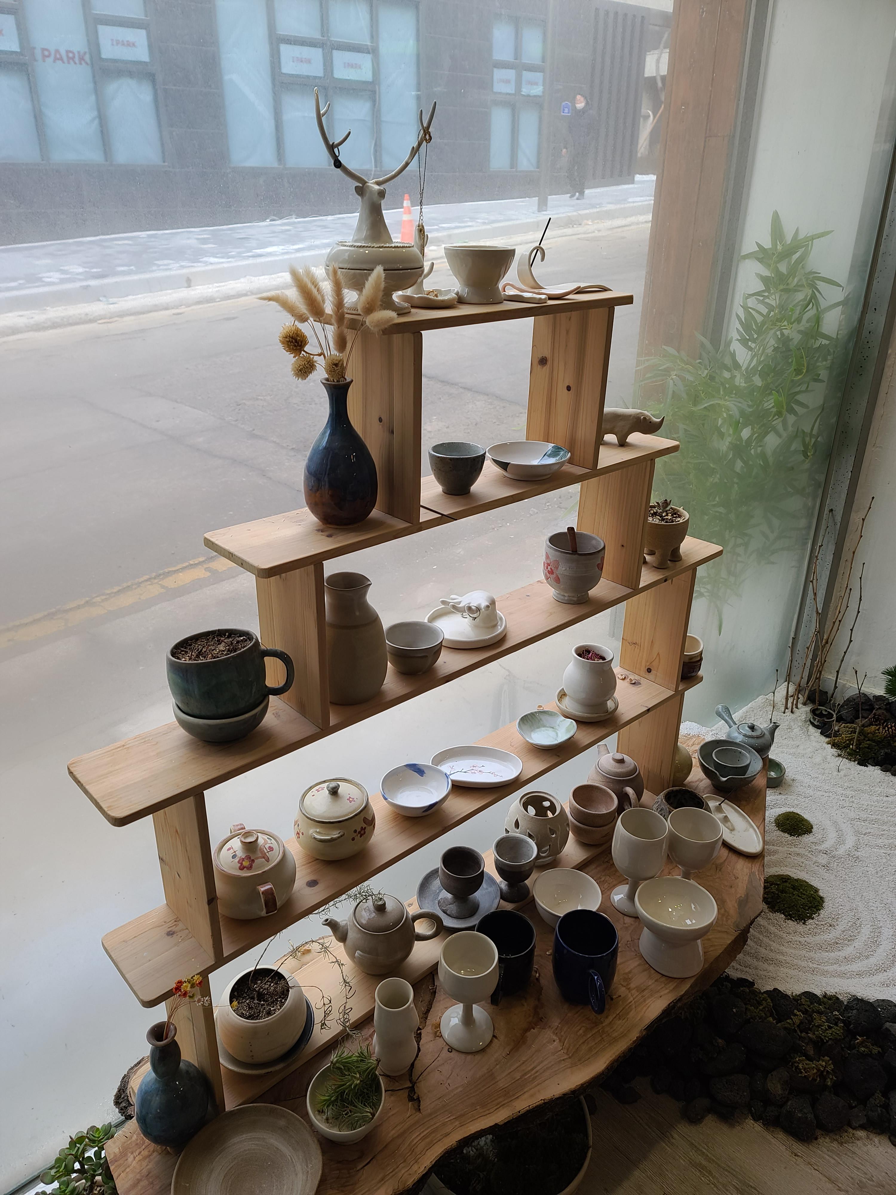 작품으로 탄생한 도자기들은 바깥 유리를 향해서 지나가는 손님을 유혹했고, 안쪽에는 아직 작업중인 도자기도 많았다.