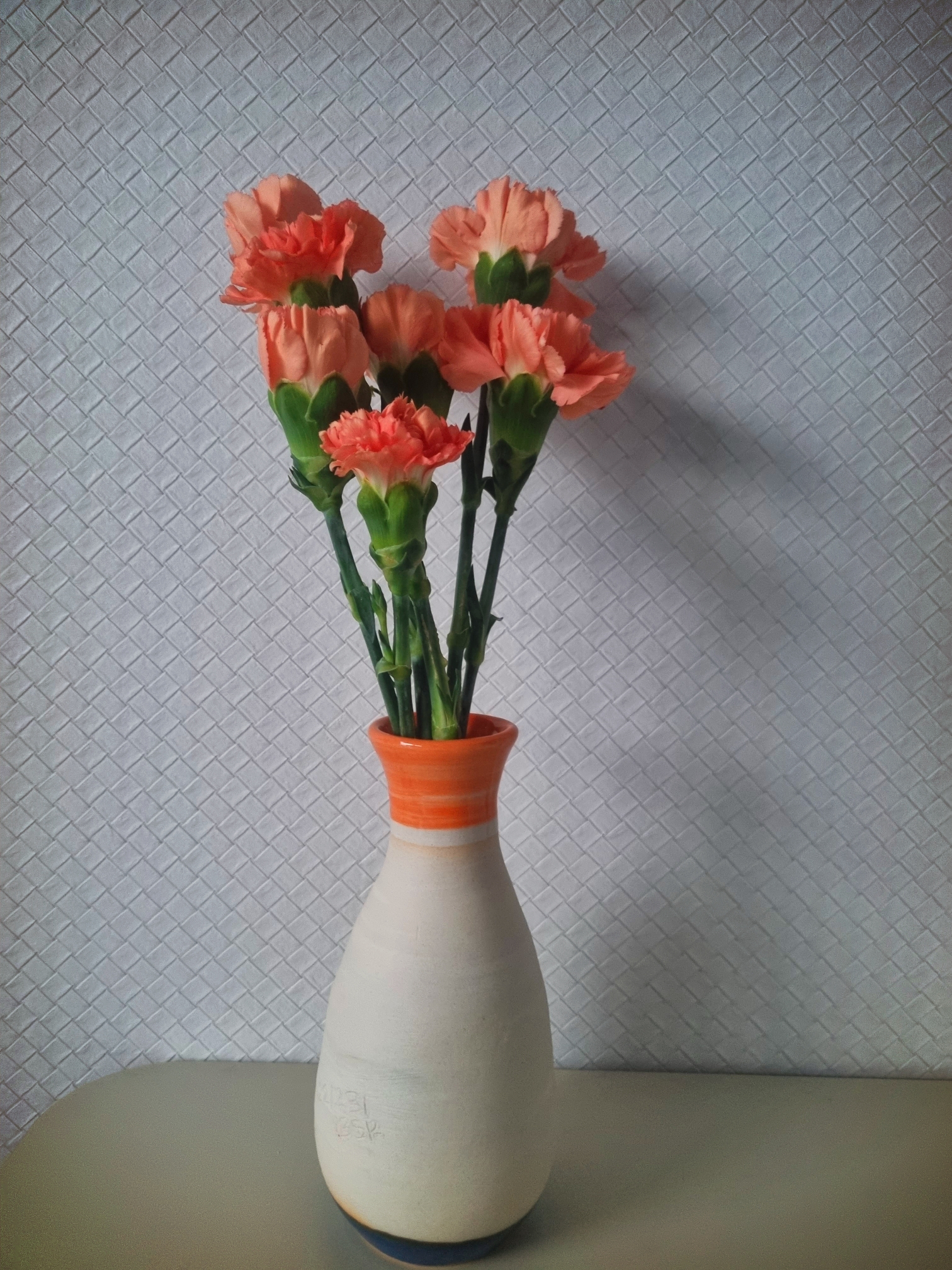 꽃병 색이랑 맞춘 꽃도 한다발 사서 꽂았더니