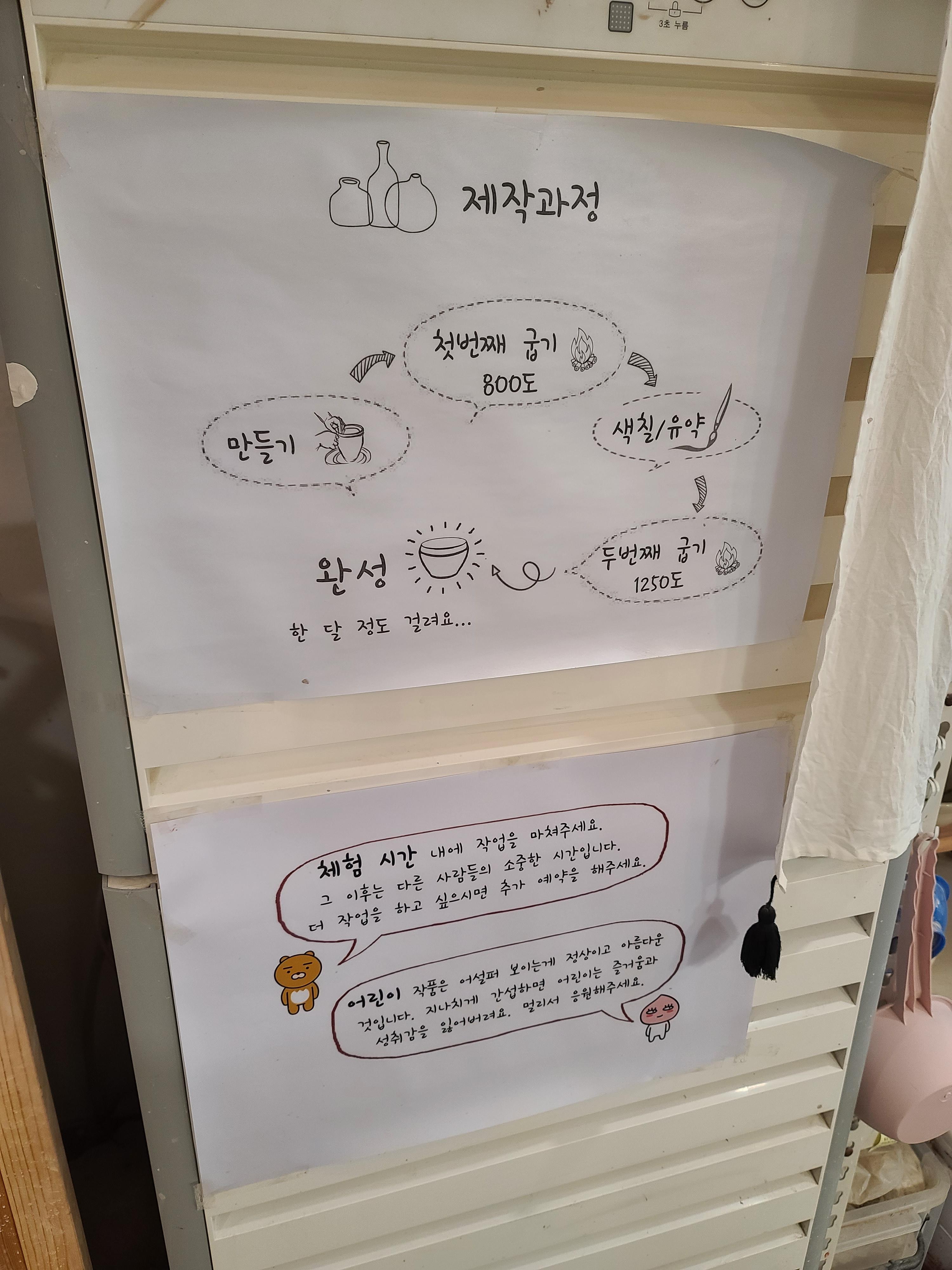 도자기는 찰흙으로 만드는데서 끝나는게아니라 2번 굽고 유약도 발라주고 해야돼서 하루만에는 안되고 나중에 다시 찾으러 가야한다.