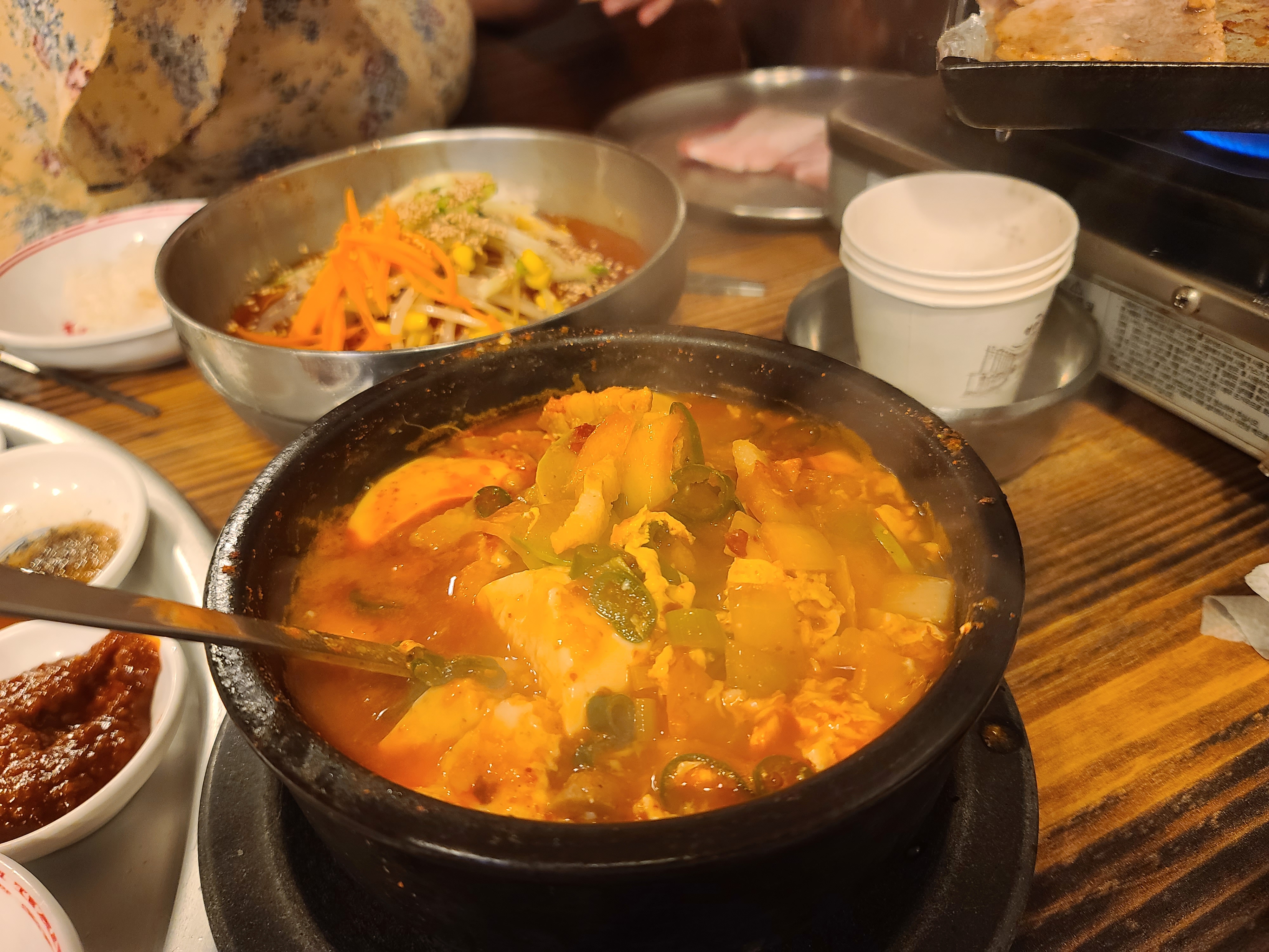 순두부찌개에도 삼겹살이 많이 들어가있고 두부도 아낌없이 넣어주셨다.