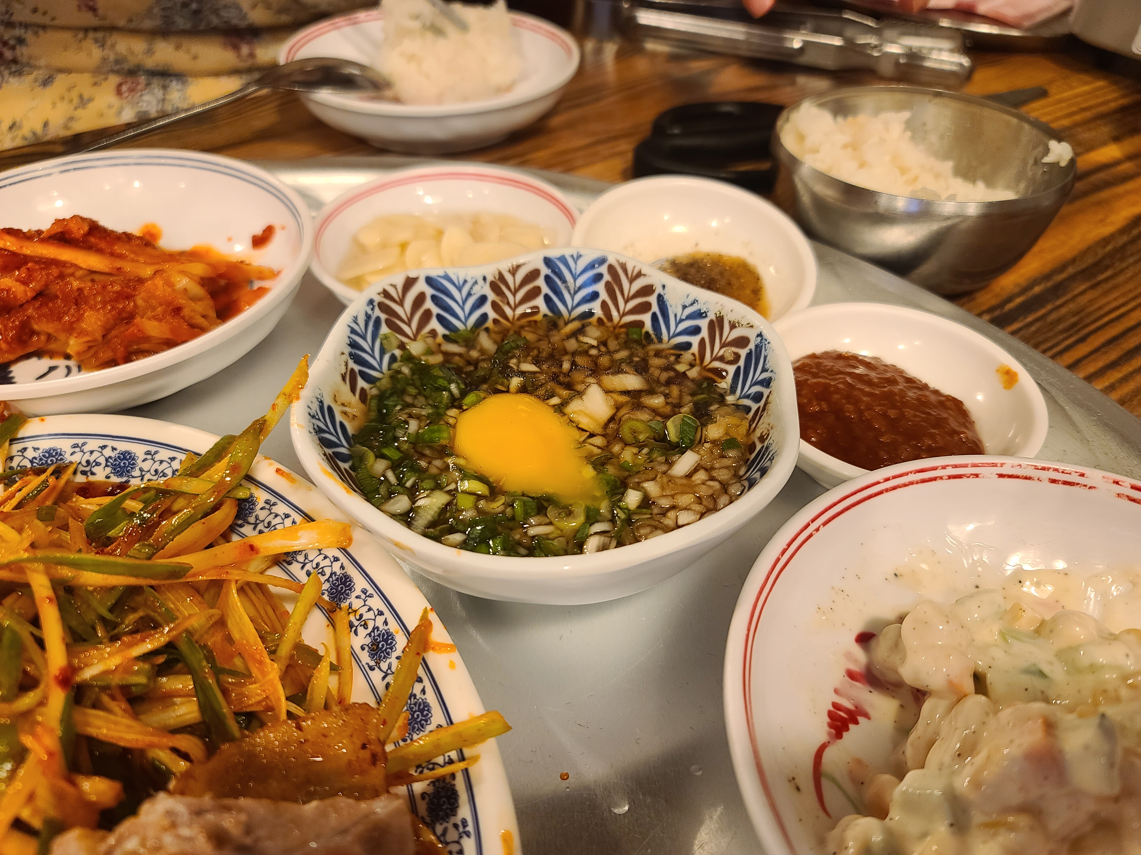 노른자를 이미 찍어먹은 후라 동그랗던 노른자가 깨져있다 ㅋㅋㅋㅋ