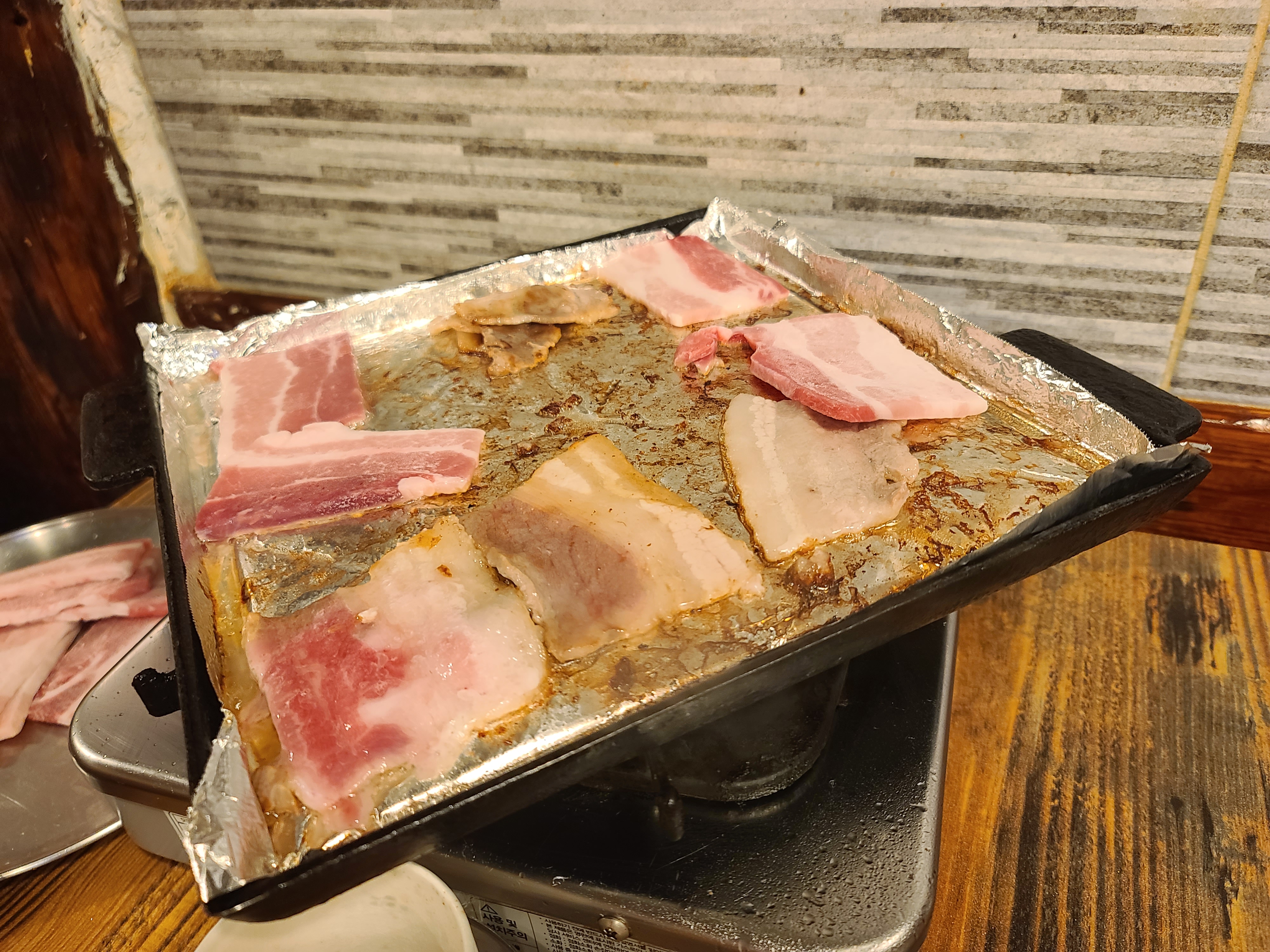 삼겹살도 3인분 가득 담아줬는데 이미 한판 먹고나서 찍어봄ㅋㅋ