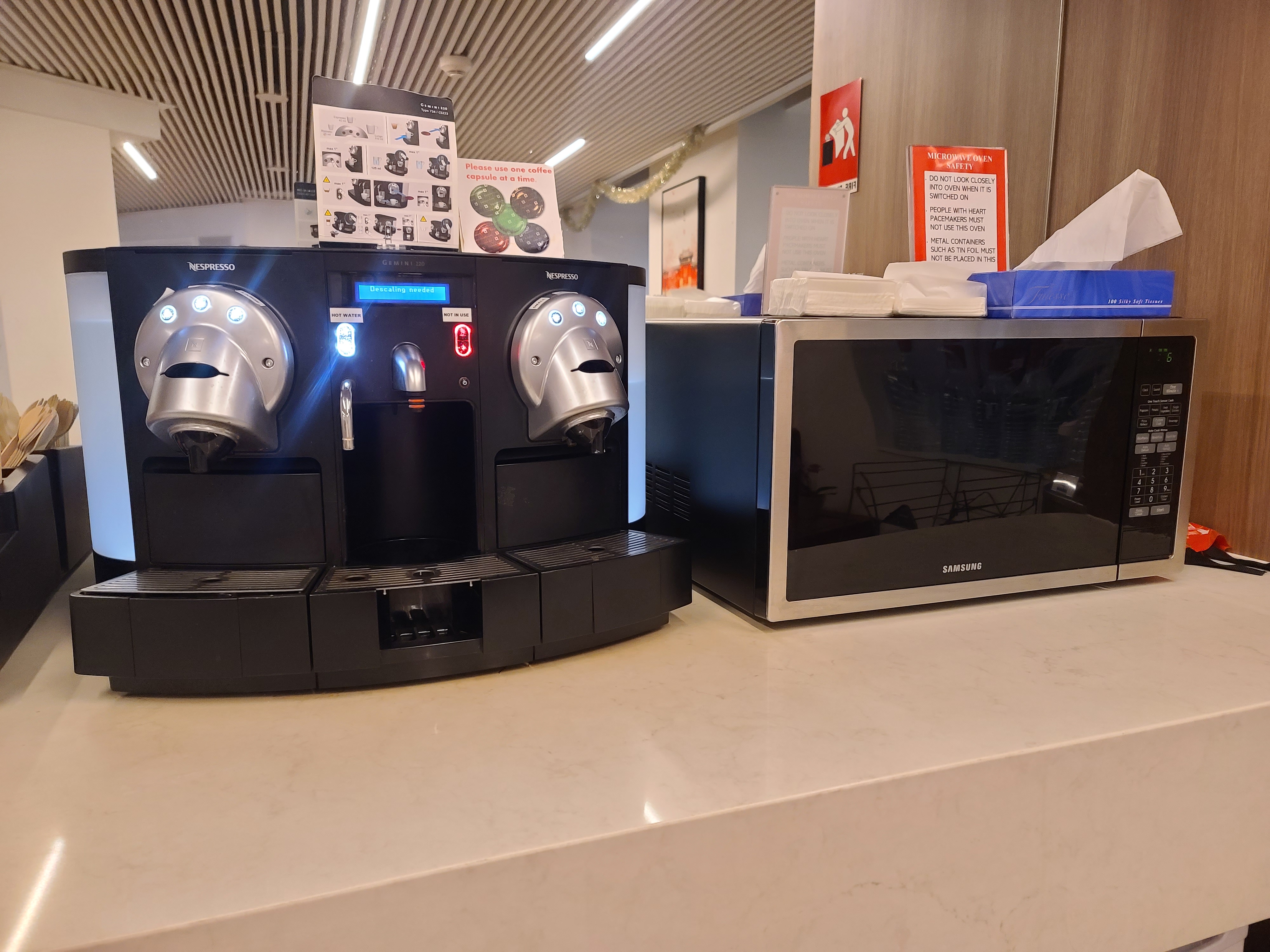 호텔방에서 냄새나는 음식 라운지에서 먹고, 캡슐커피도 있고!