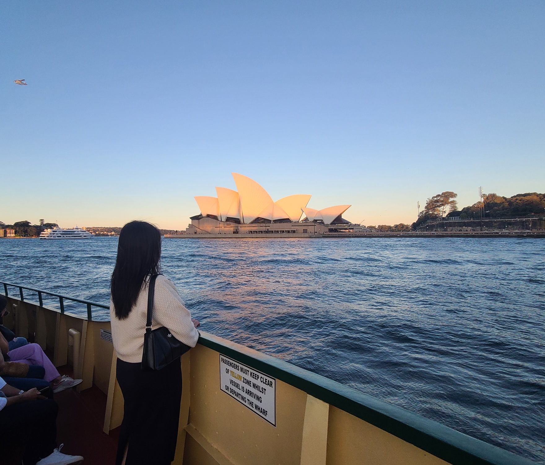 페리를 탈때 페리 머리쪽에 서있으면 오페라하우스를 배경으로 찍을 수 있다는 노하우를 터득해서 미리 대기하고 있다가 인생샷을 찍었다.