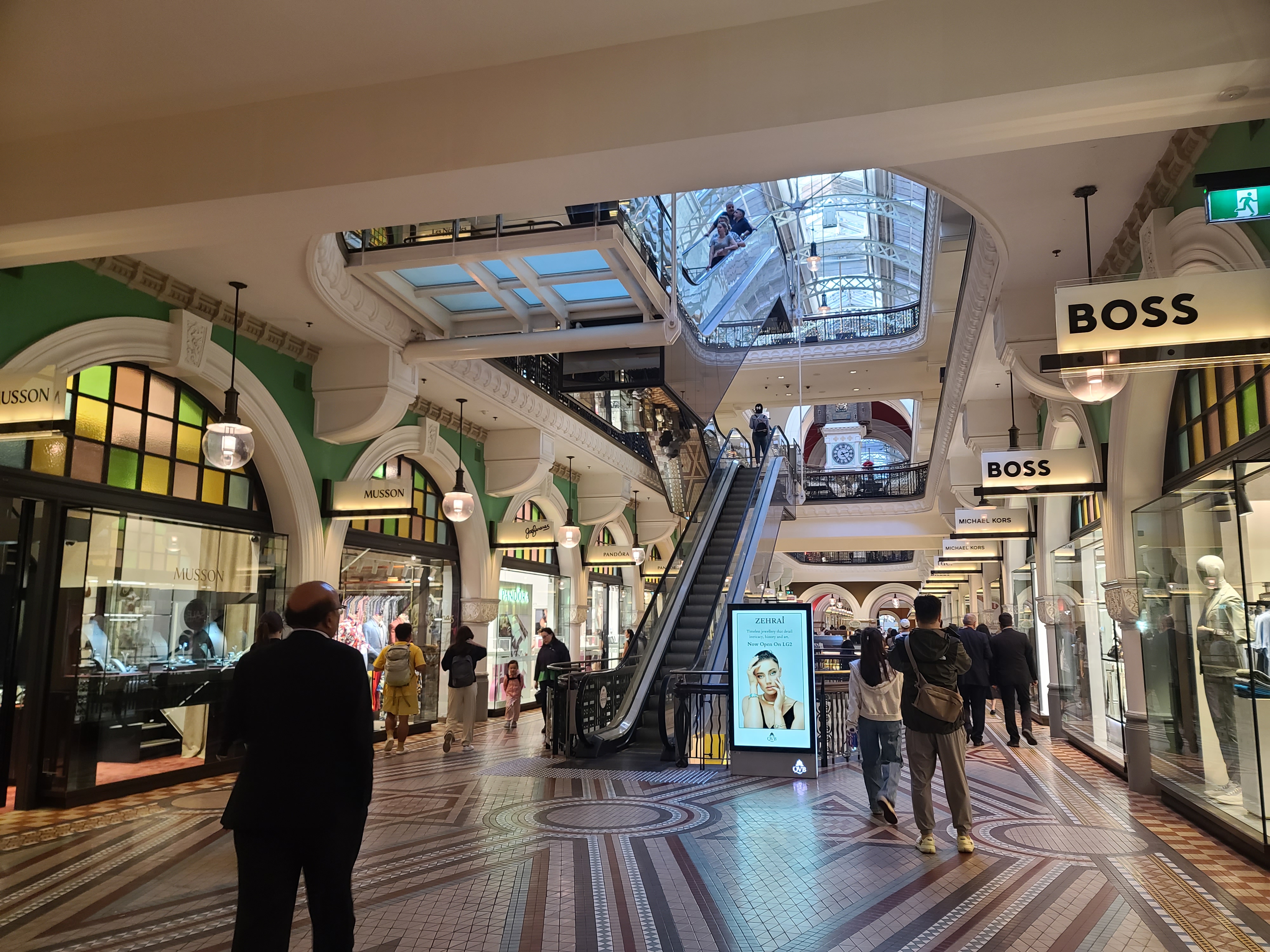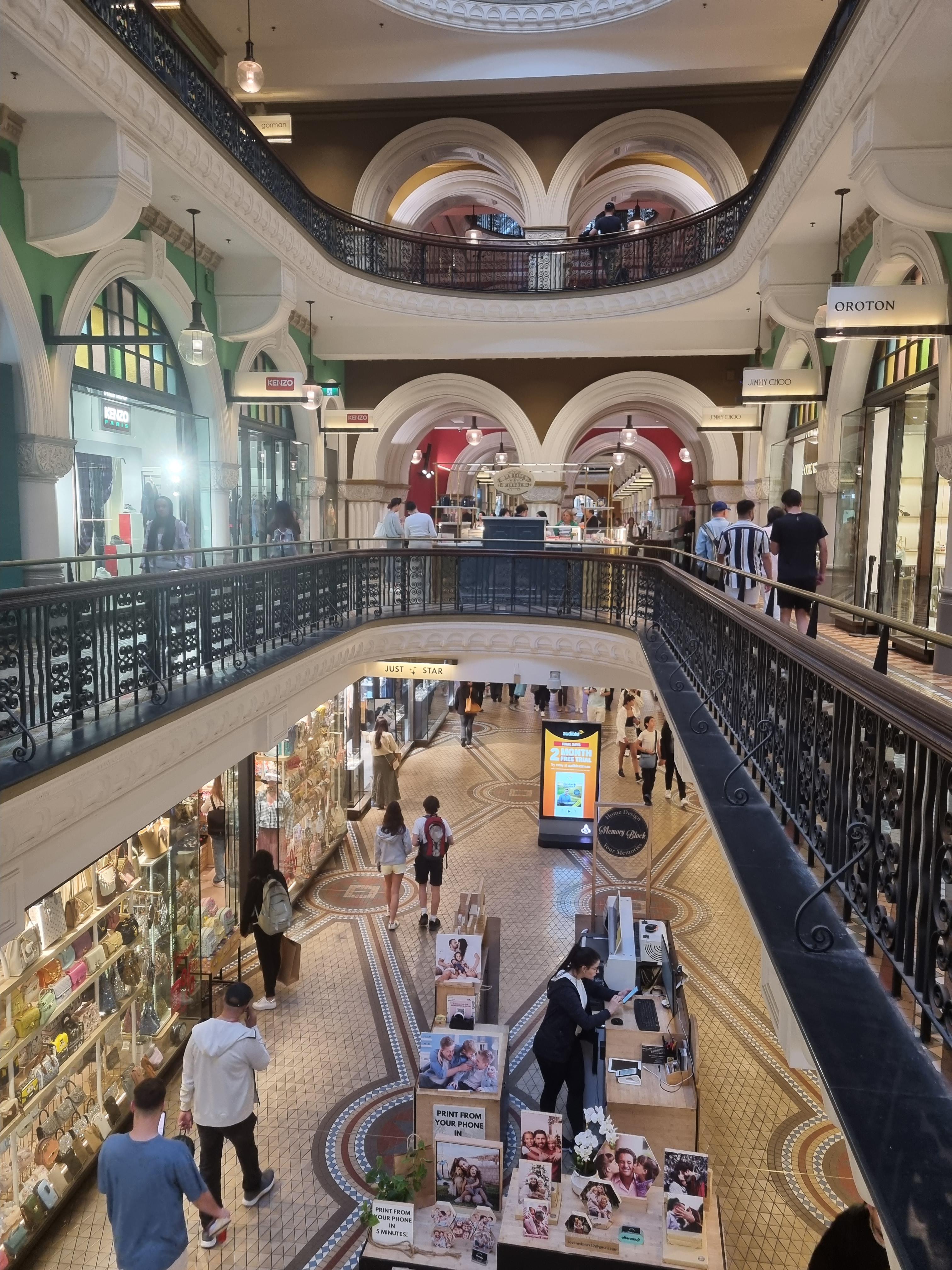 4. 특징 : 피에르 가르뎅이 '세계에서 가장 아름다운 쇼핑몰'이라고 극찬한 건물. 로마네스크 양식과 비잔틴 양식을 혼합하여 건축했다. 지하 2층은 타운홀 역과 연결되며 지상 3층까지 있음. 쇼핑몰로도 유명하지만, 건물 자체가 이쁘고 사진 찍을 곳도 많아서 시드니에 있다면 꼭 가봐야 하는 곳.