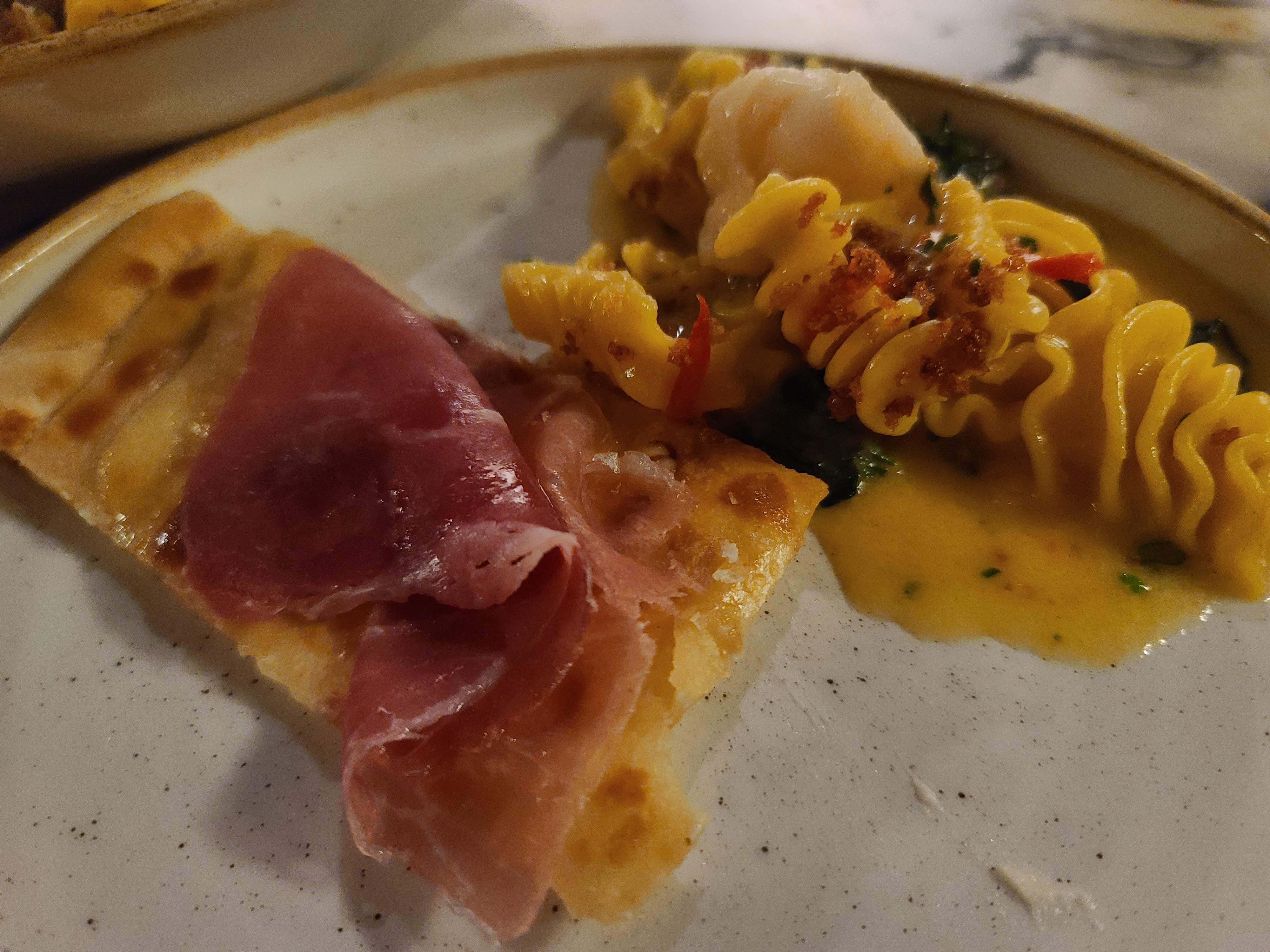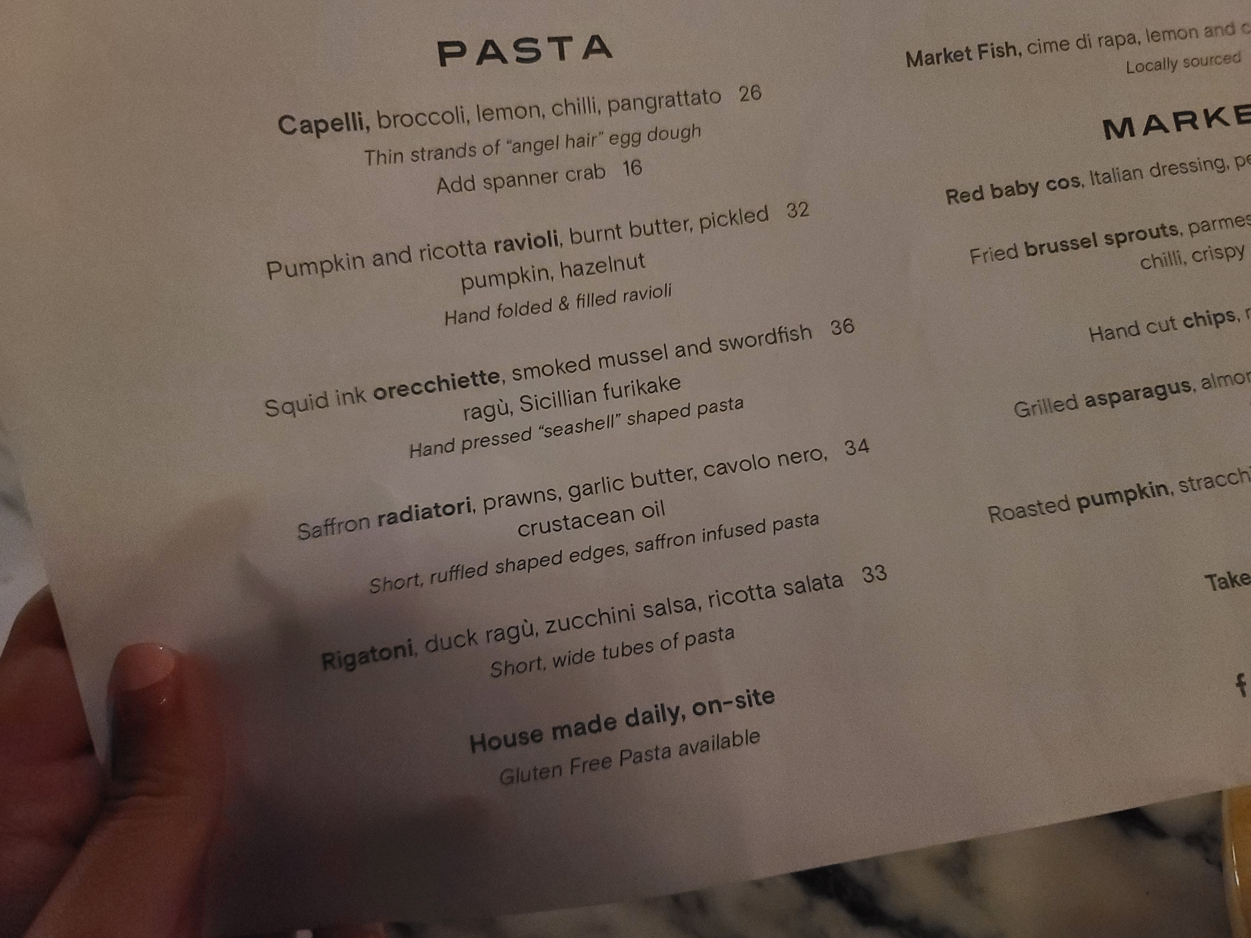 파스타 : 샤프란을 넣은 라디아토리면 파스타(A$34). 새우랑 갈릭버터가 들어간다고 해서 주문.