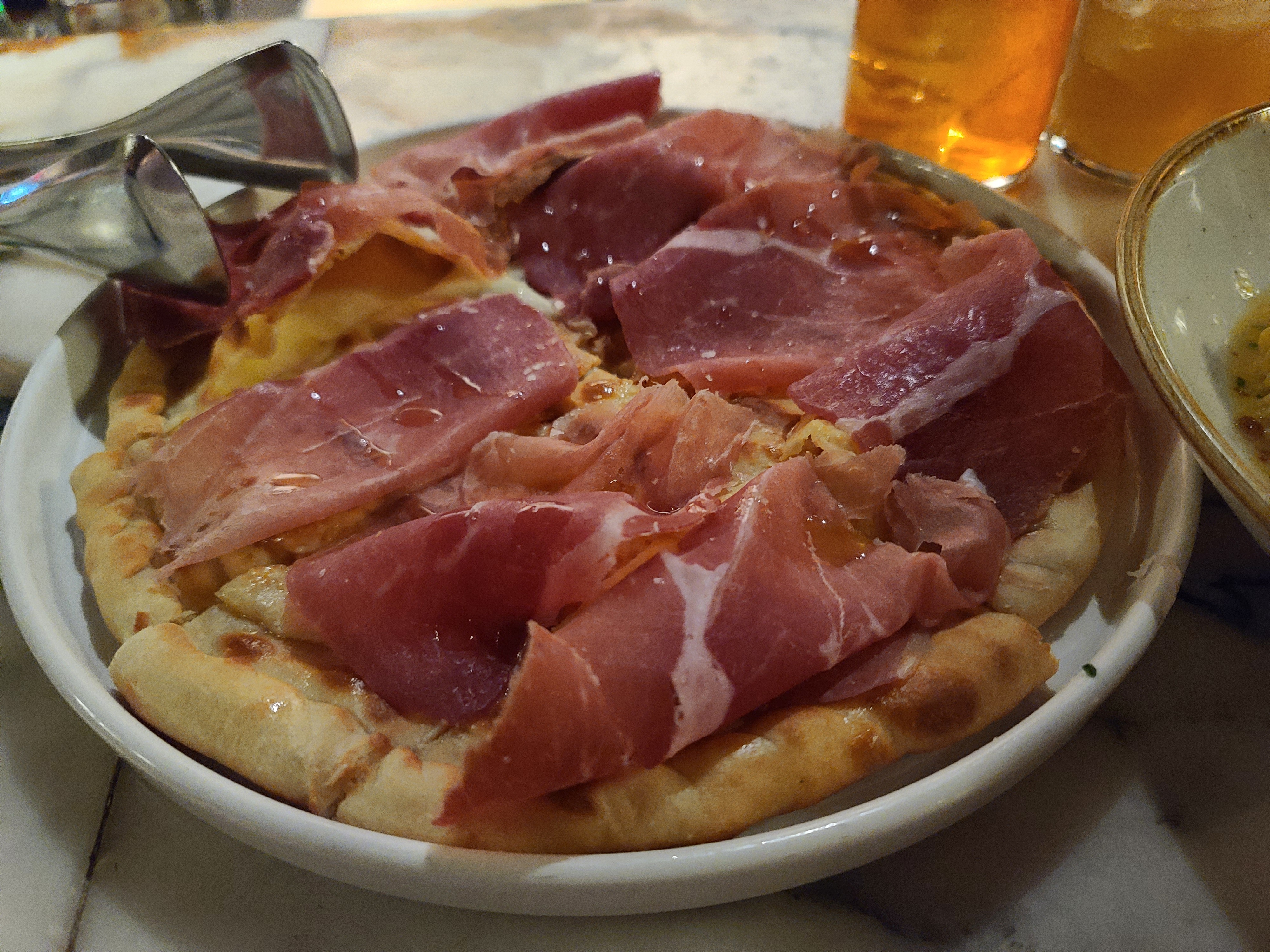 브레드 : 그라나에서 만든 치아바타 도우에 포카치아 치즈를 넣은 피자(A$18) + 프로슈토 햄을 추가(A$14)
