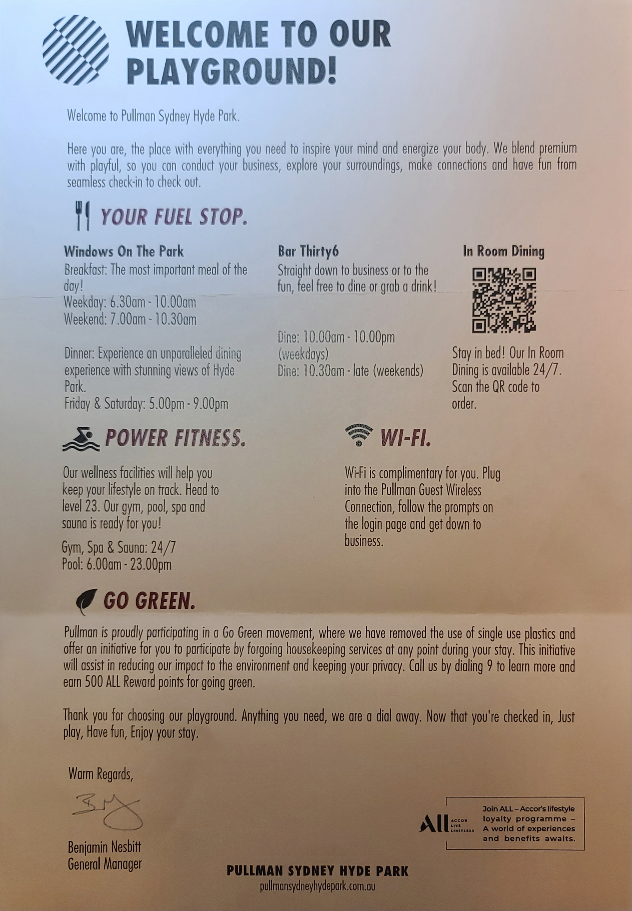 3. 주소 : Pullman Sydney Hyde Park, 36 College St, NSW 2010, Australia(풀만하이드파크 호텔 1층)