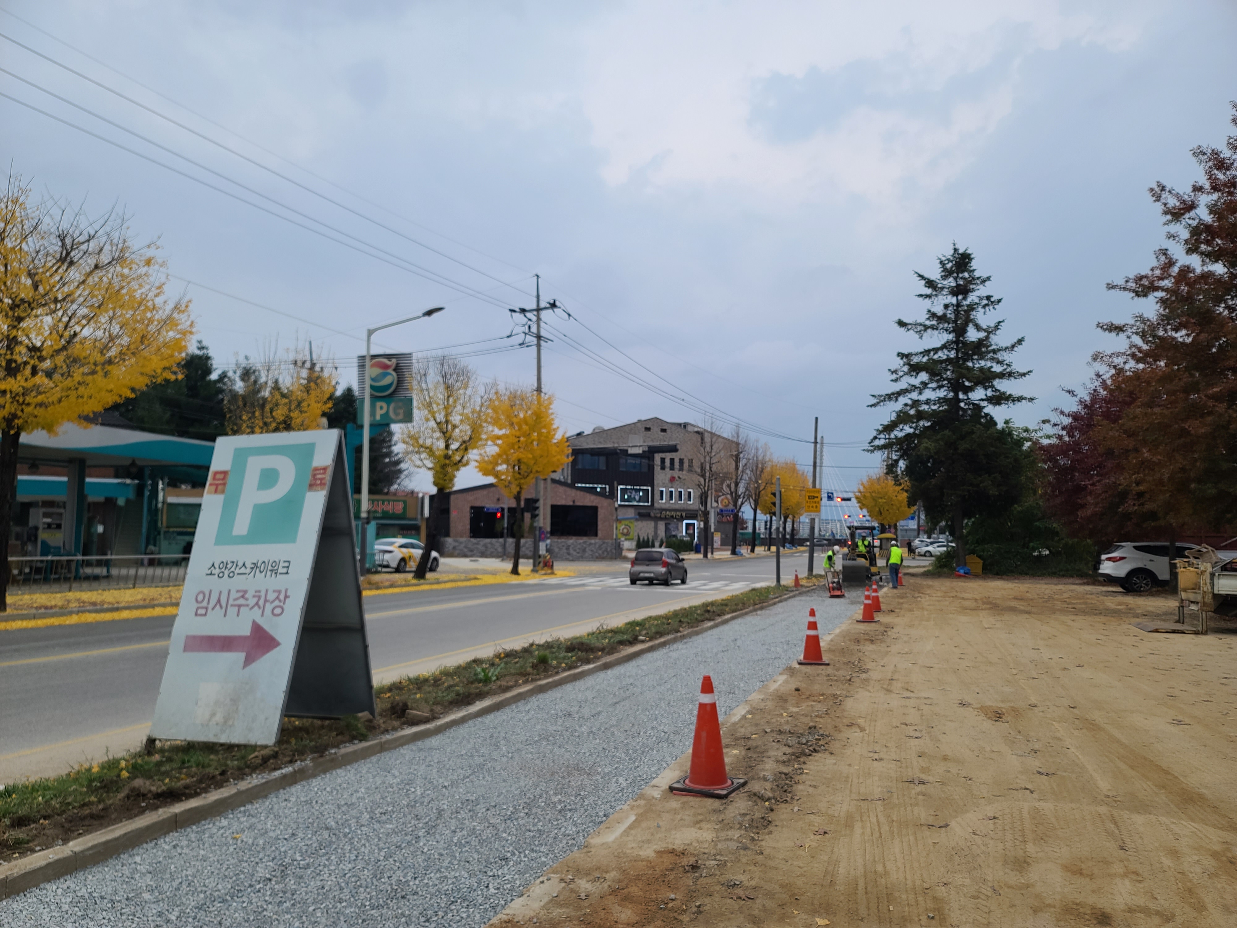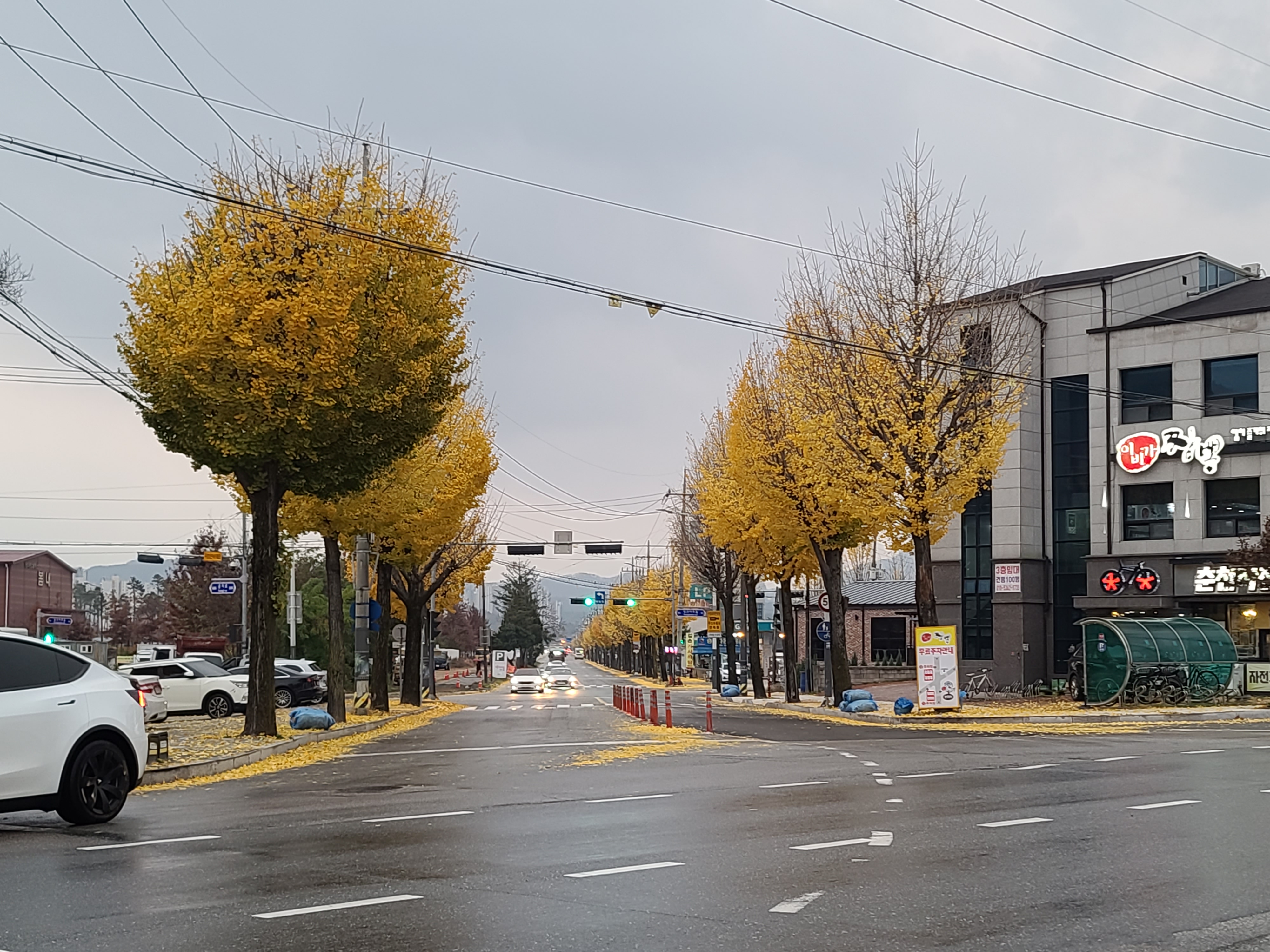 은행나무가 길을따라 심어져있고 비가 부슬부슬 내리는 춘천도로가 너무 이뻐서 또 한장 찍어봤어요.