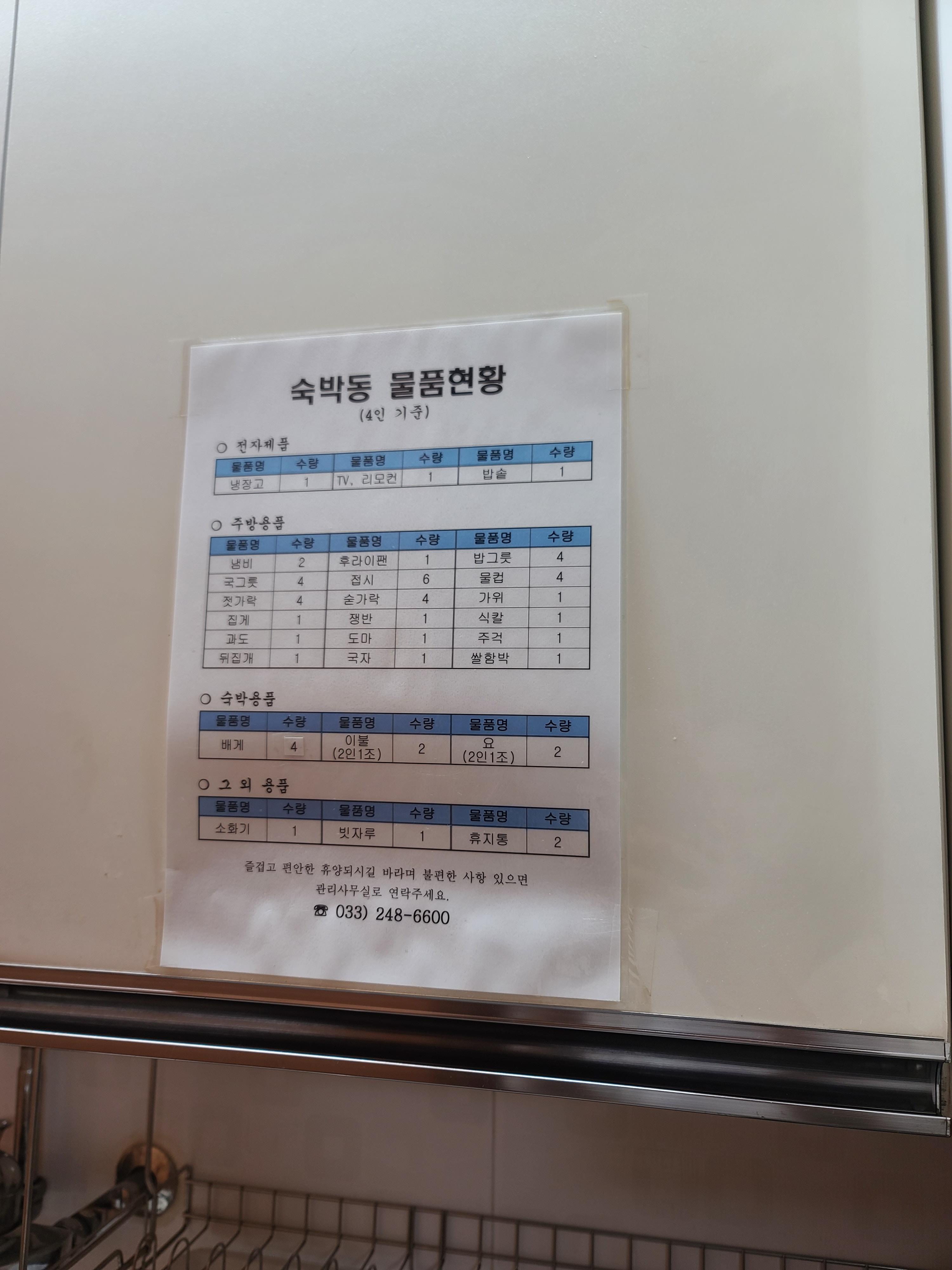 관리사무소에 안내 게시글이 몇개 있어서 사진찍고 우리가 예약한 숙소로 갔다.