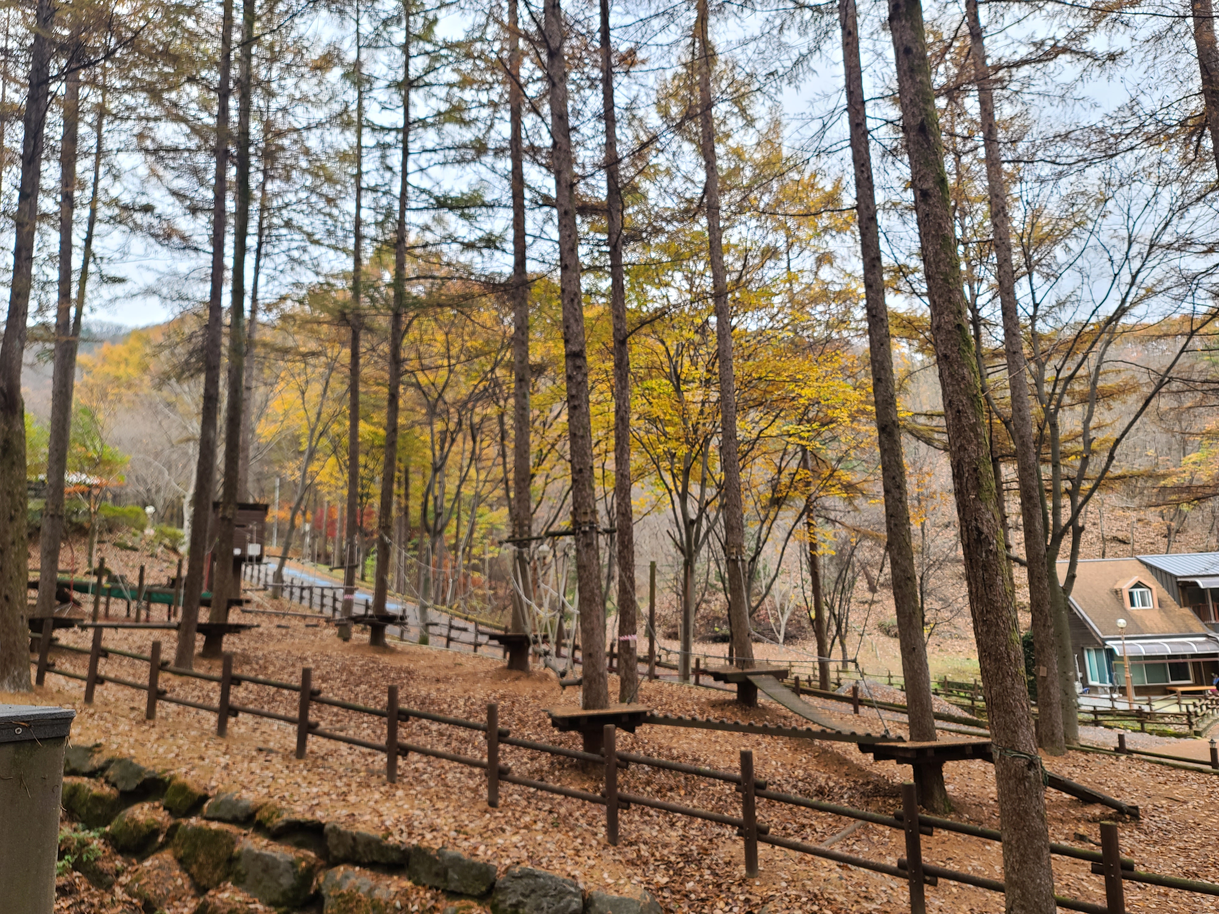 나무 사이에 흔들다리를 놓고 올라가고 그런 시설들이었다.