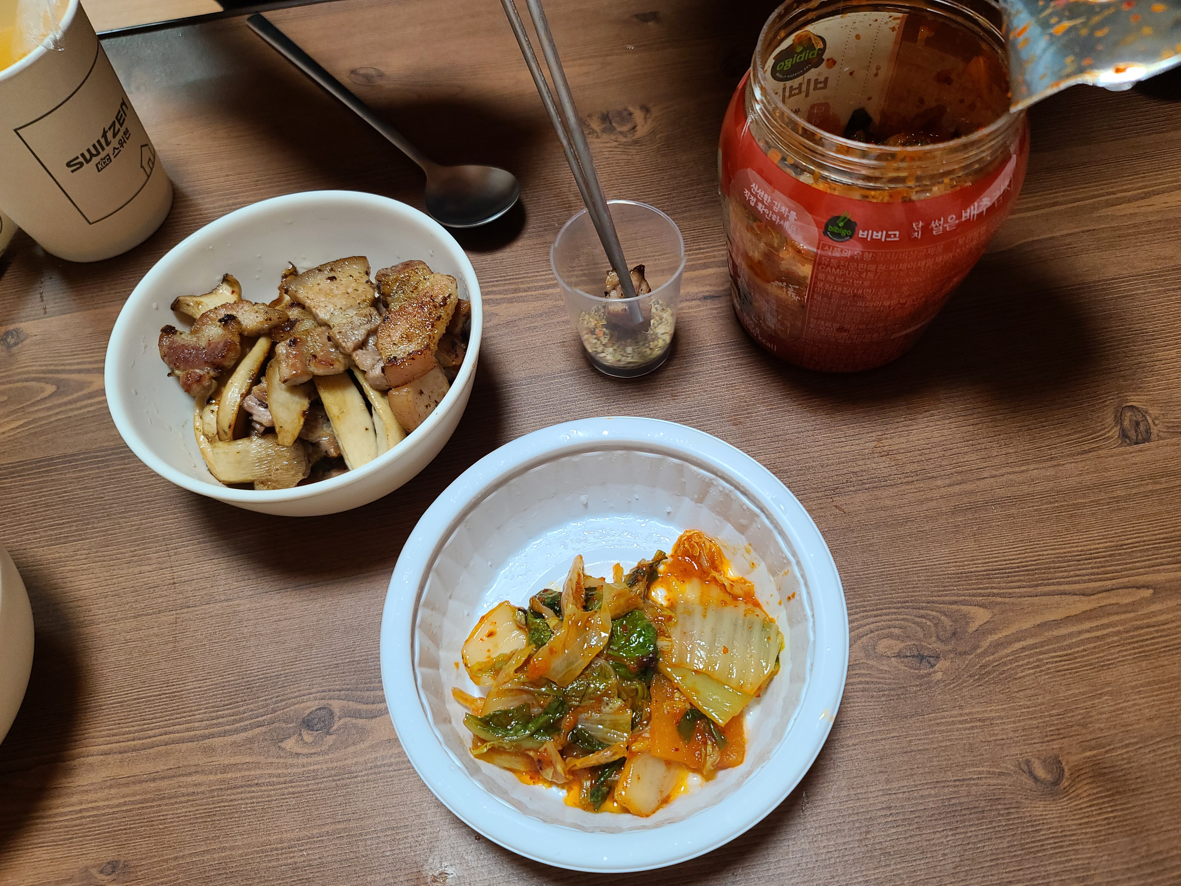 삼겹살이랑 김치도 구워서 같이 먹었다
