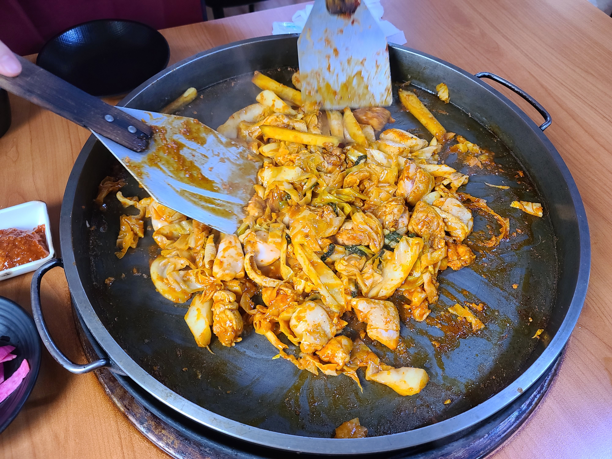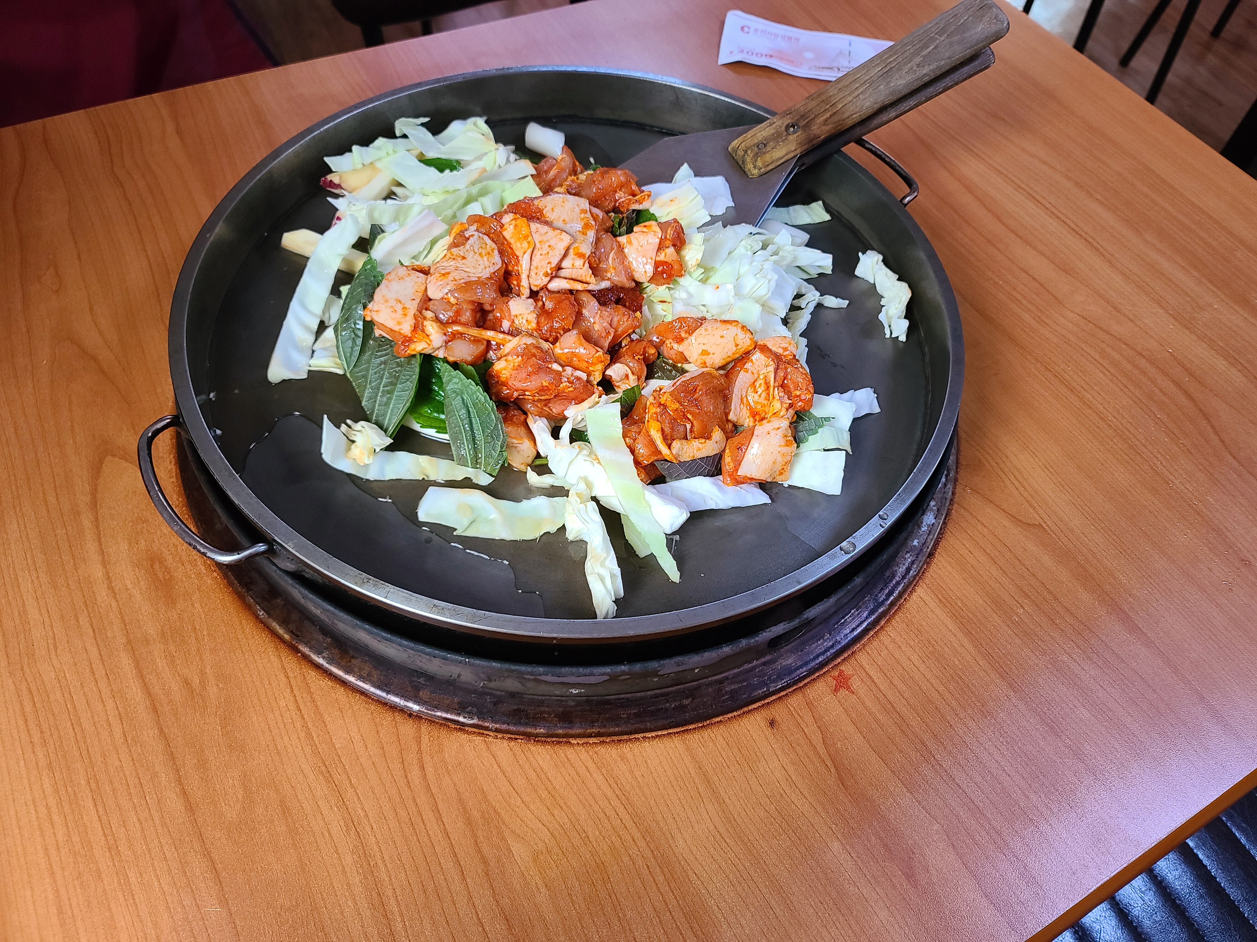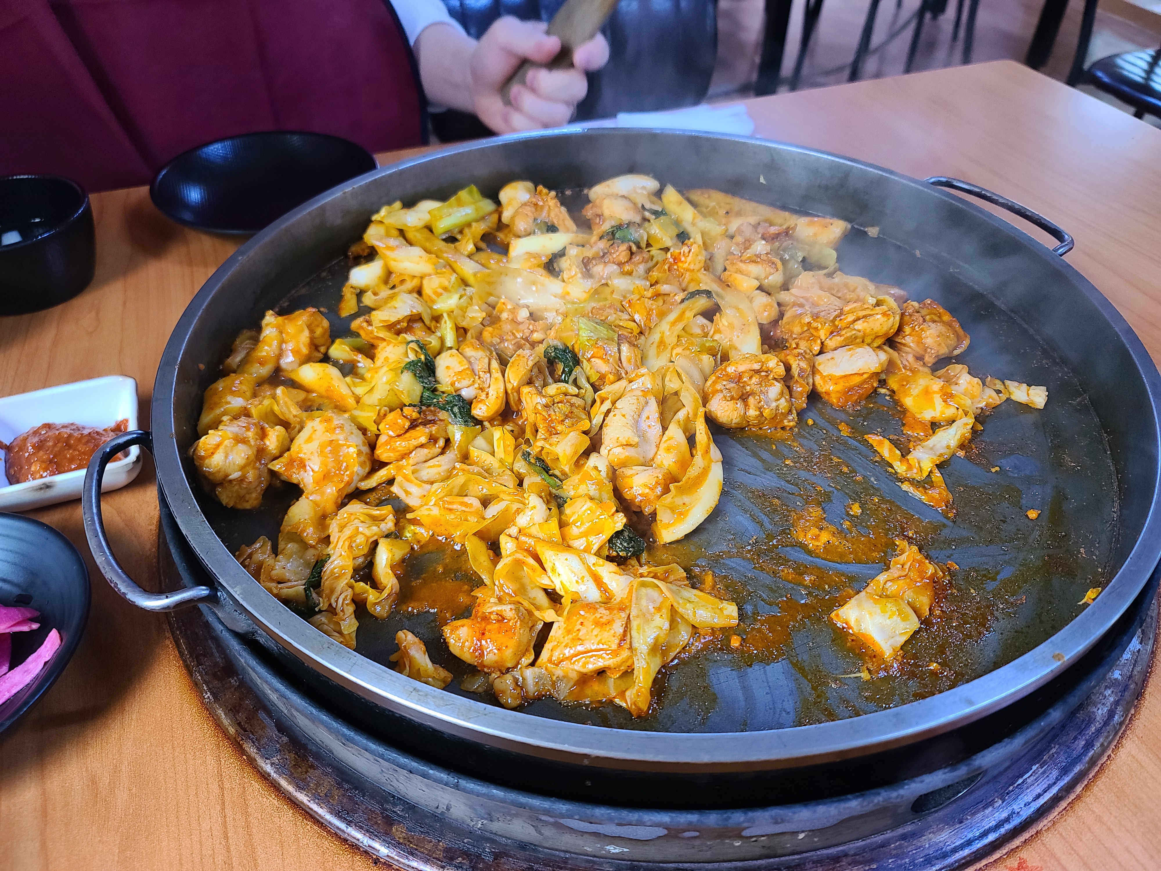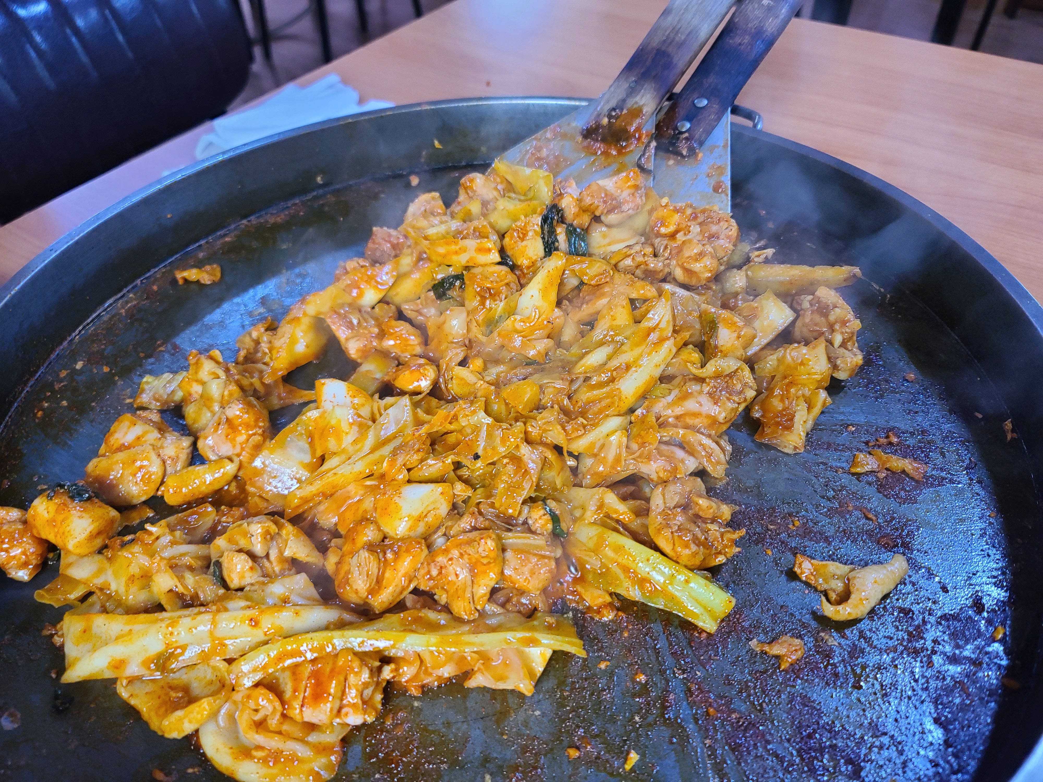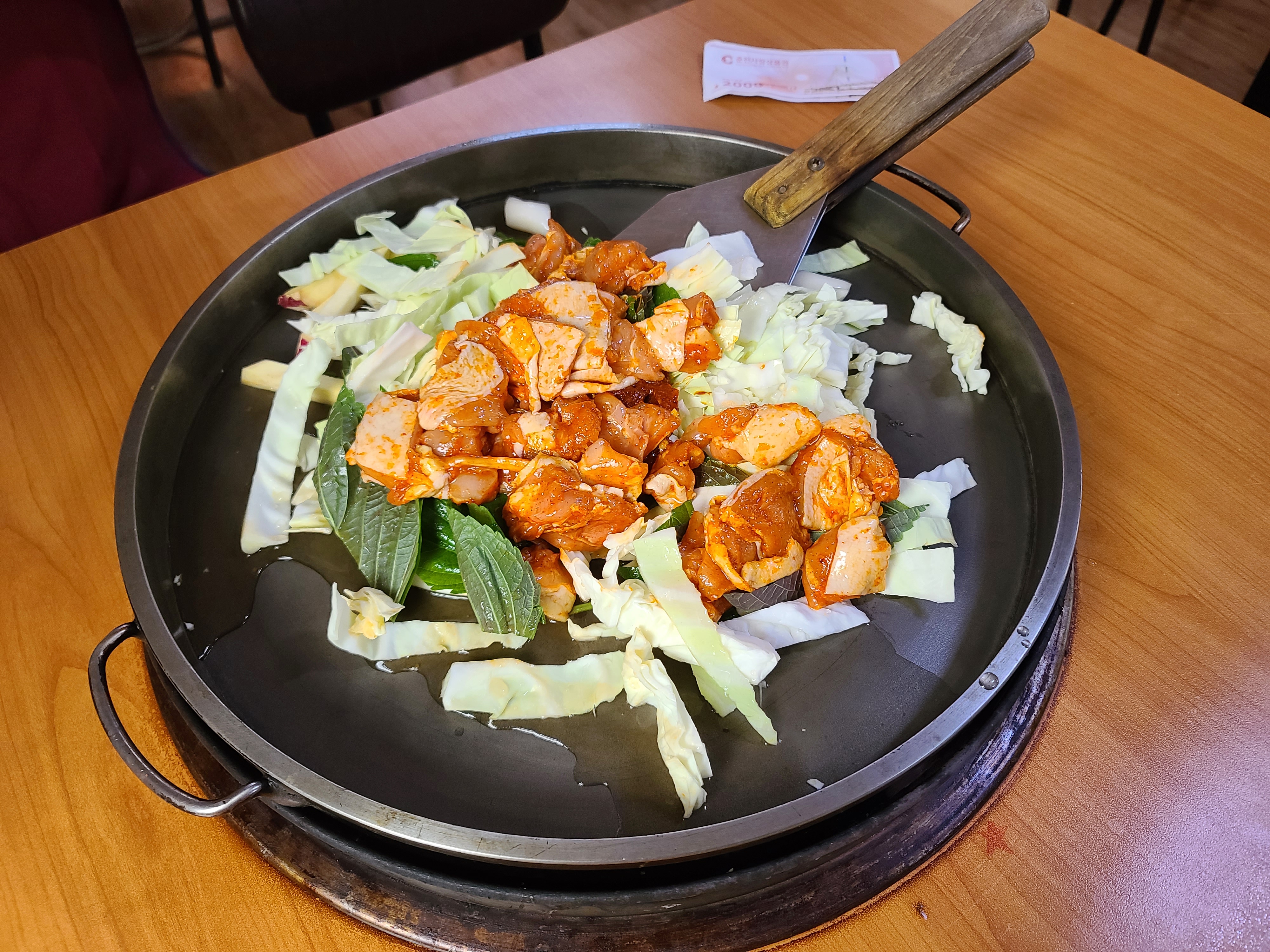 철판이 엄청 큰데 양배추랑 닭고기 양이 많아서 판이 그리 커보이지 않는다 ㅋㅋㅋ