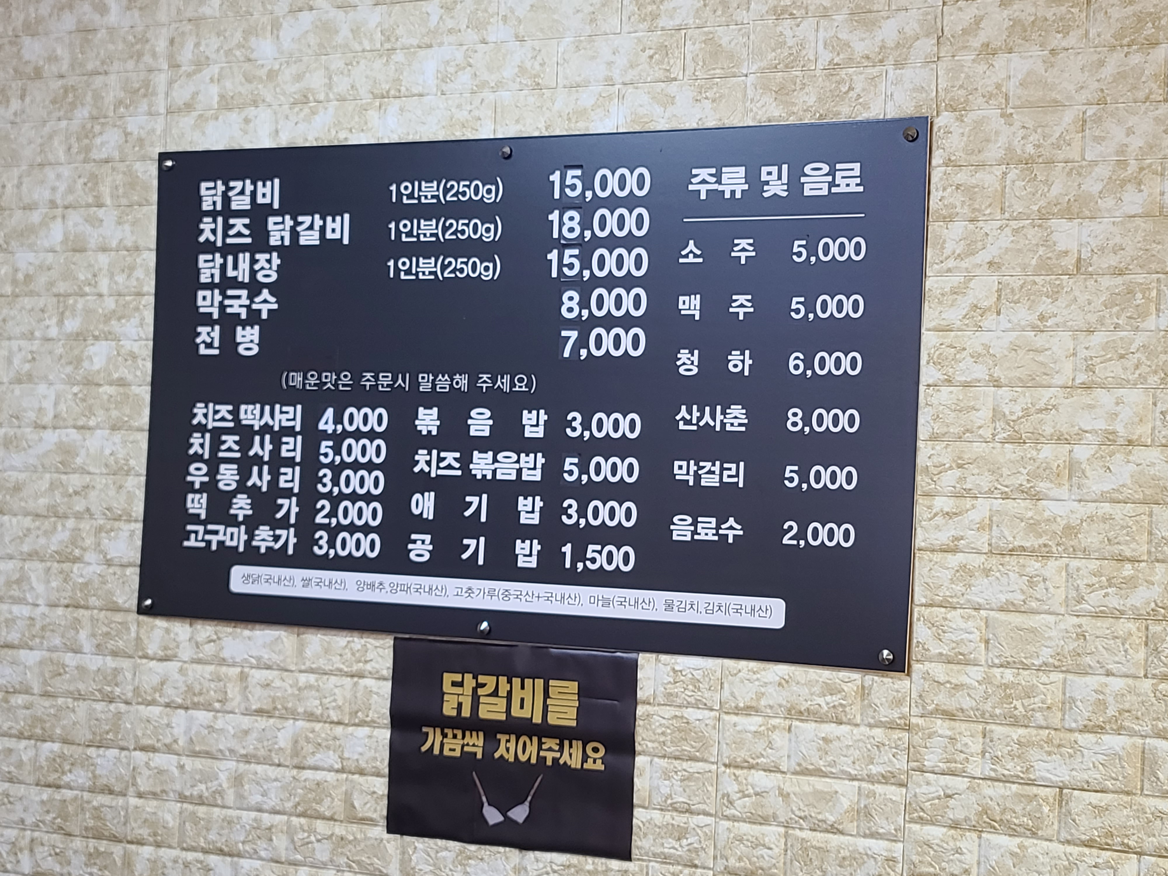닭갈비는 \15,000/1인분이었고,