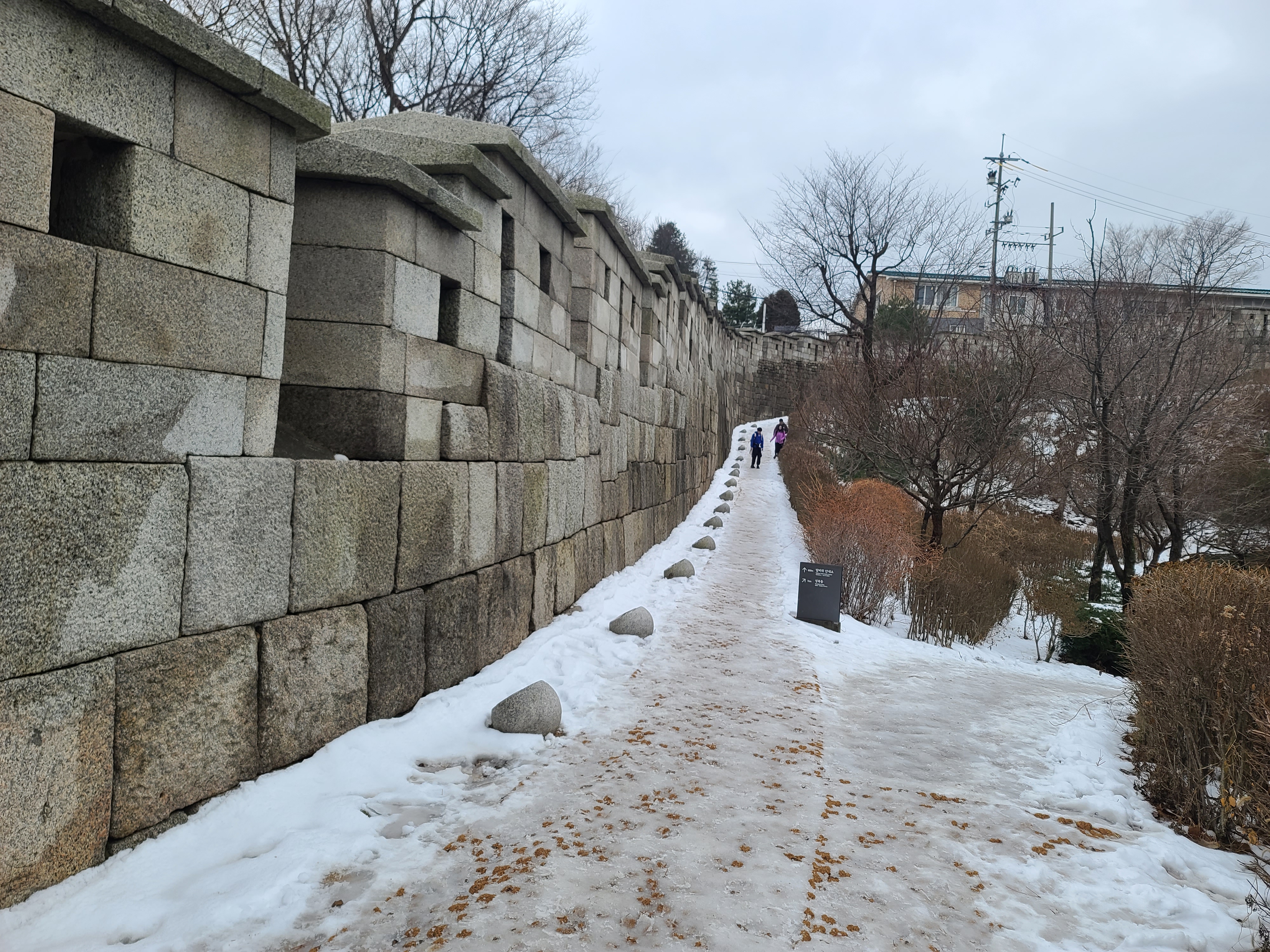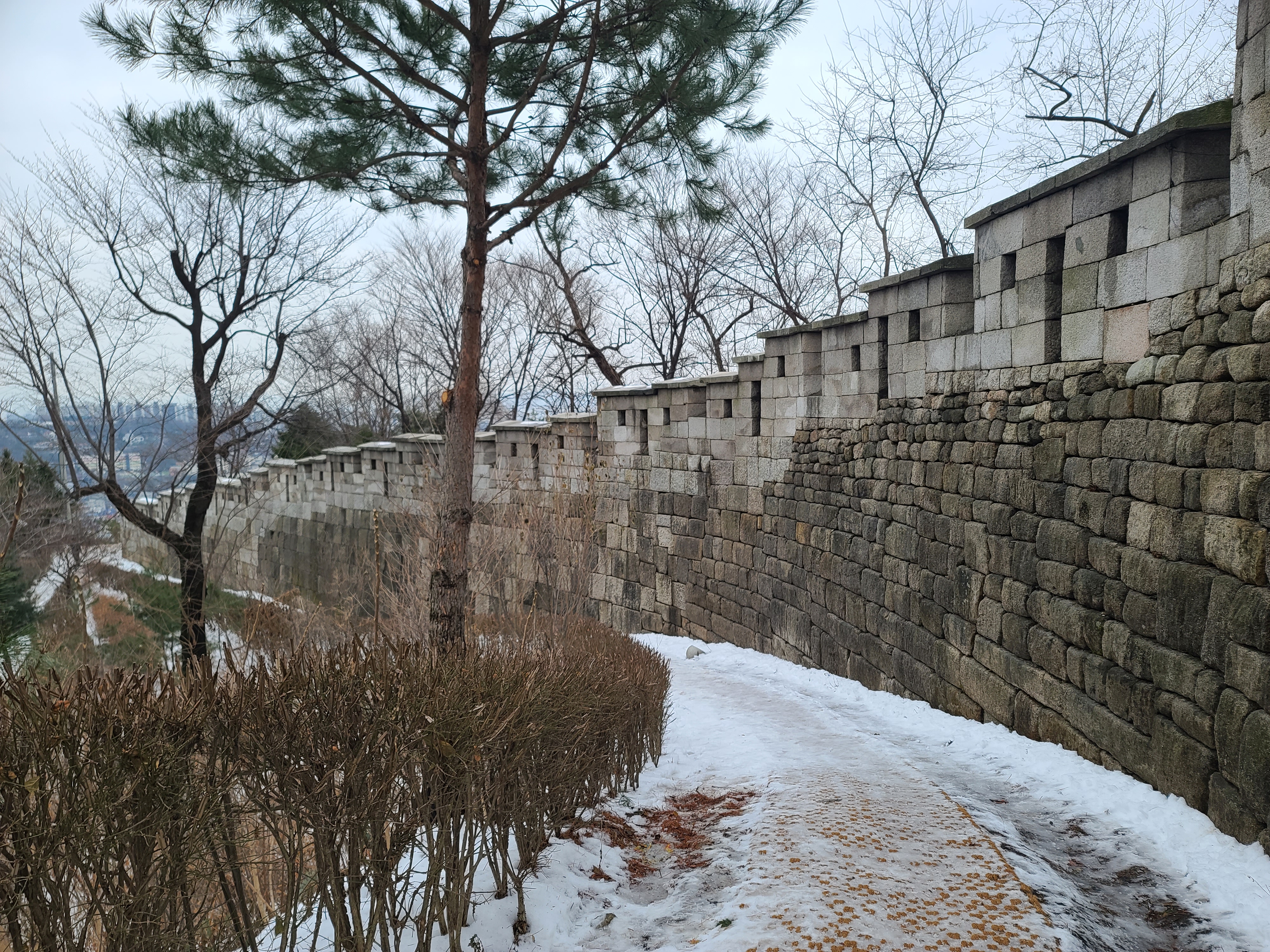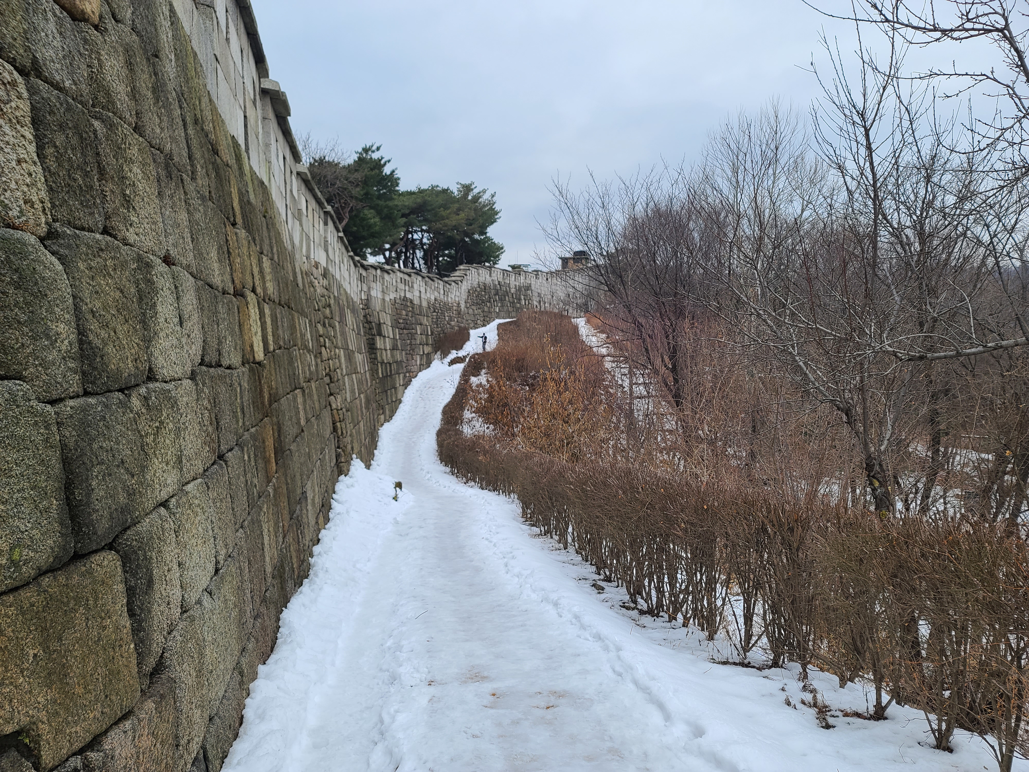 성벽을 따라 뽀득거리는 눈을 밟는 기분이 꽤 괜찮았다 ㅋㅋ