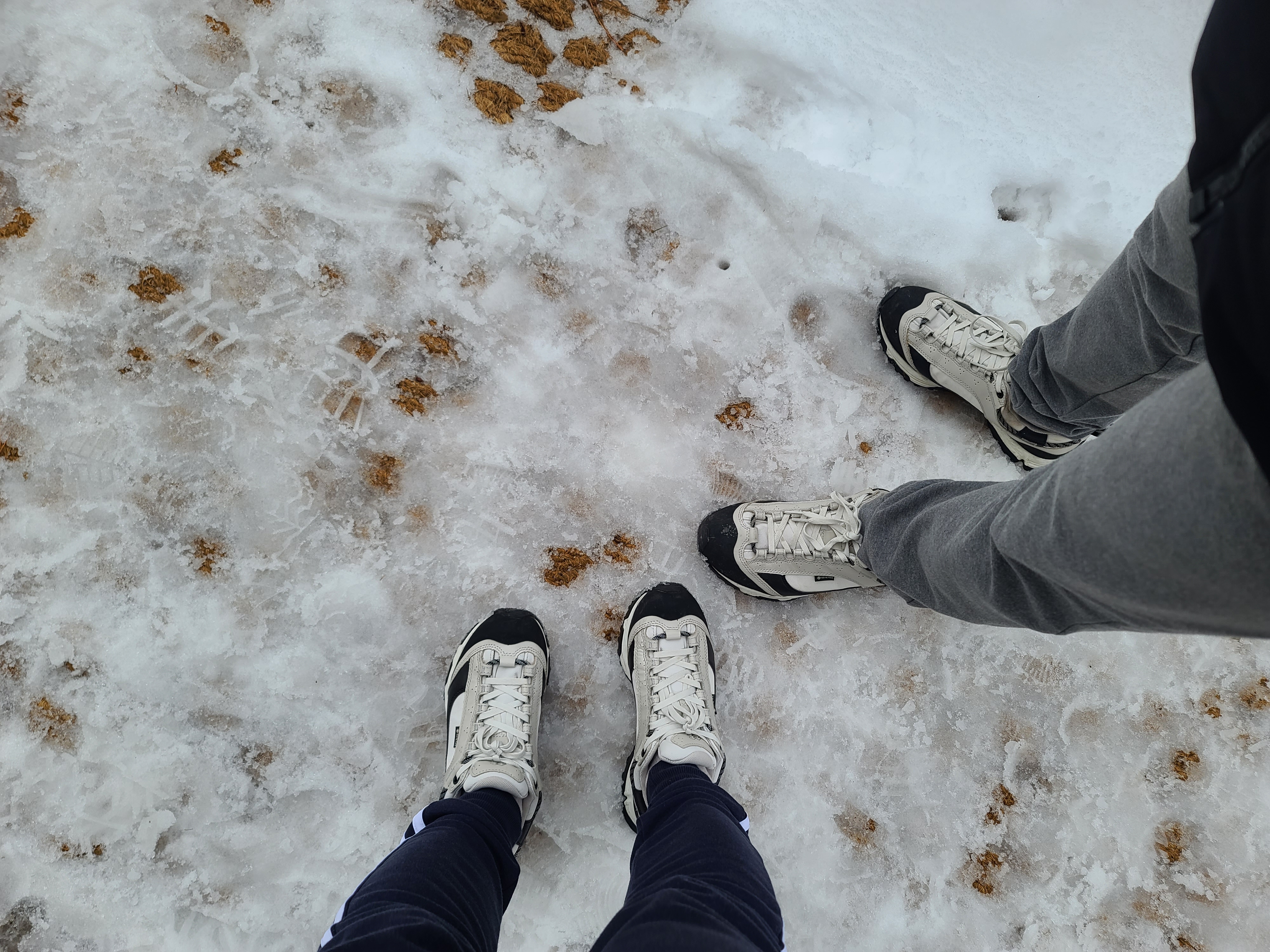 눈을 밟으며 걷다보니 어느순간부터 눈이 녹은 곳이 계속 나오고 아무리 하이킹화라도 점점 미끄러지는 횟수가 많아져서, 다시 내려가기로 했다.