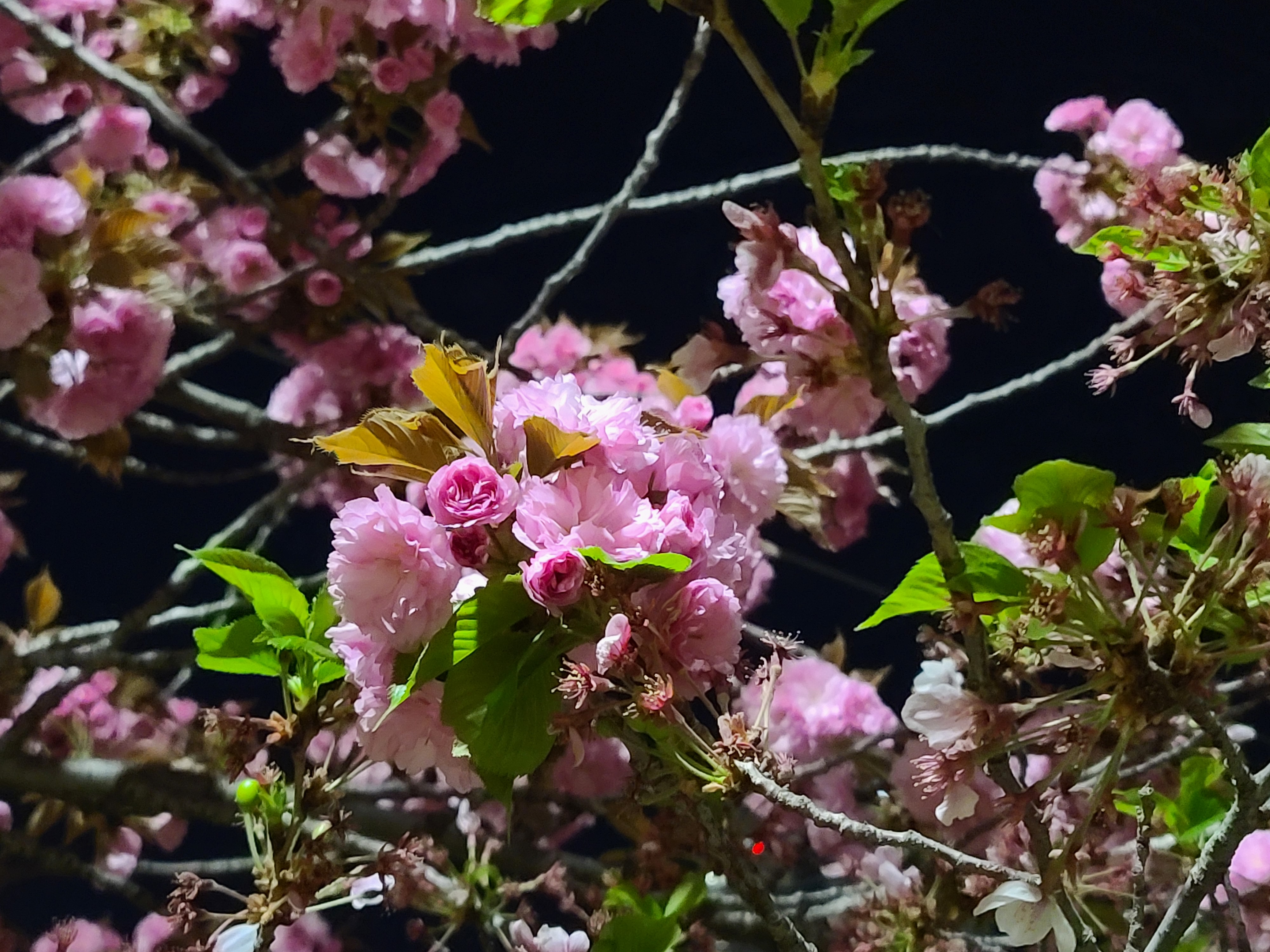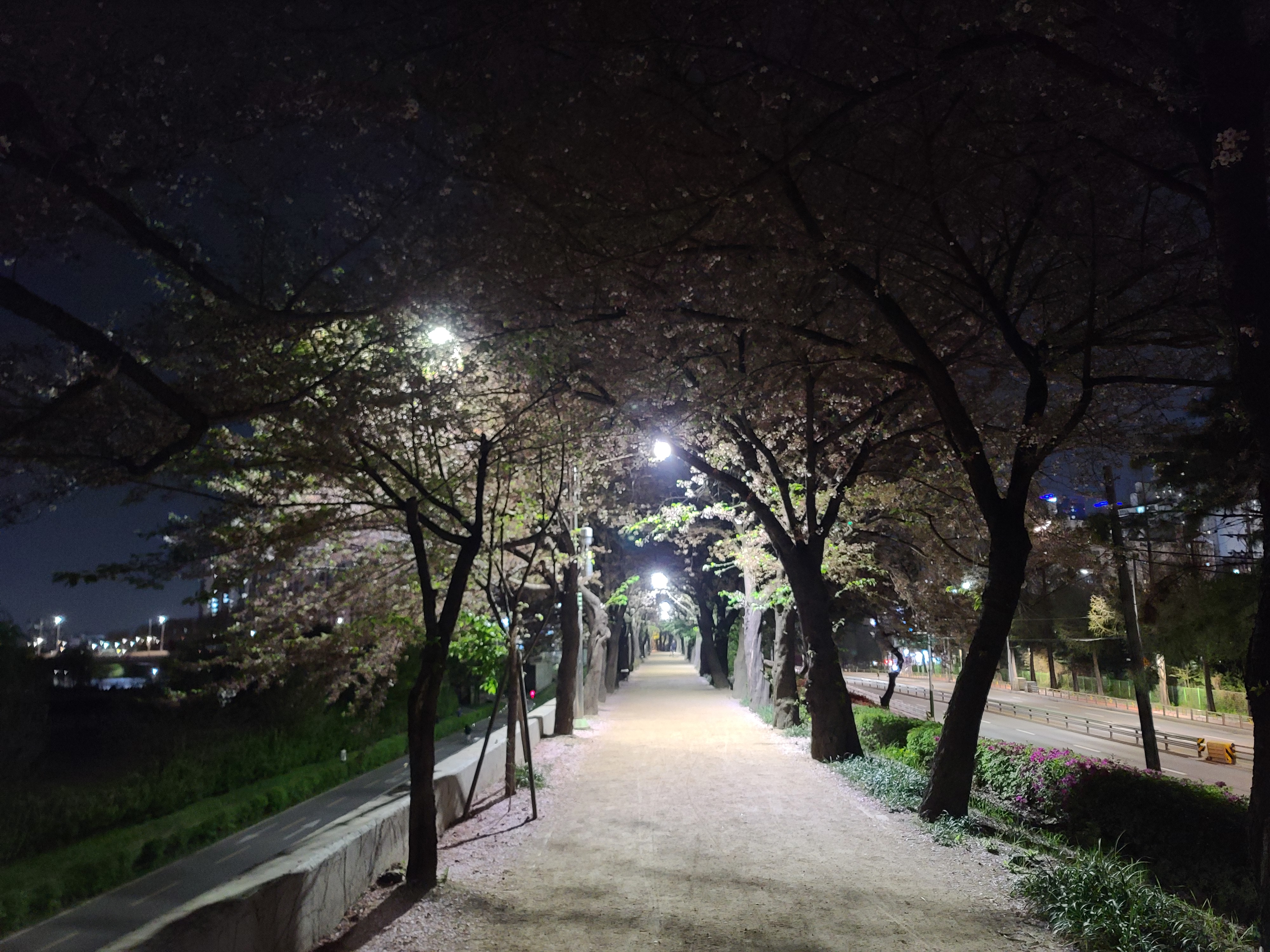 이때는 이미 벚꽂은 다 져서 나무들이 푸르러져 있었고, 대신 겹벚꽂이 밤에도 꽃색을 뽐내며 피어있었다.