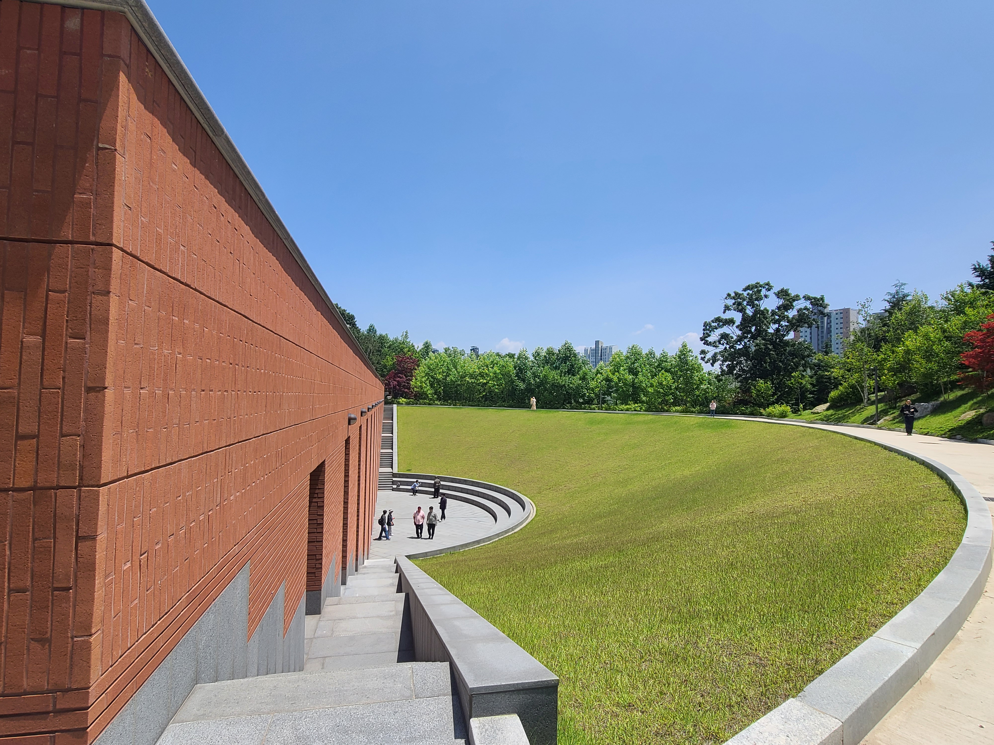 넓은 부지에 푸른 나무들 그리고 화단에 가득한 데이지 꽃밭.