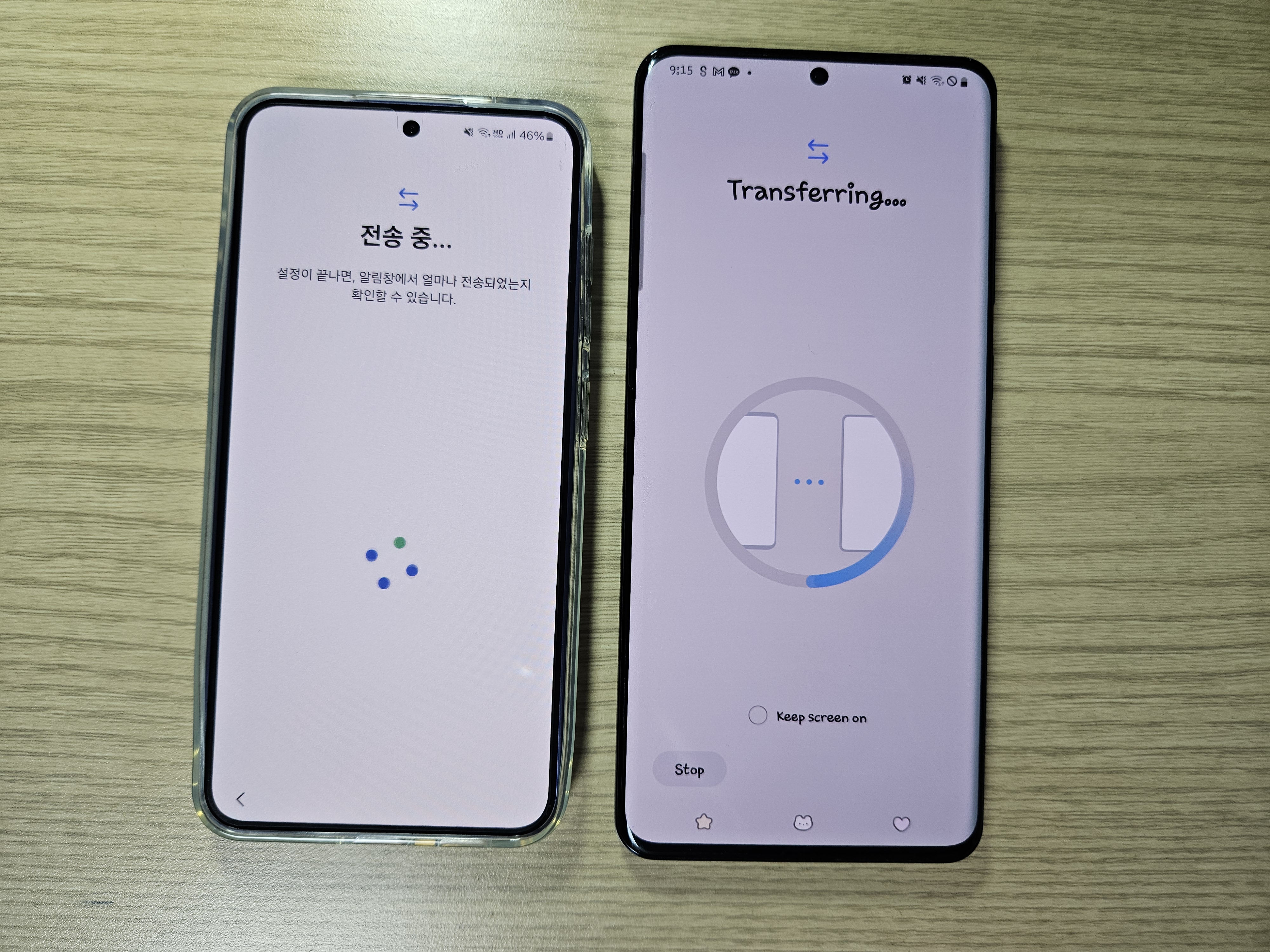 이렇게 폰을 붙여놓고 거의 3시간정도 있으니 다 옮겨졌다.