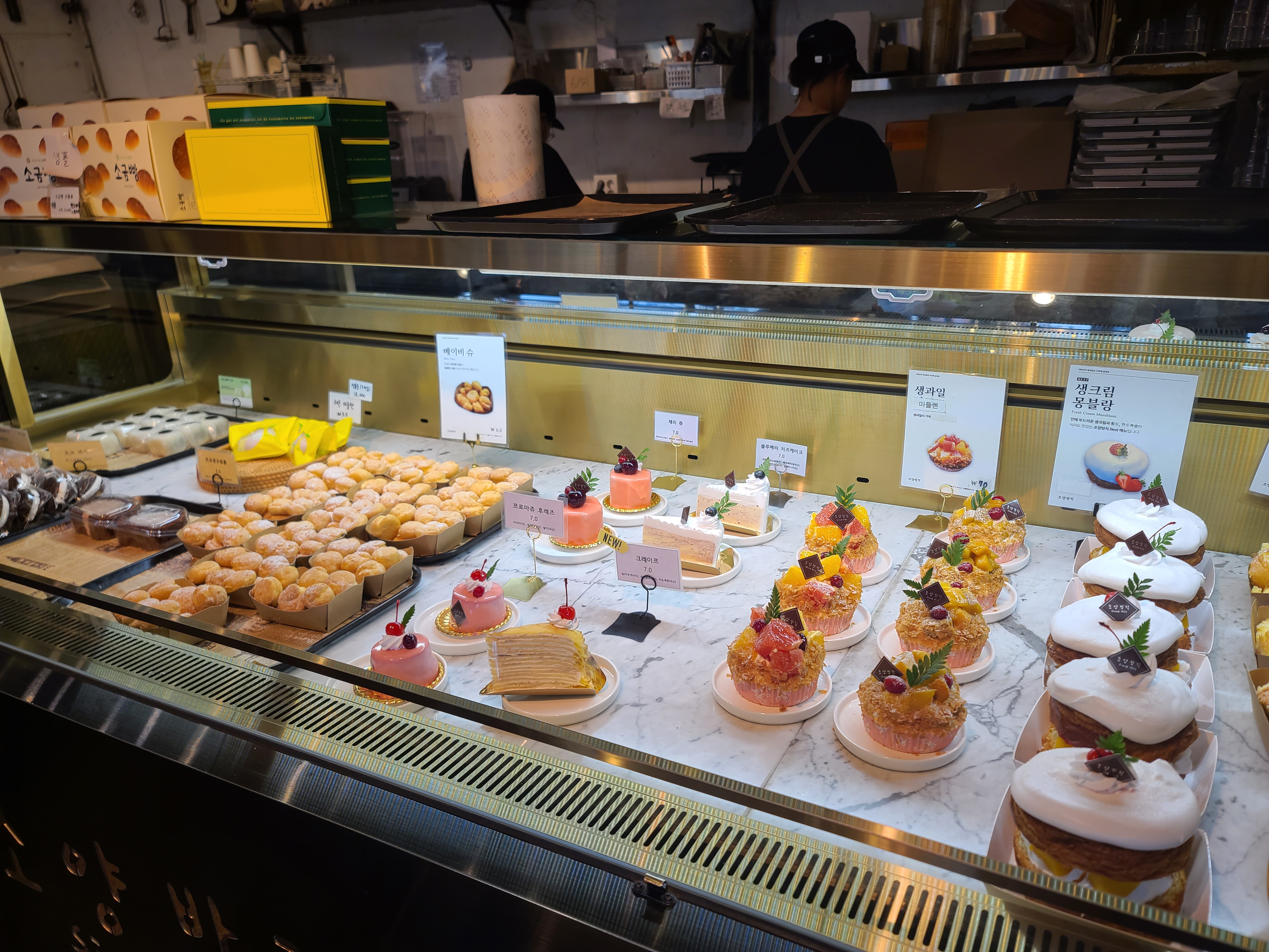 우리가 도착하니까 소금빵이 나오고 있어서 한개 주문 그리고 다른 빵들도 다 맛있어 보여서 심혈을 기울여 골랐다 ㅋㅋ
