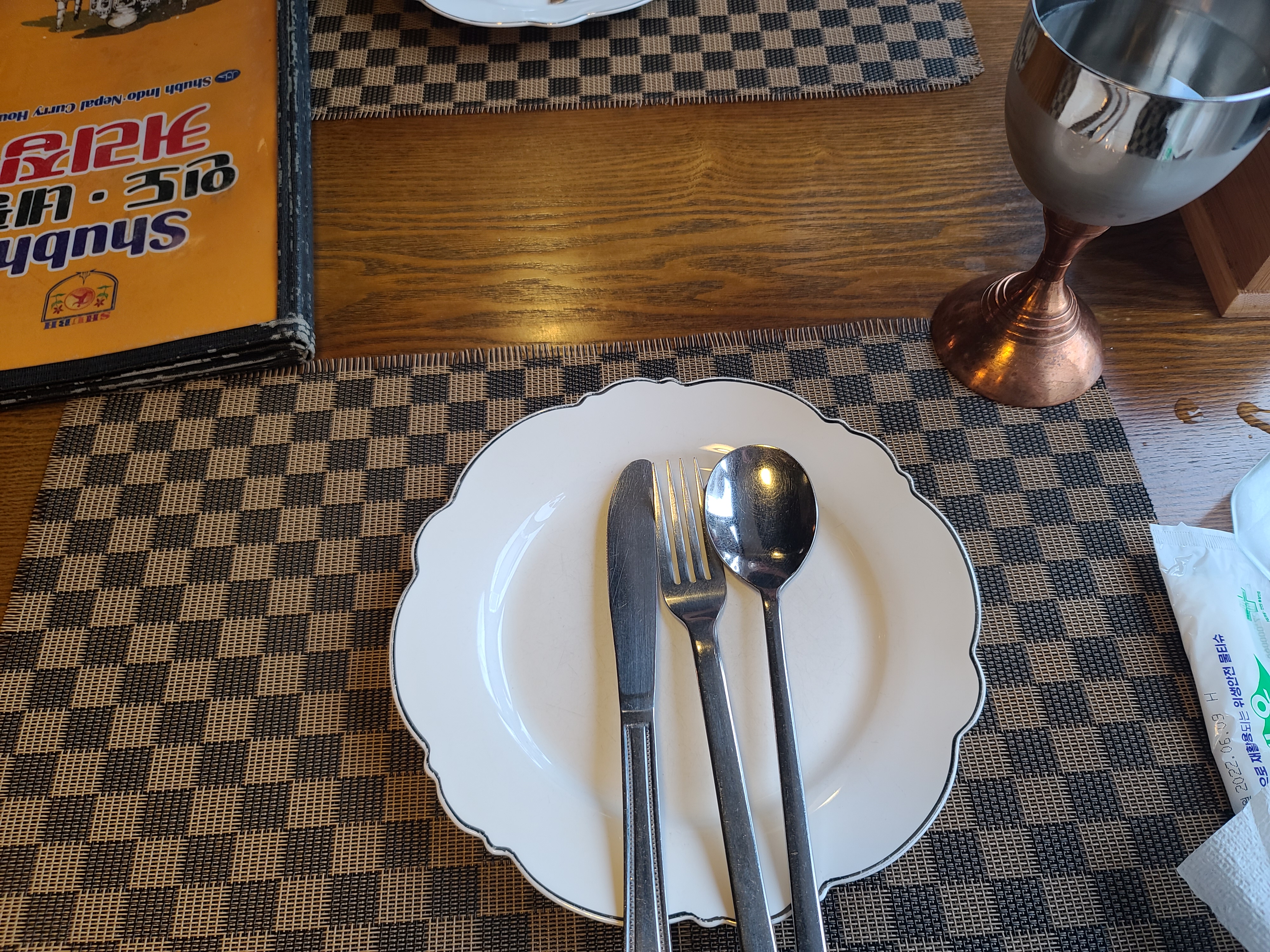 인도커리집에 가면 보통 앞접시를 놋그릇 같은걸로 주는데 수버식당은 유리로 줘서 더 깔끔해보인다.