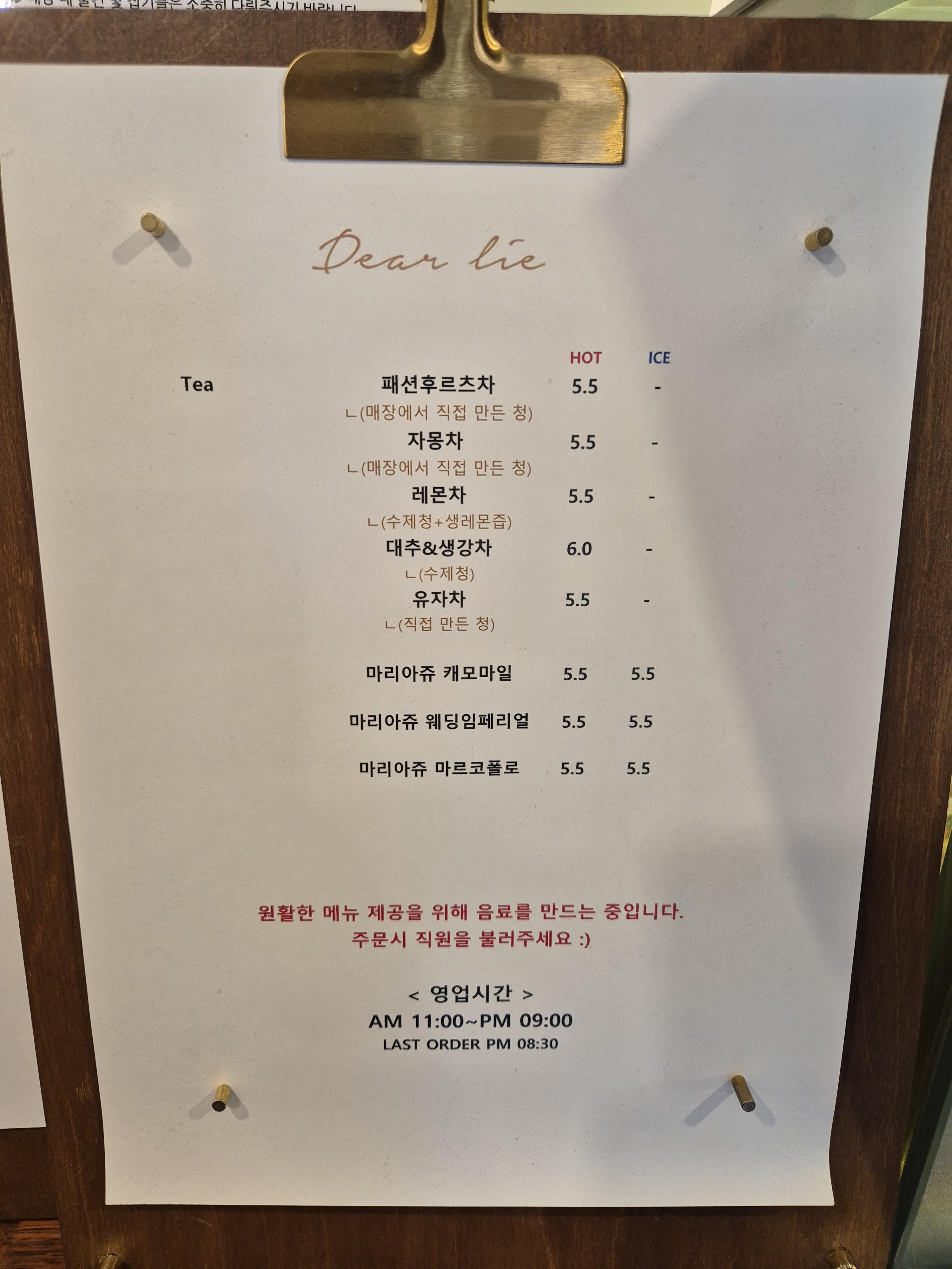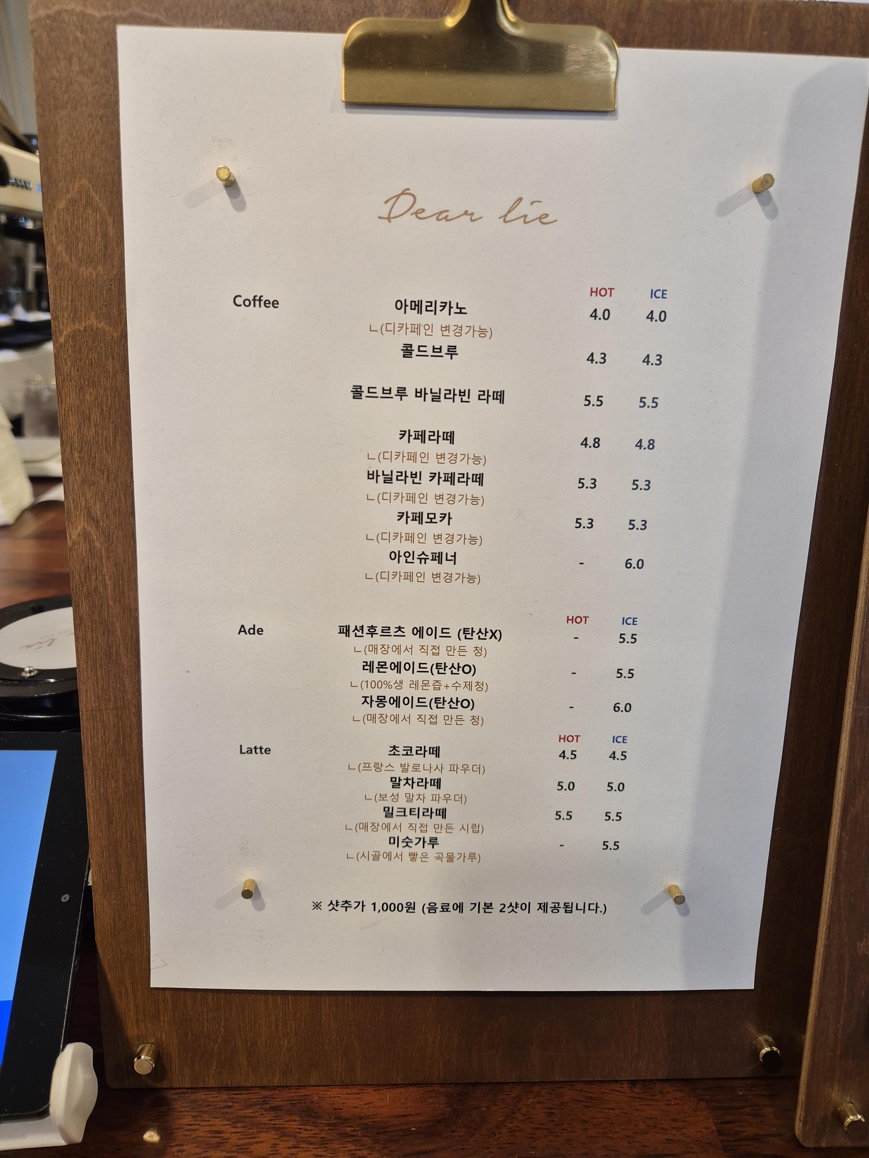 음료 종류가 다양하진 않지만, 카페 분위기와 맞게 단출하고 깔끔하다.