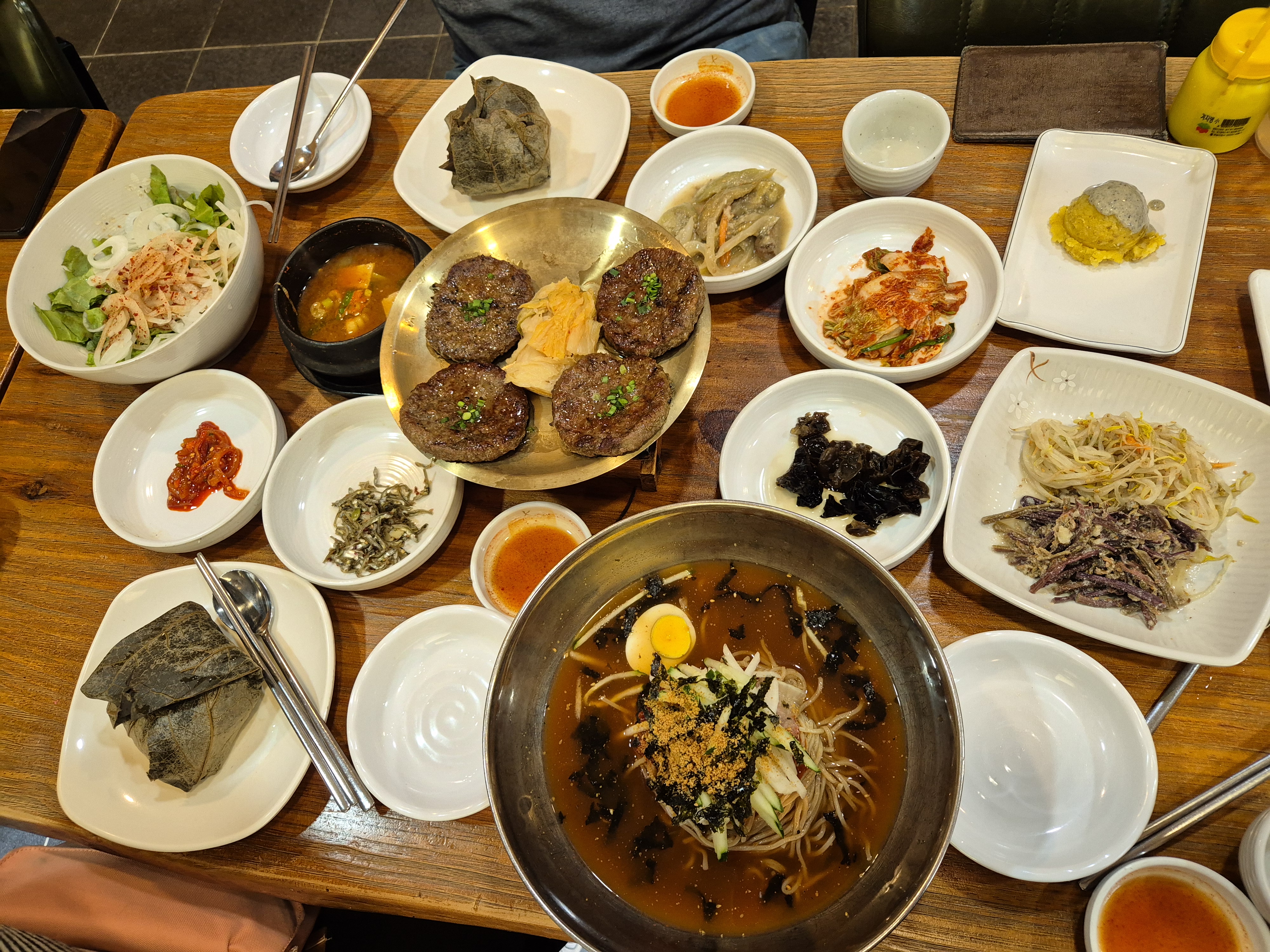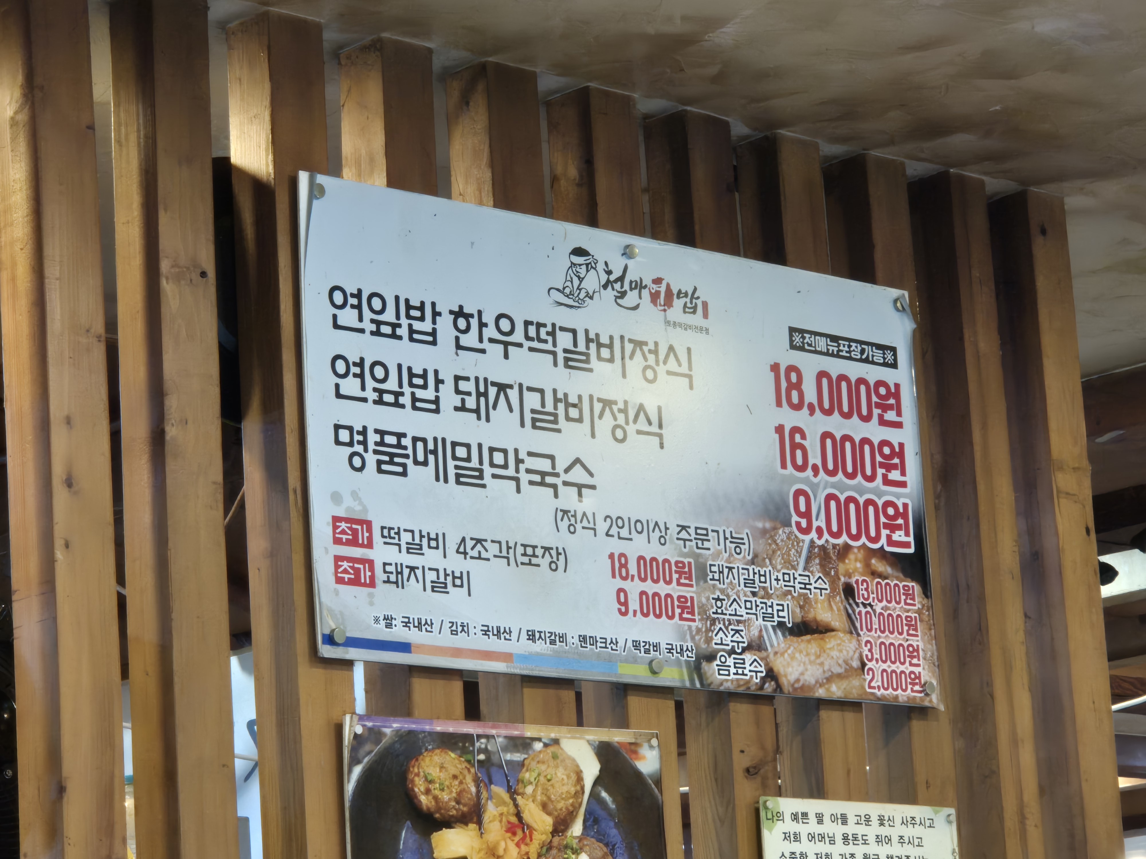 메뉴는 한우 떡갈비, 돼지갈비, 그리고 막국수.