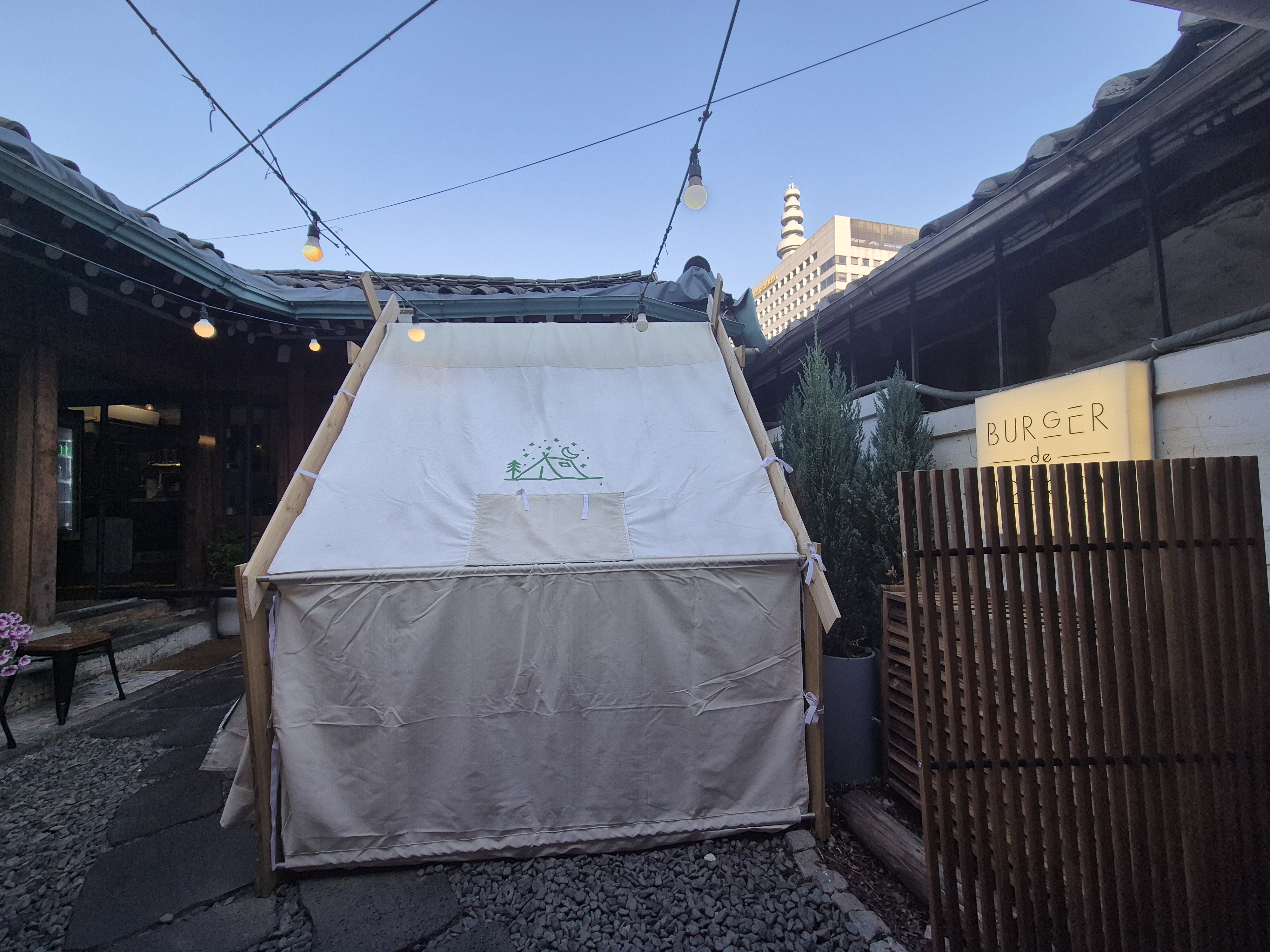 내부는 한옥 안에서 먹는거고, 외부는 이렇게 텐트랑 야외 테이블이 1개 더 있는것 같다.