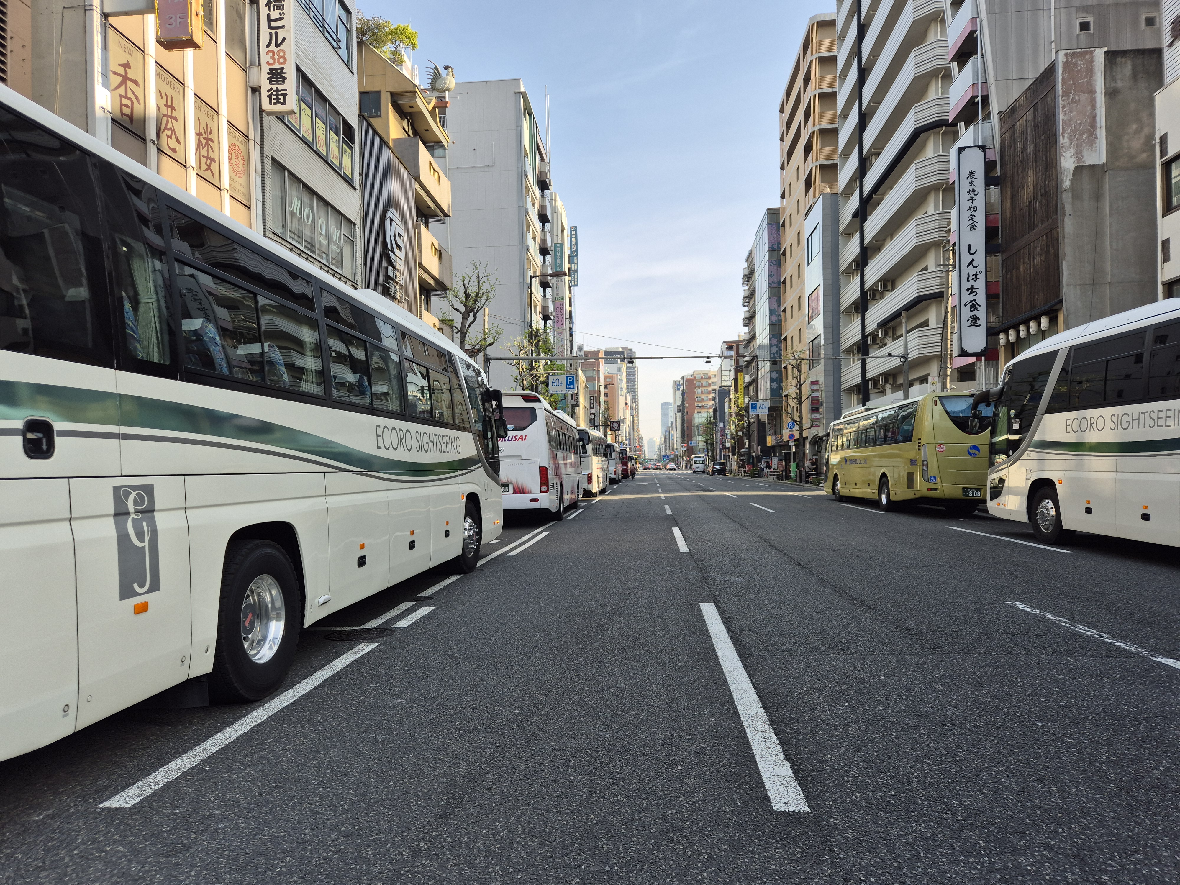 도톤보리 니폰바시 다리로 갔더니 관광버스가 줄지어서 10대이상 있었다.