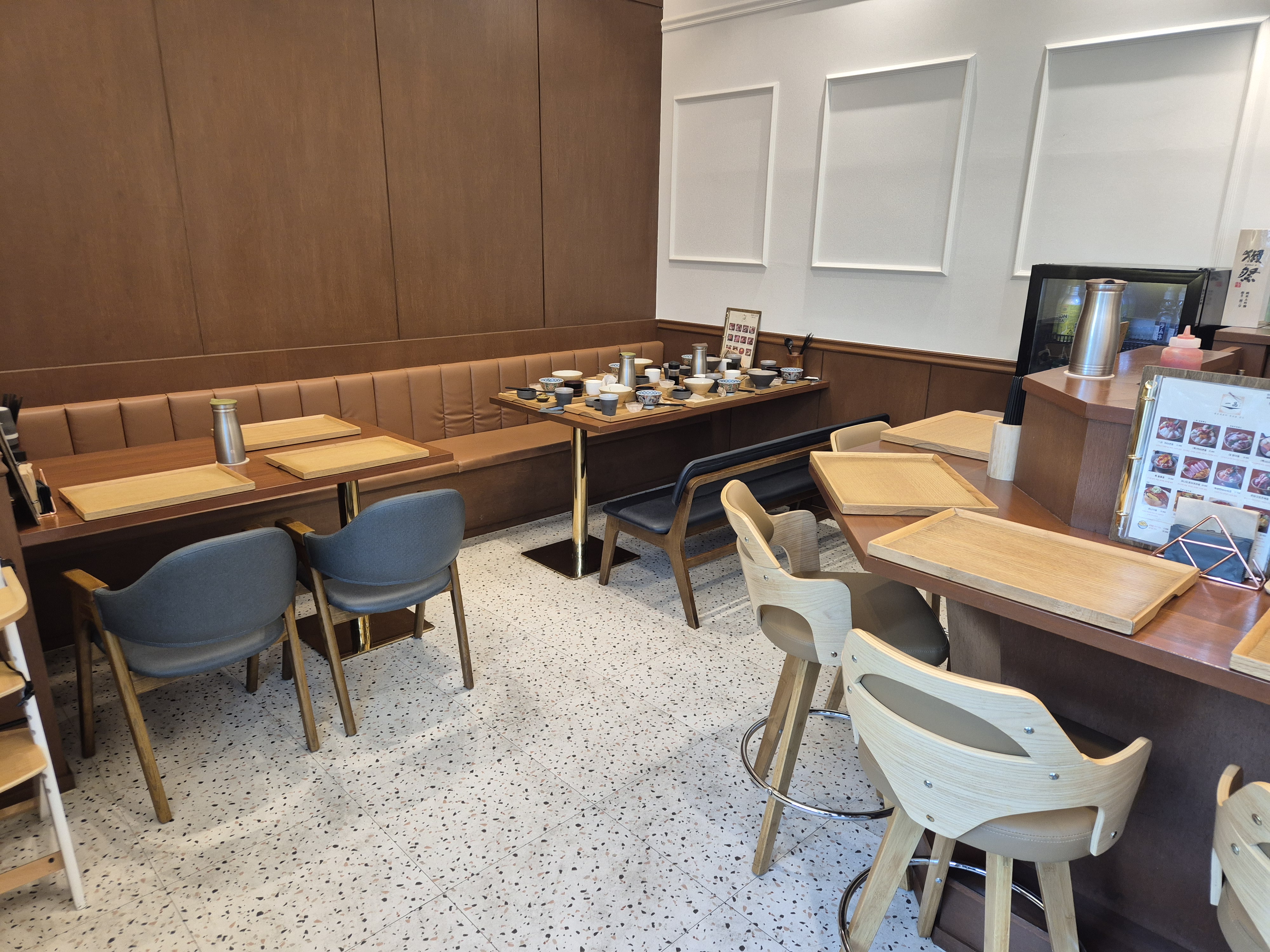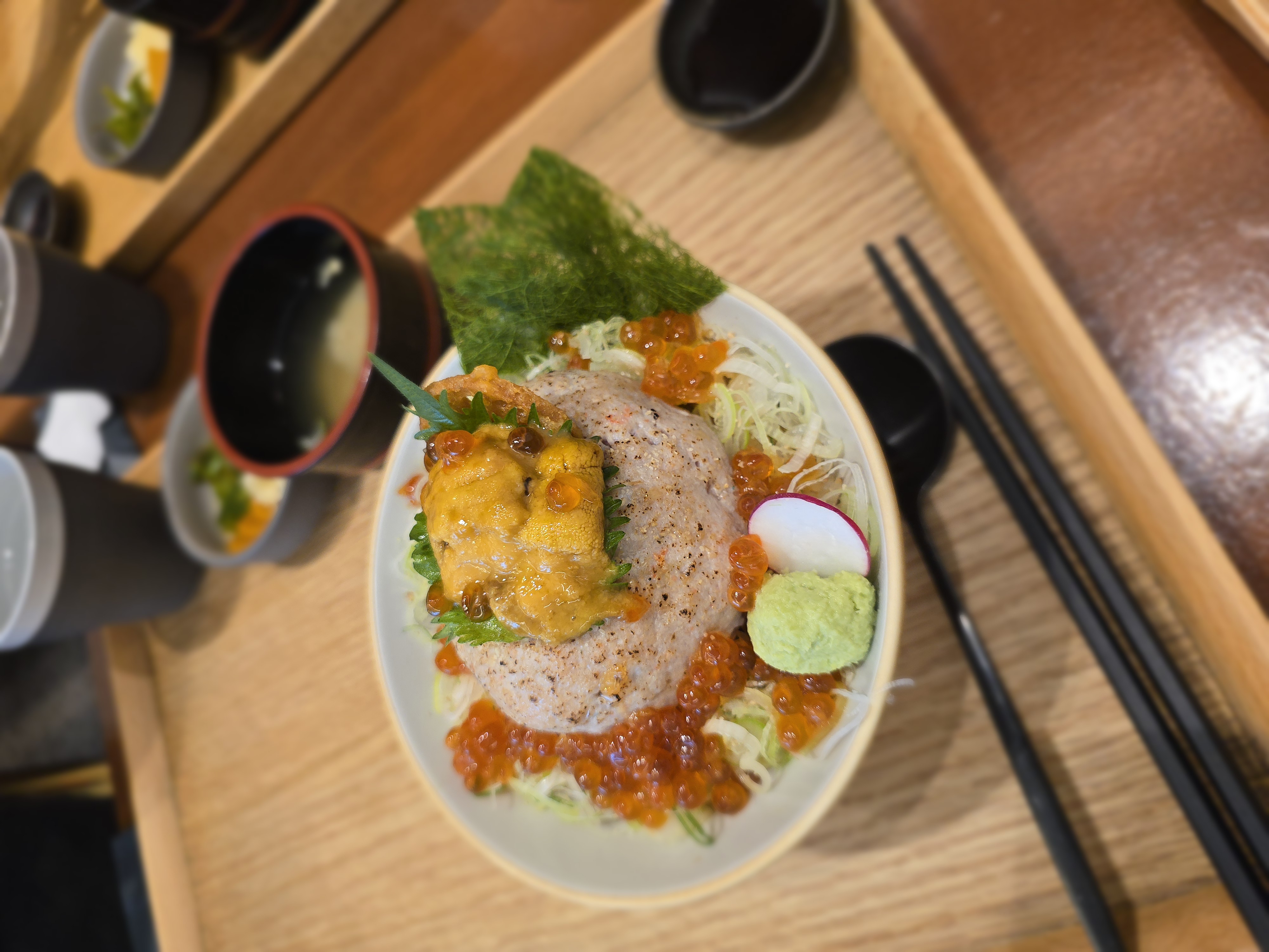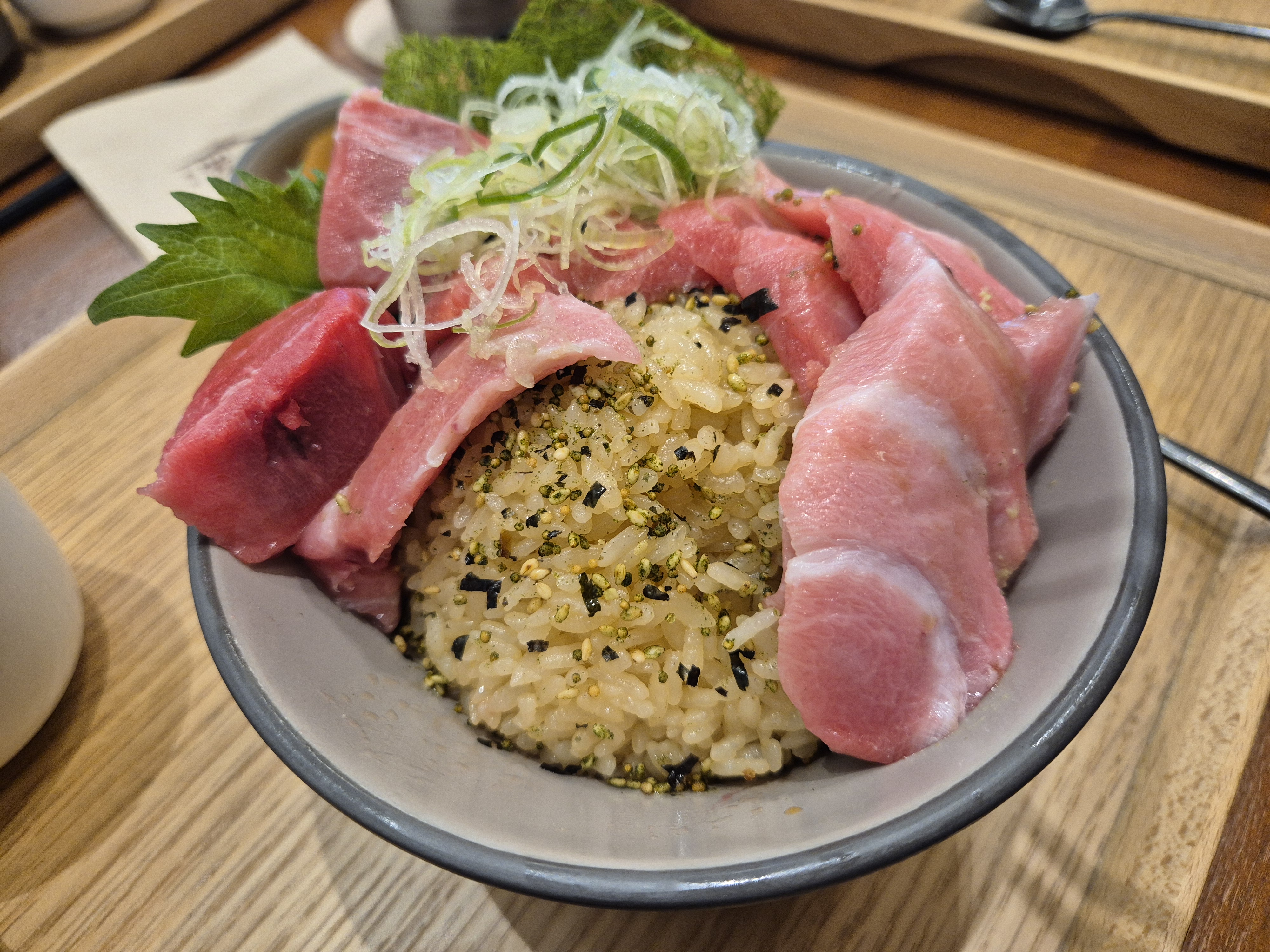카이센동(일본식 회덮밥)을 중심으로 방어동, 연어동, 혼마구로동(참치), 니꾸동(고기) 등등이 있다.