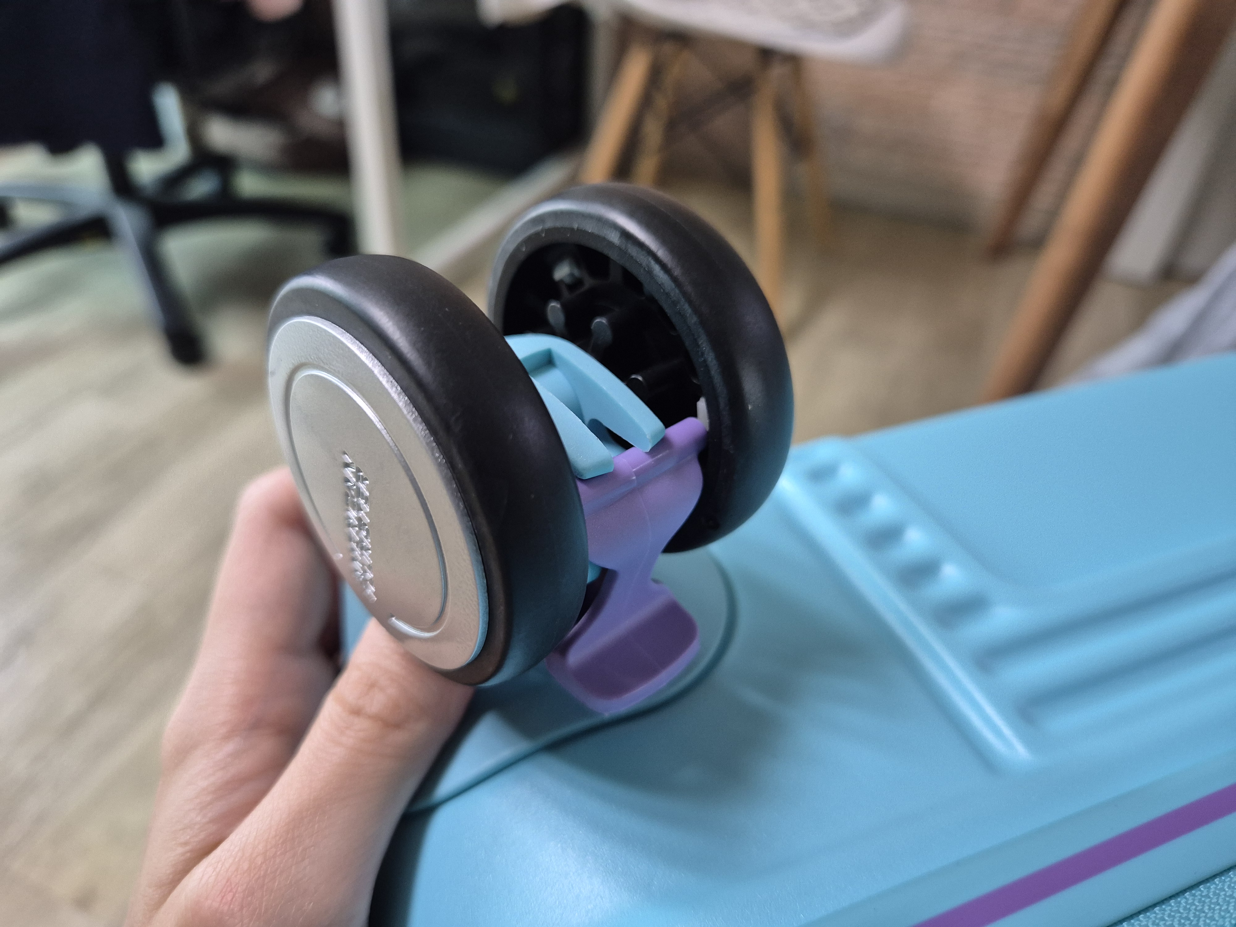 그리고 바퀴에 고정장치도 있어서, 지하철 같은데 앉아있을때 혼자 굴러가지 않게 잡아줄듯 ㅋㅋㅋ