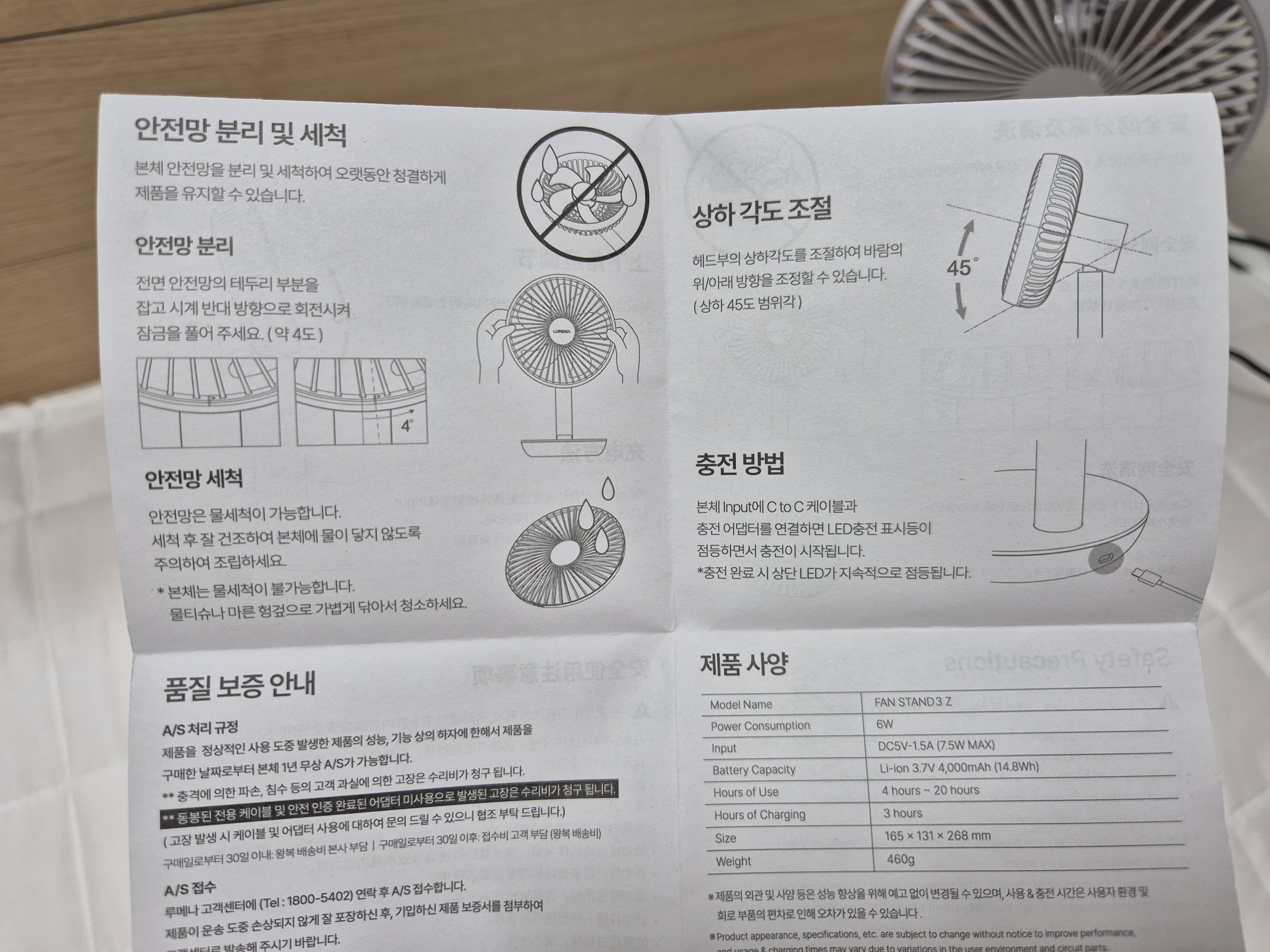 무선인데도, 케이블 연결과 상관없이 바람 세기가 동일해서 더 좋았음.