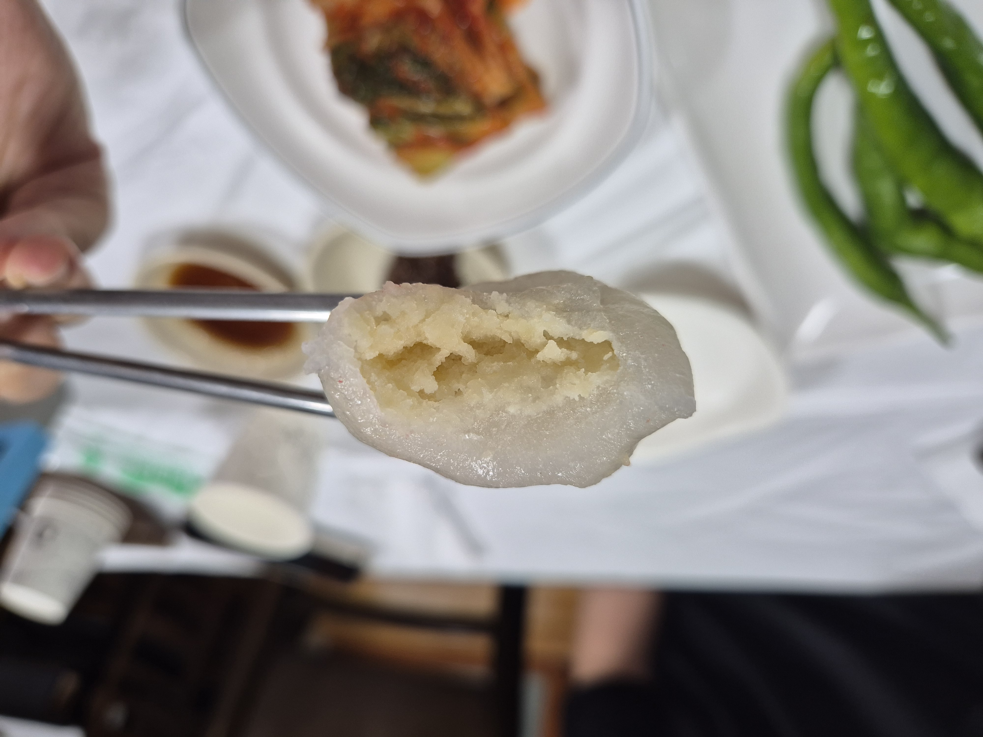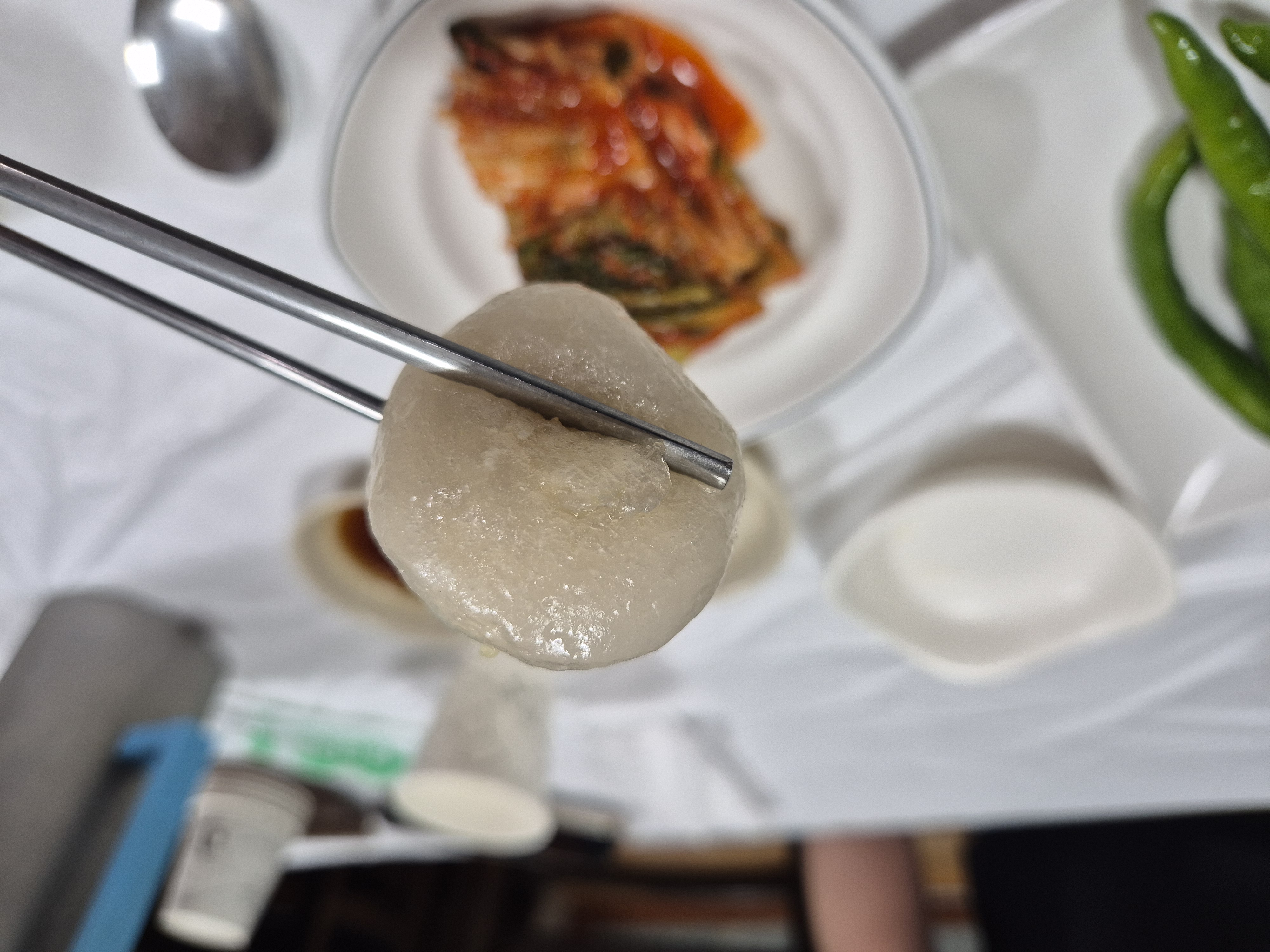 기본찬으로 감자떡을 주셨는데 방금 찐 따끈따끈한 떡이다.